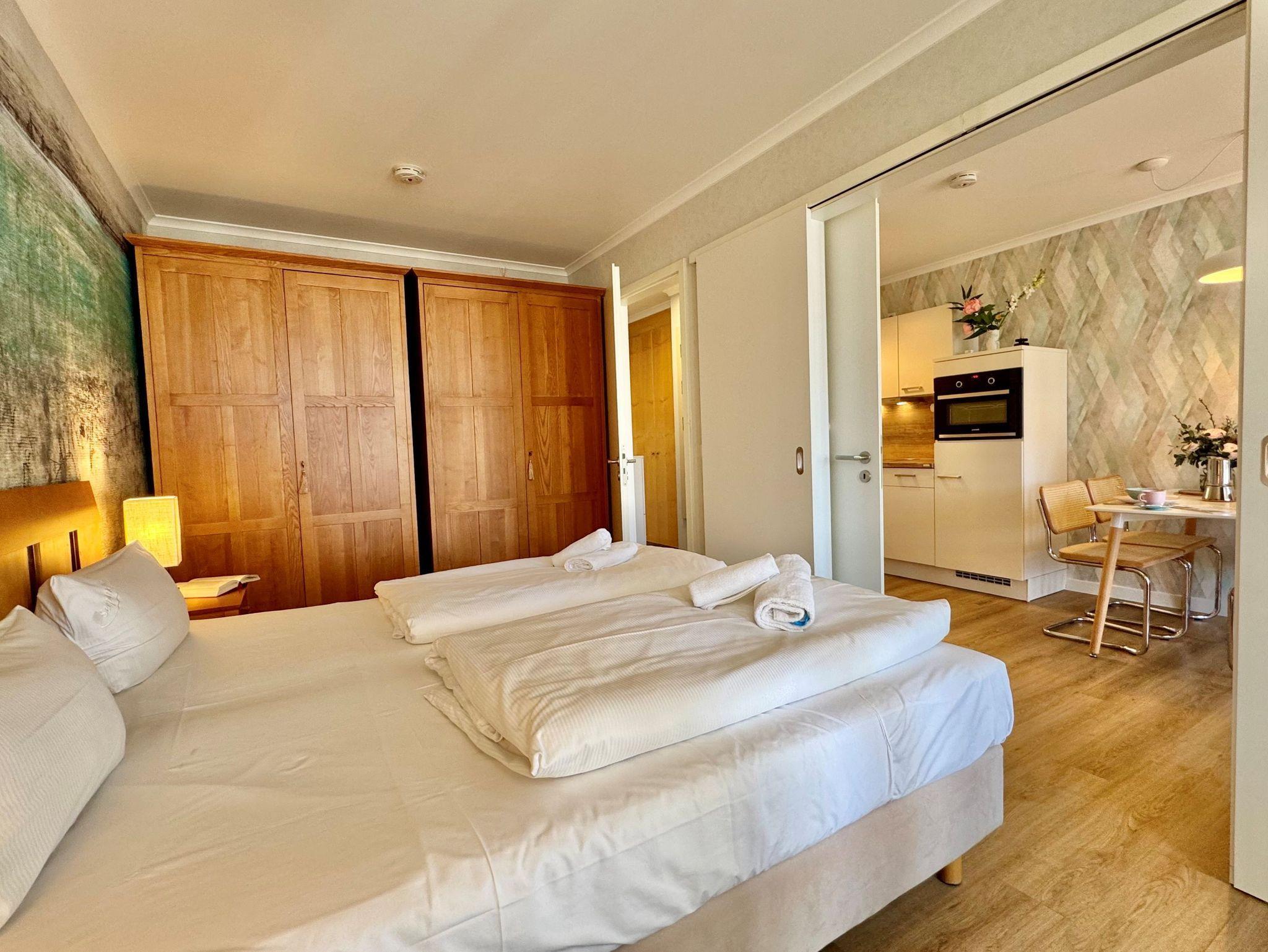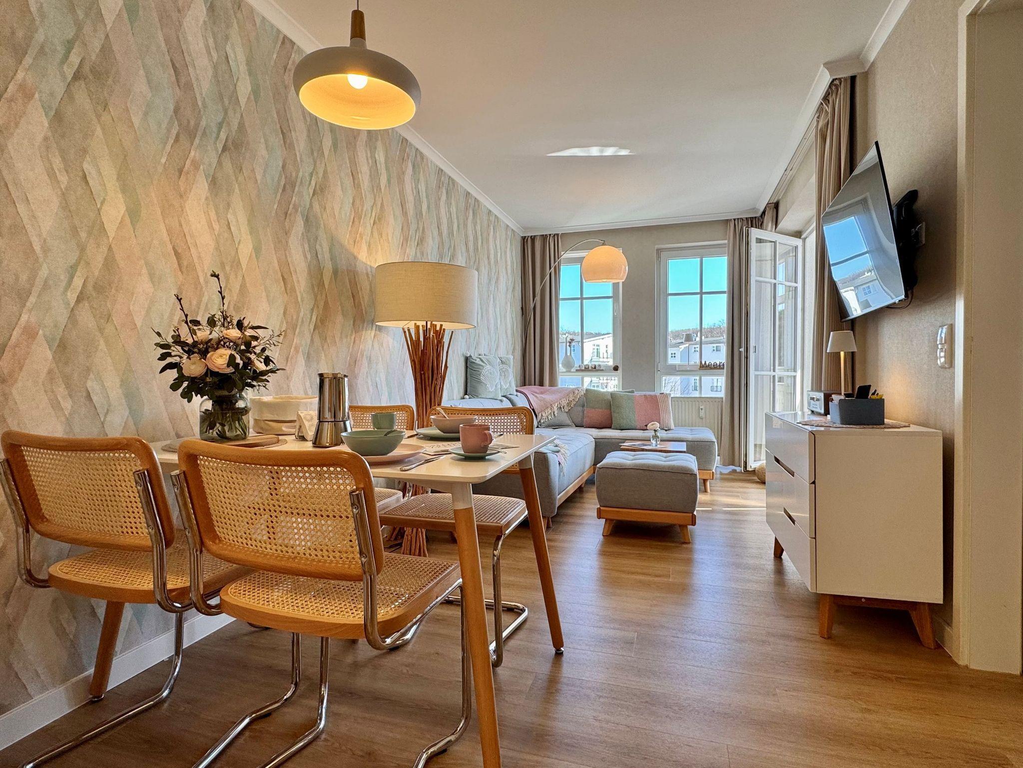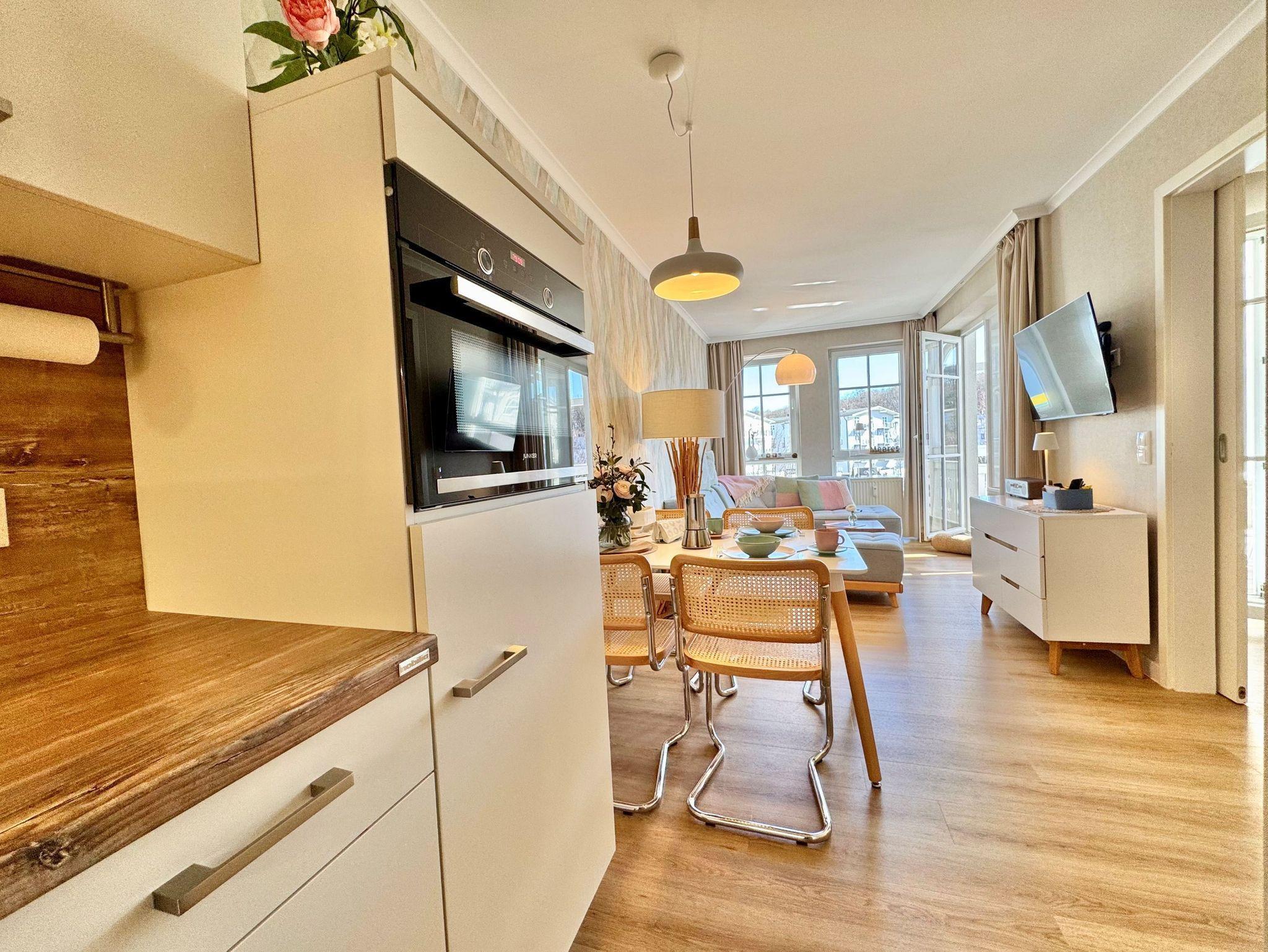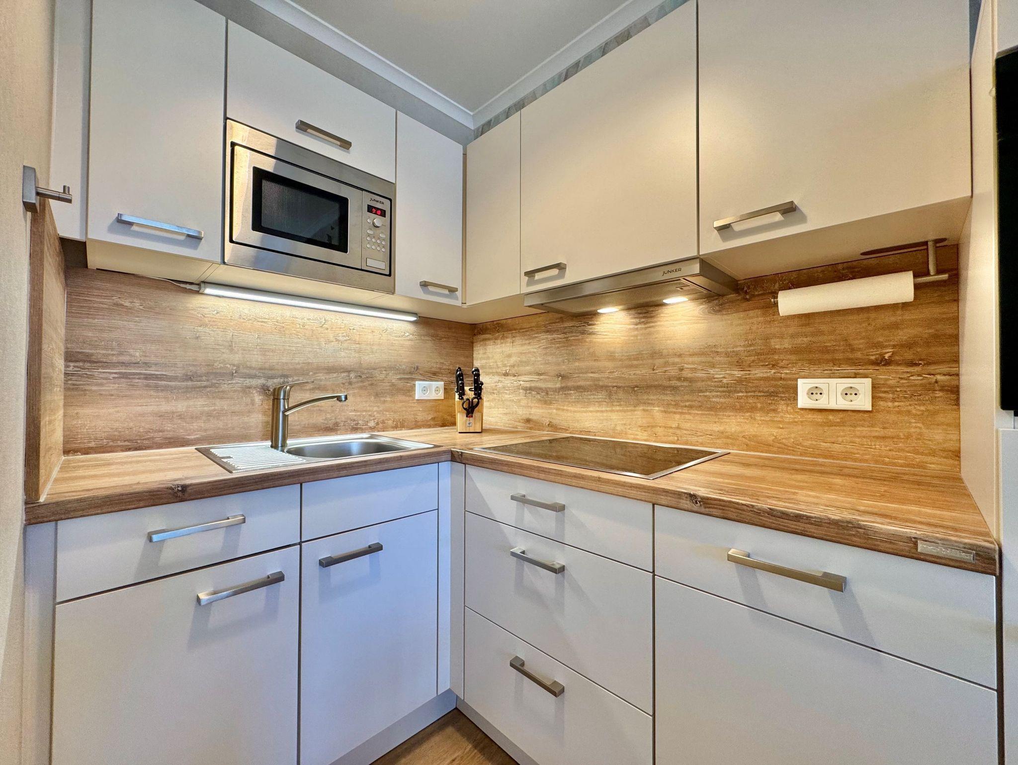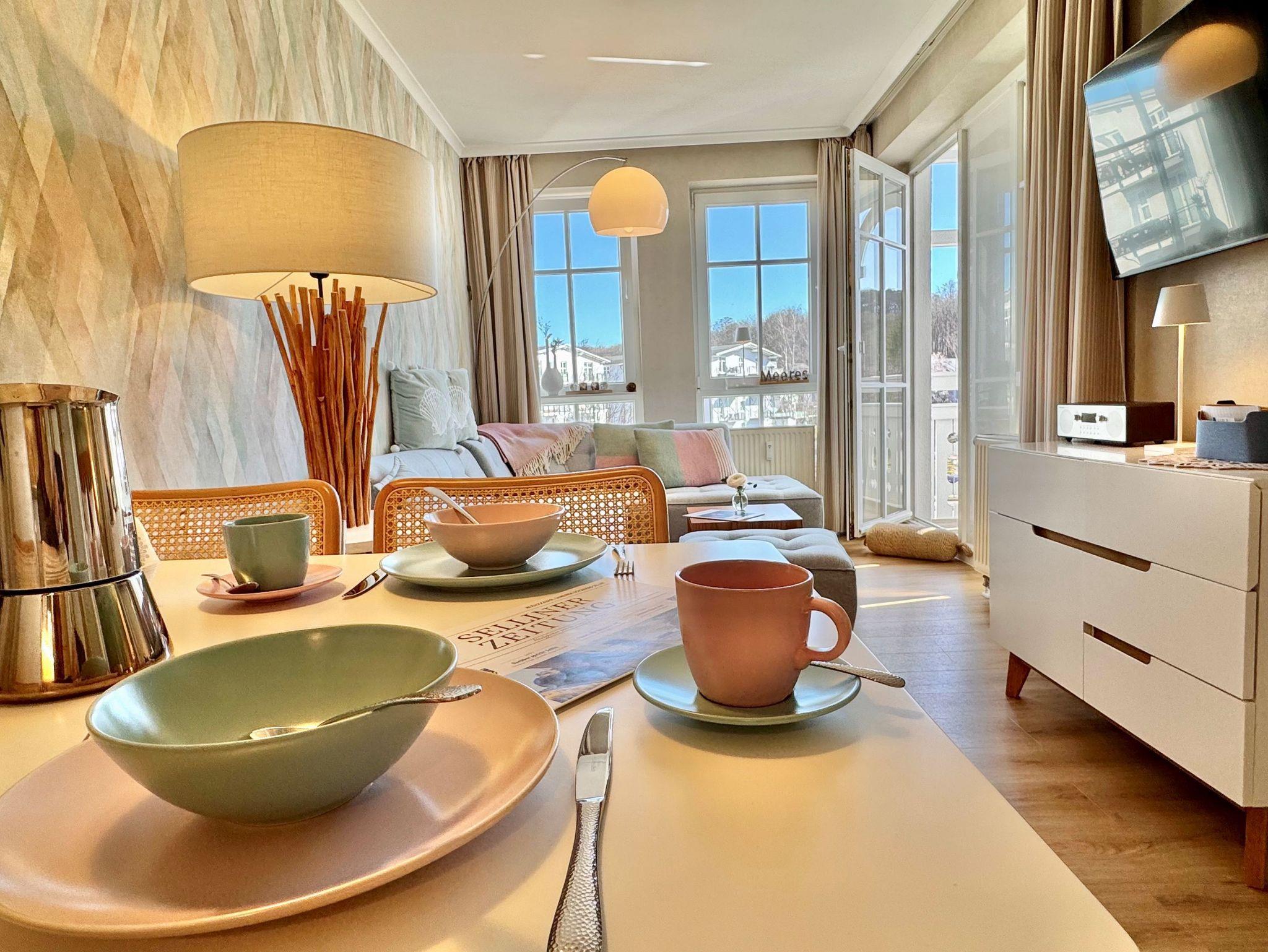 Nach einem erlebnisreichen Urlaubstag können Sie auf dem Balkon in Nordostlage Platz nehmen. Der Ausblick und die Sitzgruppe sorgen hier für ein wunderbares Urlaubsgefühl. Im Nichtraucher-Apartment sind keine Haustiere gestattet.