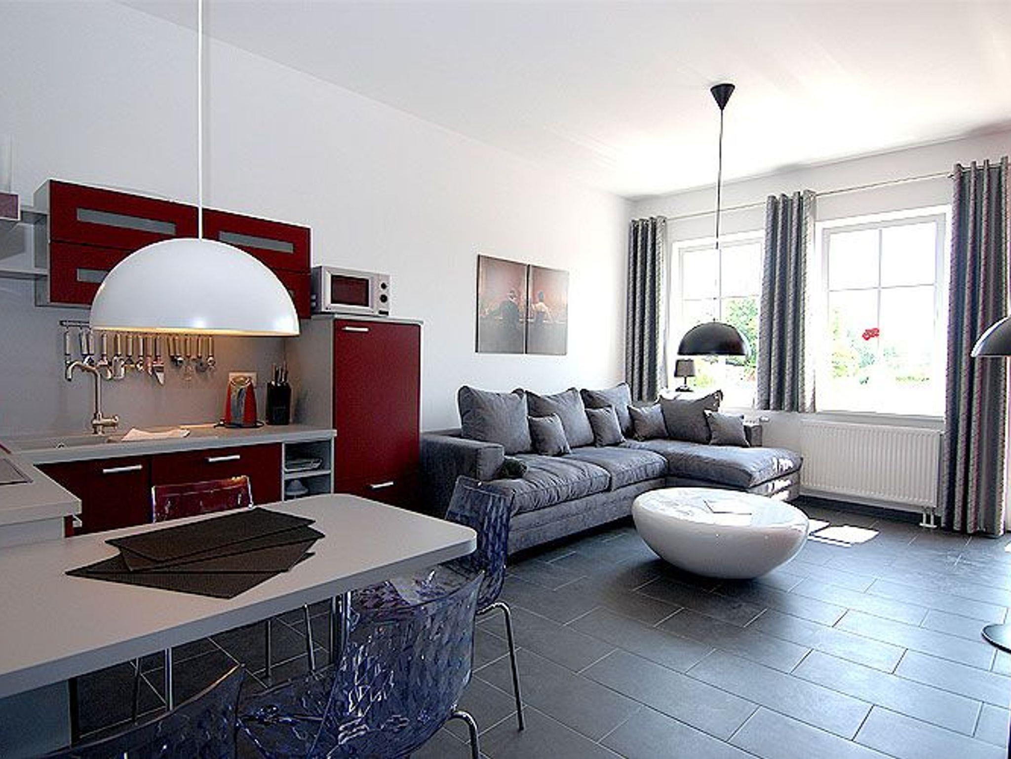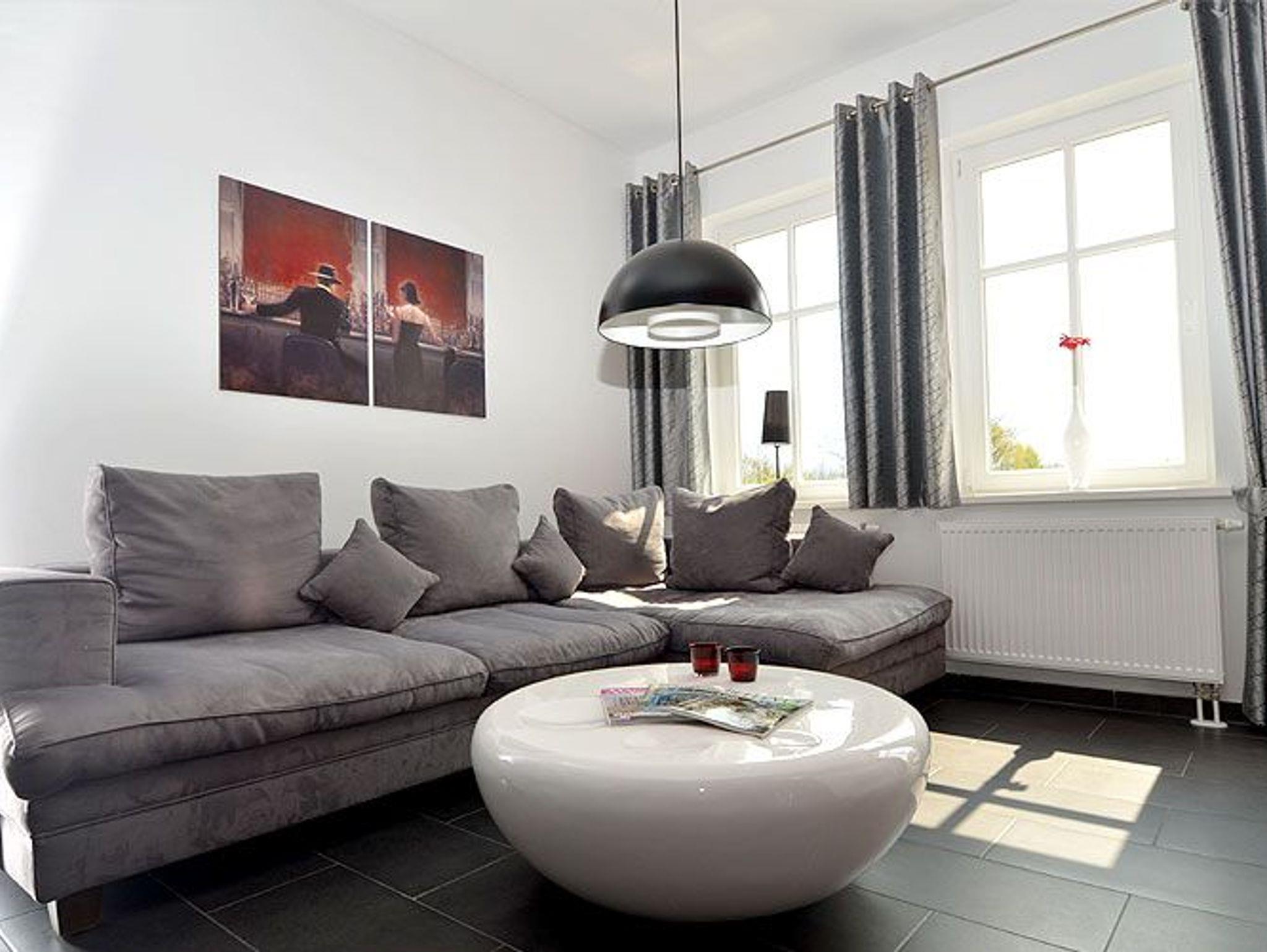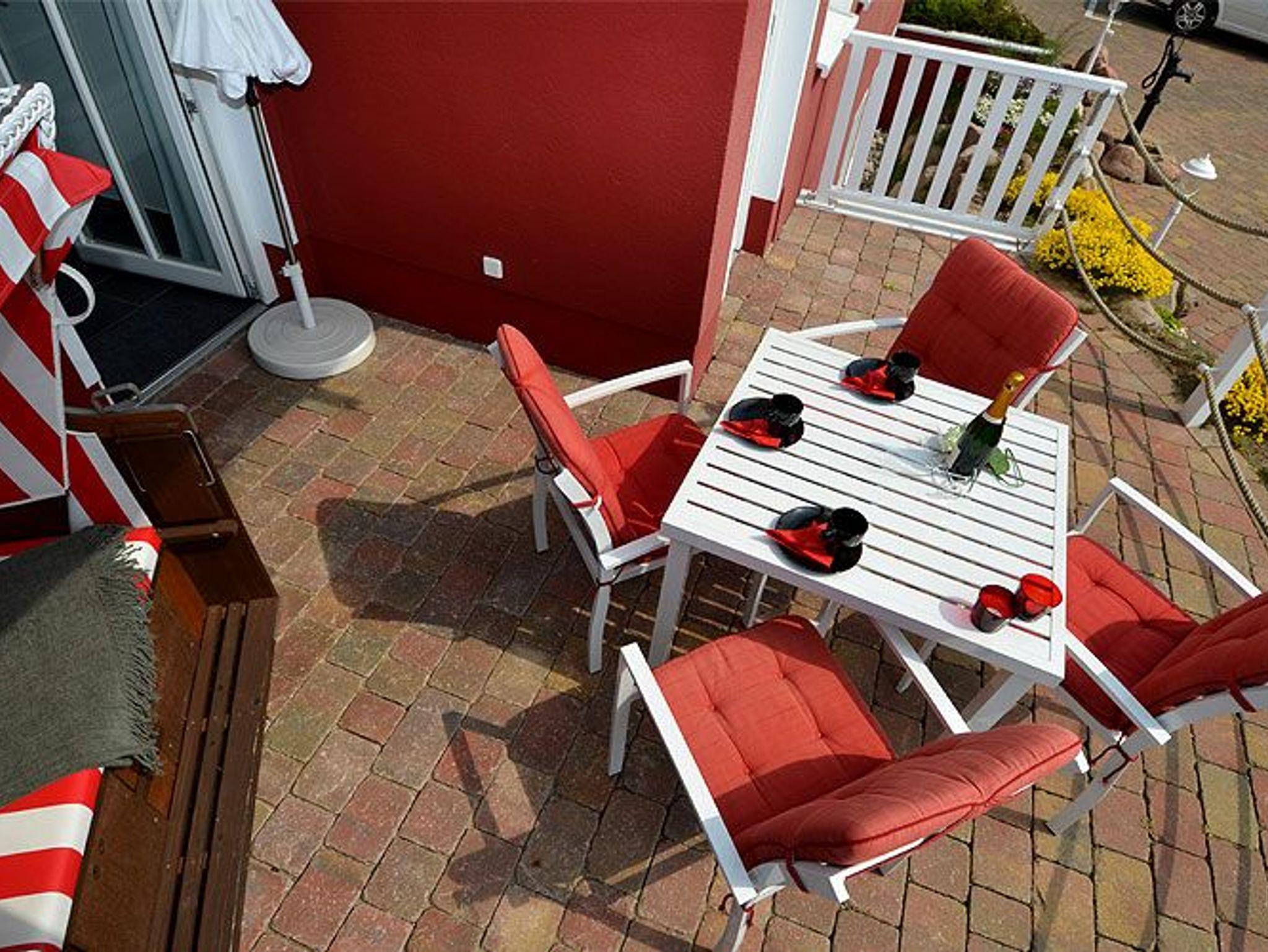 Wohnung 1: Dieses überaus komfortable und im modernen Stil eingerichtete 3-Raum-Appartement im Erdgeschoss ist mit seiner Wohnfläche von rund 70 m² ideal für 4 Personen geeignet. Eine möblierte Terrasse (ca. 12 m²) zur sonnigen Südseite mit Strandkorb gehört dazu.