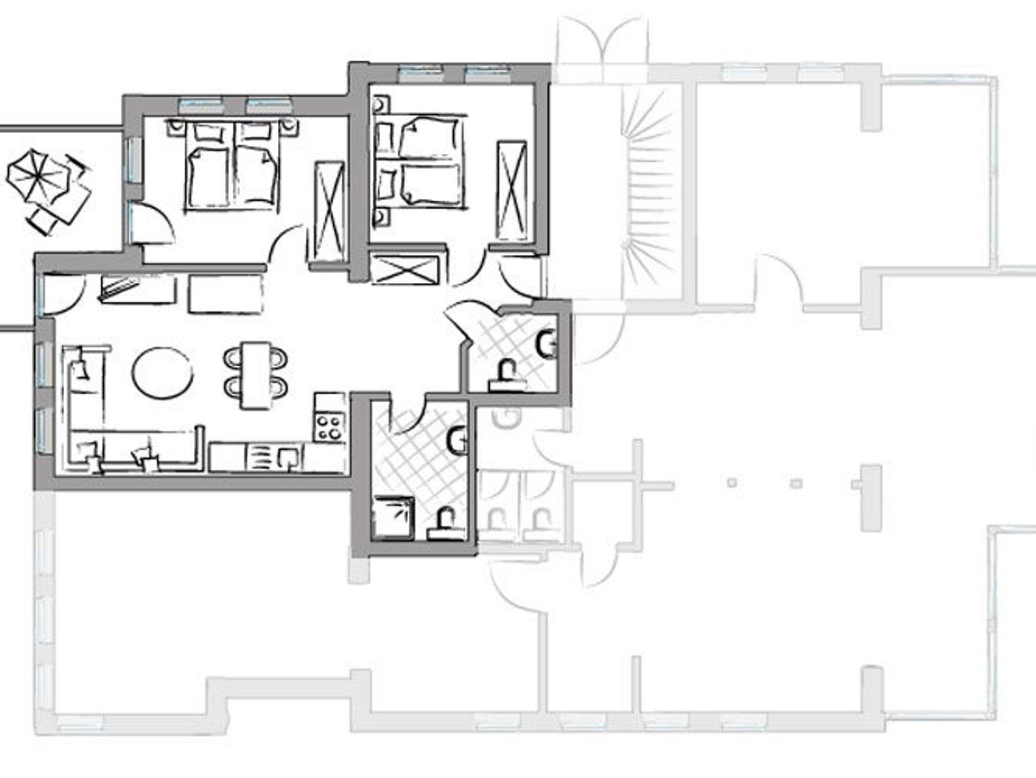 Im Souterrain des Hauses steht ein kleiner Wellnessbereich mit Sauna, Duschen, WC und Ruhezone kostenlos zur Verfügung. Bügelutensilien erhalten Sie kostenlos auf Anfrage. Gegen Gebühr finden Sie im Souterrain eine Waschmaschine, einen Trockner und ein Solarium zu Ihrer Nutzung vor.