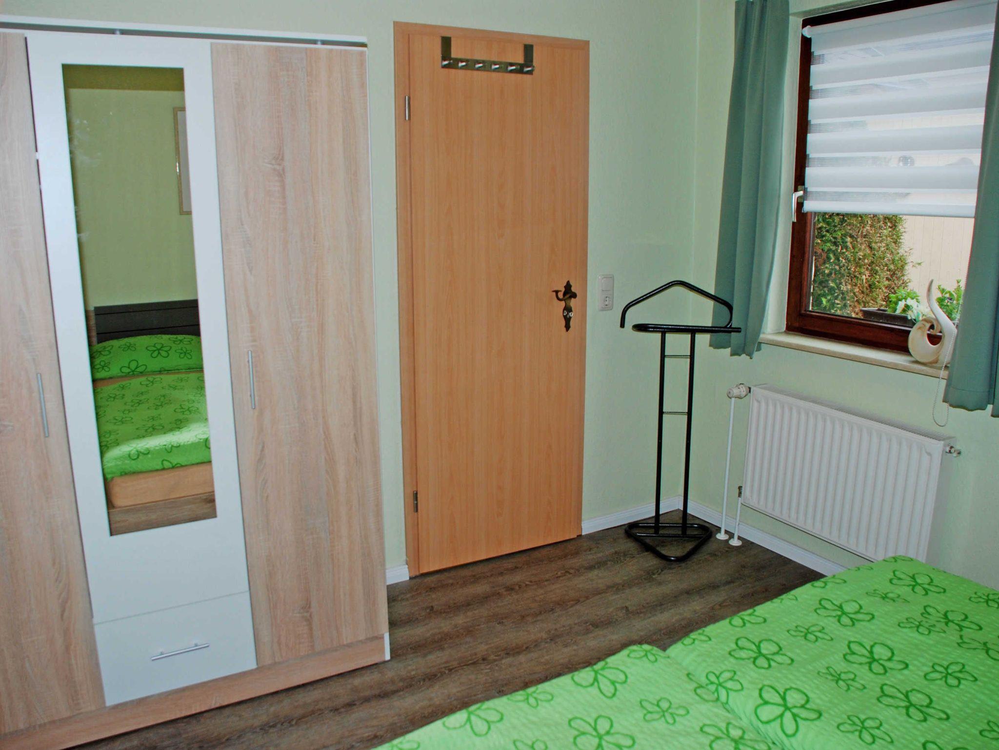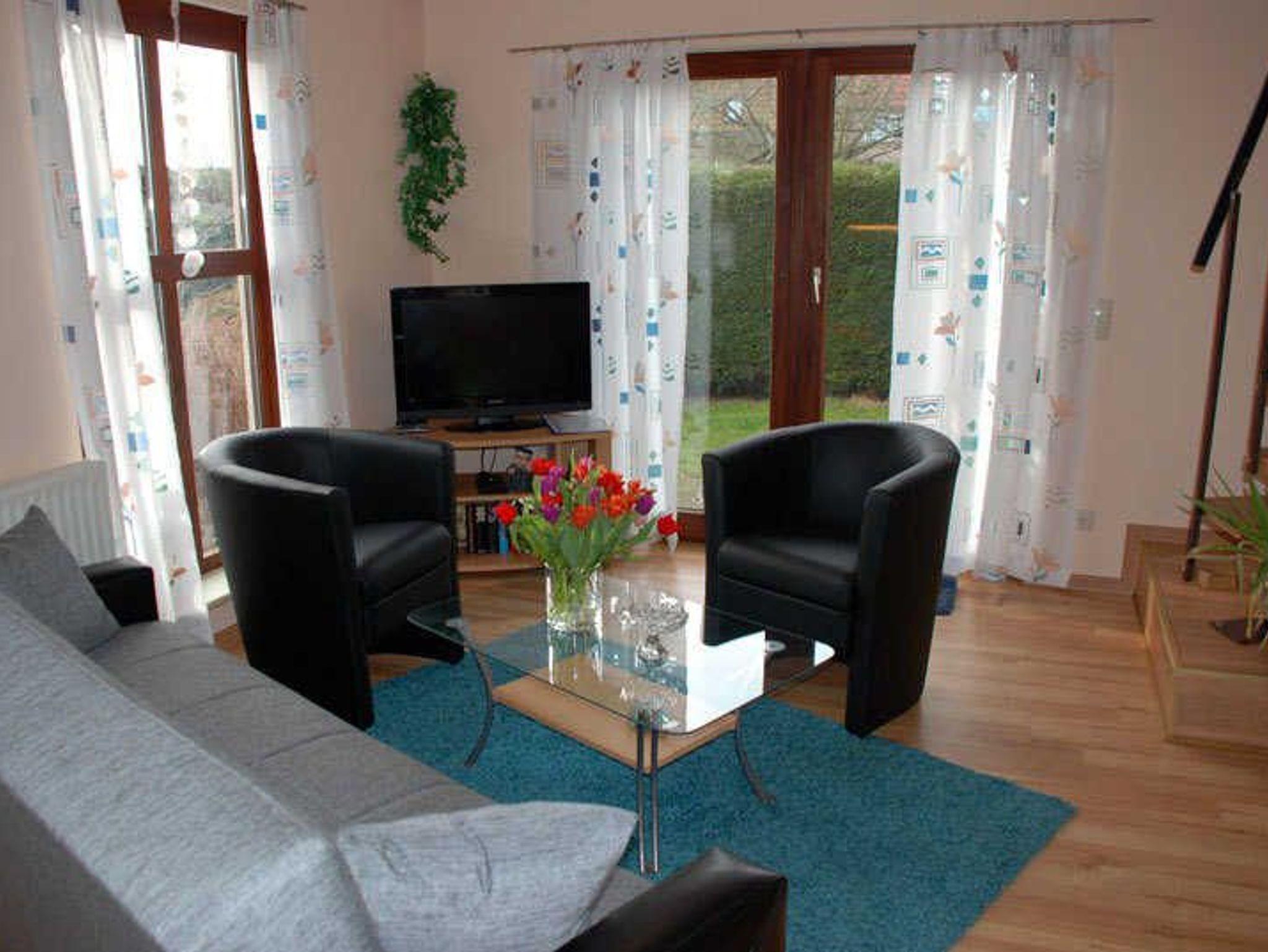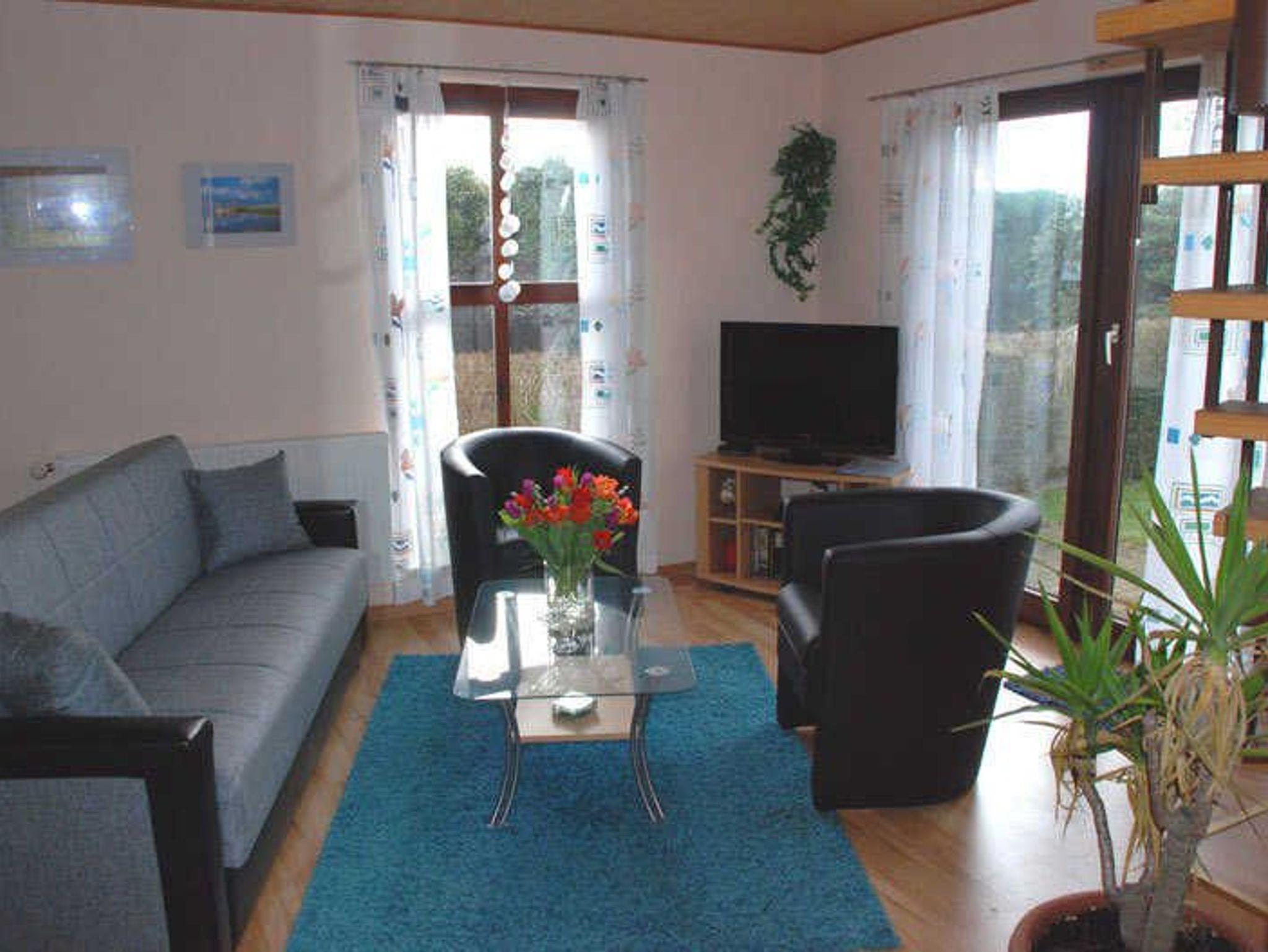 Das komfortabel eingerichtete Ferienhaus Adelheid mit Seeblick ist ca. 68 qm groß und ist für max. 5 Erwachsene ausgestattet. Im Wohnraum befinden sich eine bequeme Sitzcouch mit Tisch und ein TV-Gerät. Hier steht auch ein Esstisch mit Stühlen. Die moderne Küchenzeile ist mit einem Herd, Backofen, Abzugshaube, Wasserkocher, Kaffeemaschine, Toaster und Kühlschrank komplett ausgestattet. Das erste Schlafzimmer im Erdgeschoss verfügt über ein bequemes Doppelbett mit Nachttischen und Leselampen sowie einen Kleiderschrank.