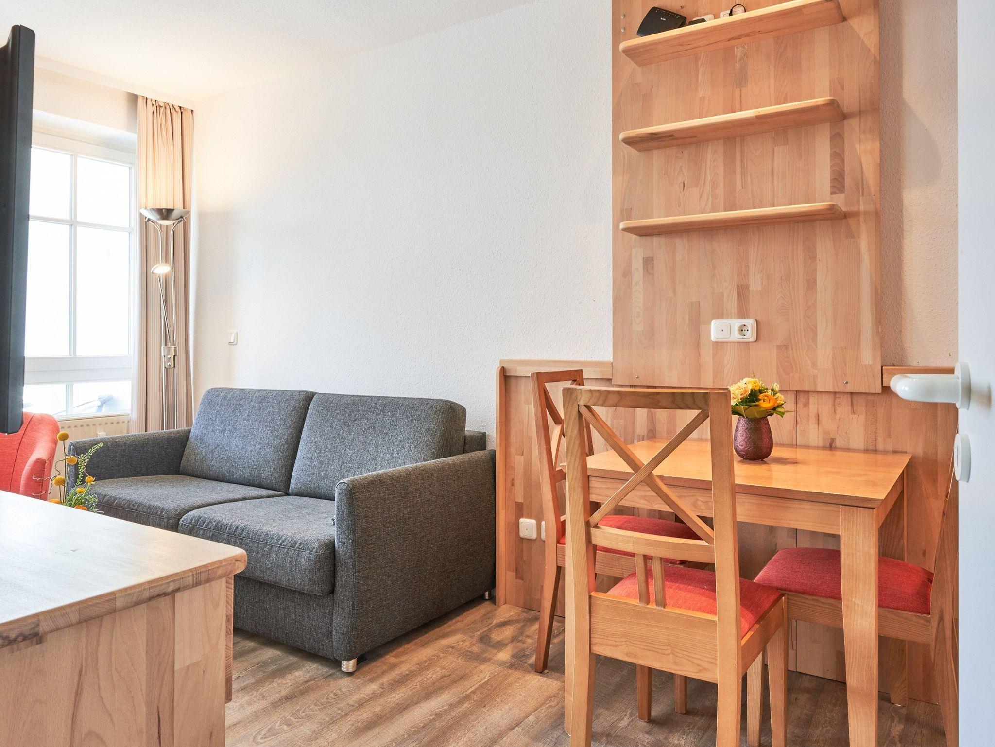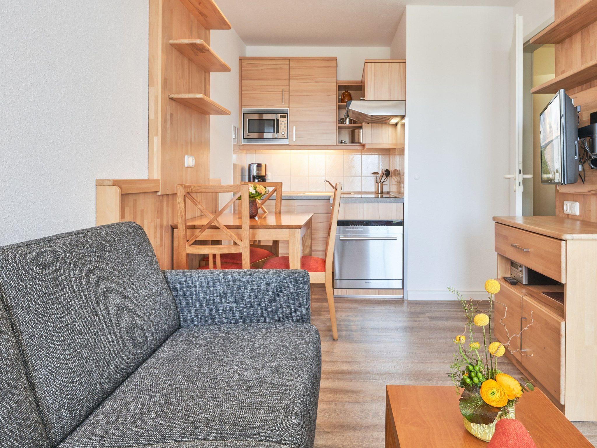 Nach einem erlebnisreichen Urlaubstag können Sie auf dem Balkon in Südwestlage Platz nehmen. Der Ausblick und die Sitzgruppe sorgen hier für ein wunderbares Urlaubsgefühl. Im Nichtraucher-Apartment sind Haustiere nicht gestattet.