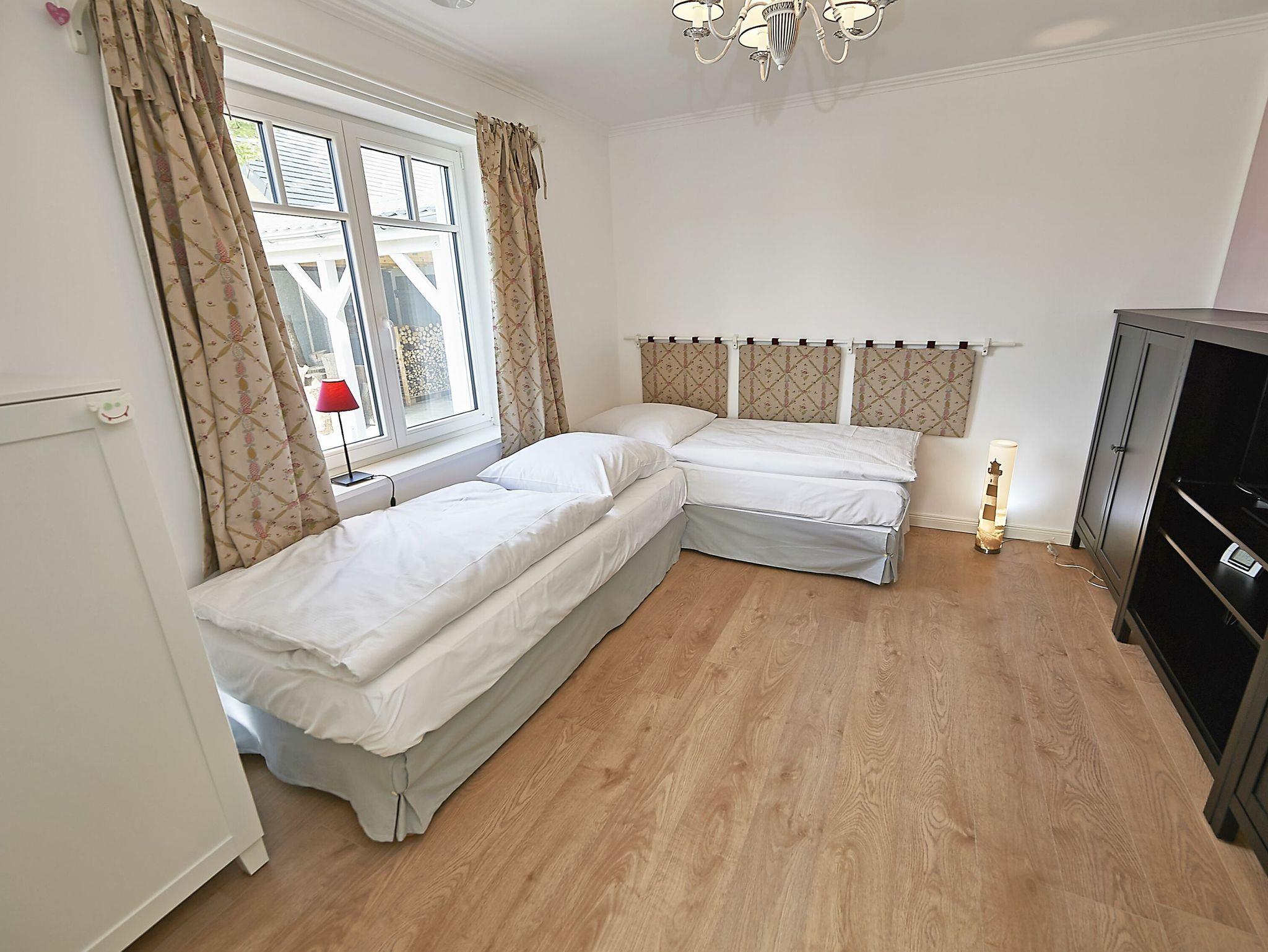 Das Nichtraucherhaus bietet Platz für 4 + 2 Personen. Dabei lässt die Ausstattung keine Wünsche offen: Kaminofen, drei Schlafzimmer, drei Bäder, eine umfassende hochwertige Küchenausstattung und ?einrichtung, W-LAN, Kabel-TV, zwei Flachbildfernseher, Waschmaschine, Geschirrspülmaschine, Gartenmöbel, Grillmöglichkeit, Sonnenliegen, Fahrradschuppen und ?ständer, zwei Pkw-Stellplätze. Alle Schlafräume sind mit Mückenschutz ausgestattet.
