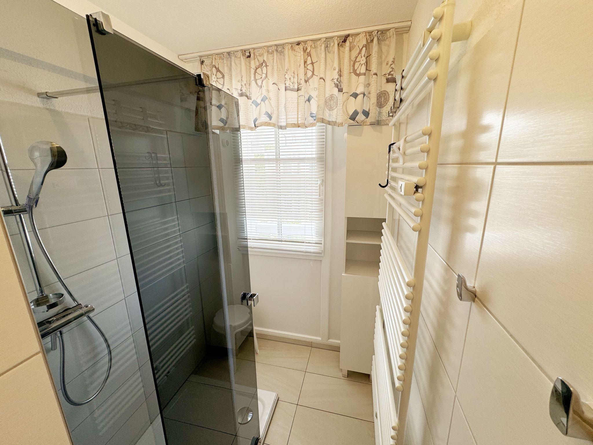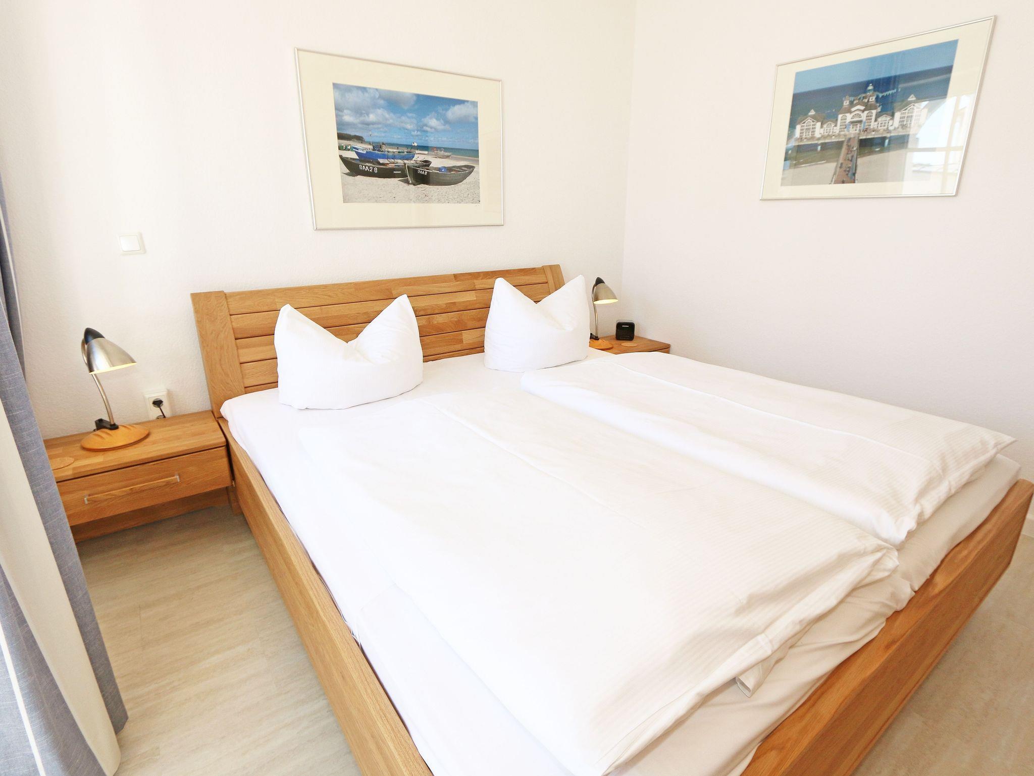 Die helle und gemütlich eingerichtete Nichtraucherwohnung befindet sich in der 2. Etage des Hauses Moritzdorf im Seepark Sellin. Die ca. 48 m² große Wohnfläche bietet ausreichend Platz für 2 bis 3 Personen. Der Essbereich verfügt über eine moderne Küchenzeile mit Induktions-Ceranfeld, Spüle, Kühlschrank, Spülmaschine, Mikrowelle, Backofen, Kaffeemaschine, Toaster, Wasserkocher sowie diverse Küchenutensilien. Ein heller Esstisch mit 4 Stühlen lädt Sie zu den Mahlzeiten ein. Im vollständig gefliesten Wohnbereich können Sie es sich in einem Relaxsessel ? vielleicht nach einer längeren Strandwanderung ? bequem machen. Eine Couch (Aufbettungsmöglichkeit für die 3. Person/ 1,20 m x 1,90 m) komplettiert das Angebot. Flachbildfernseher, DVD-Player und Mini-Stereoanlage gehören zur technischen Wohnungsausstattung genauso dazu wie ein für Sie kostenfrei nutzbarer WLAN-Anschluss. Vom Wohnbereich aus erreichen Sie den großen bestuhlten Balkon (Westen). Eine Zigarette oder eine Zigarre lassen sich durchaus auch hier genießen. In der Wohnung bitten wir mit Rücksicht auf andere Gäste darum, nicht zu rauchen. Zwischen Wohn- und Schlafzimmer liegt das Badezimmer. Es ist mit einer ebenerdigen Dusche, einem WC, einem Waschbecken und einen Fön ausgestattet. Das mit Vinyl ausgelegte Schlafzimmer bietet Ihnen ein Doppelbett (2 x 0,90m x 2,00m), Nachttischablagen und einen geräumigen Kleiderschrank. Für unsere kleinen Gäste steht 1x Kinderreisebett (ohne Zusatzmatratze, ohne Bettinlett) und 1x Hochstuhl inklusive zur Verfügung. Ein eigener PKW-Stellplatz (Nr. 86) steht in der Tiefgarage (Höhe 1,80m) zu Ihrer ausschließlichen Nutzung kostenfrei zur Verfügung. Fahrräder können Sie im Keller sicher abstellen. Haustiere sind nicht erlaubt. Die Erstausstattung eines Wäschepaketes (komplette Bettwäsche, 1 Duschhandtuch, 2 kleine Handtücher) können Sie bis 14 Tage vor Anreise gegen einen Aufpreis dazu buchen oder durch eigene ergänzen. Ab 2 gebuchten Paketen erhalten Sie einmalig 1 Geschirrhandtuch und 1 Duschvorleger hinzu. Wir wünschen Ihnen einen erholsamen Urlaub auf der schönen Insel Rügen in Sellin!