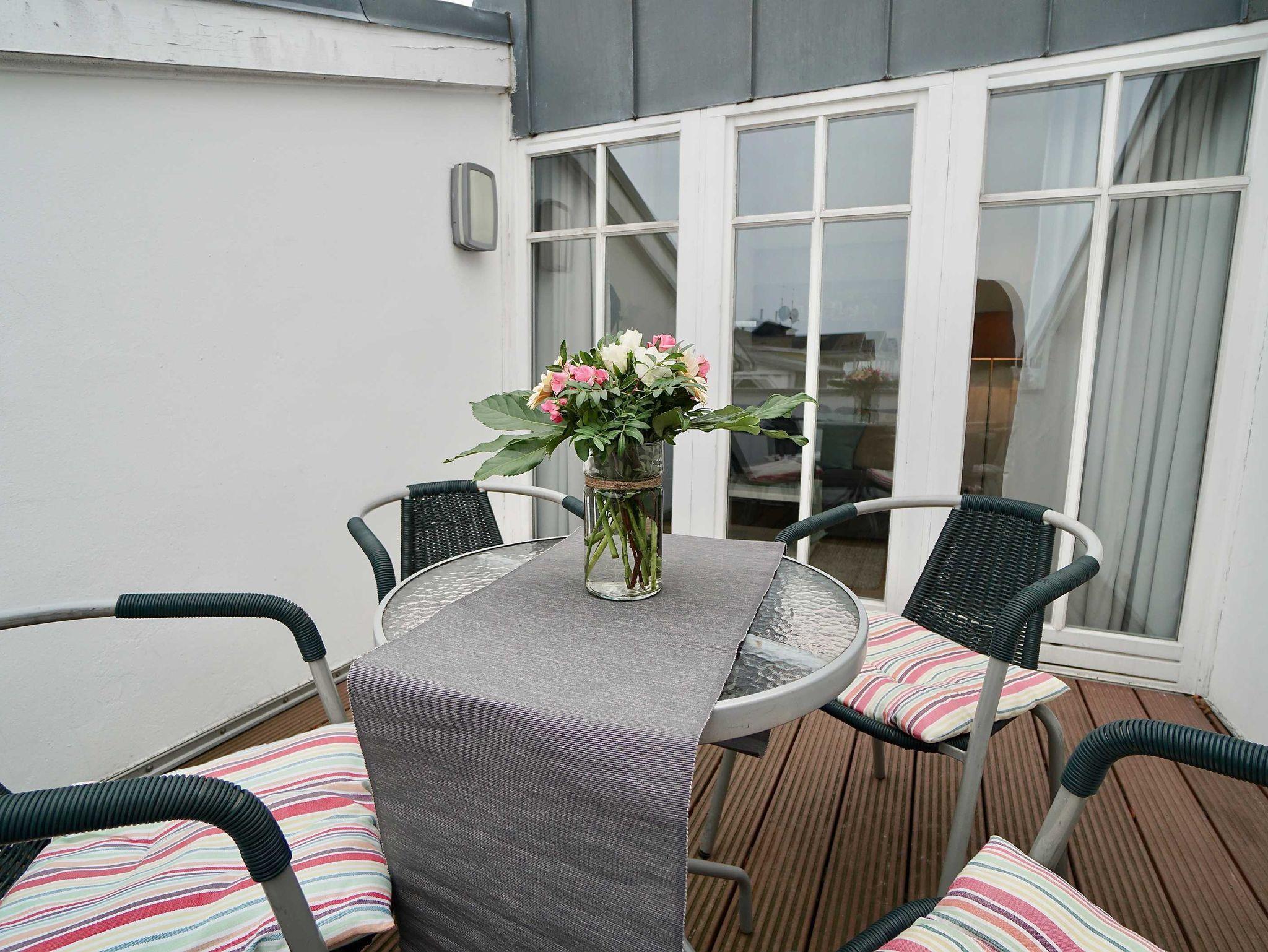 Starten Sie hier idyllisch in Ihren Urlaubstag und genießen Sie ein leckeres Frühstück direkt auf Ihrem Balkon. Die Ausrichtung der Balkone sind nach Süd bzw. Nord. Eine Treppe führt Sie direkt in den Küchenbereich, in dem die große Küchenzeile über alles verfügt, was das Herz zum Kochen begehrt. Nutzen Sie den Backofen sowie das moderne 4-Platten-Cerankochfeld und lassen Sie doch den Geschirrspüler das Abwaschen übernehmen. Am großzügigen Esstisch finden alle Gäste dieser Wohnung bequem Platz. Von hier aus erreichen Sie auch die beiden separaten Schlafzimmer, die jeweils mit einem bequemen Doppelbett und einem großen Kleiderschrank ausgestattet sind. Ebenso grenzt hier das Tageslicht durchflutete, moderne Bad mit 2 Waschbecken, WC und ebenerdiger Dusche an.