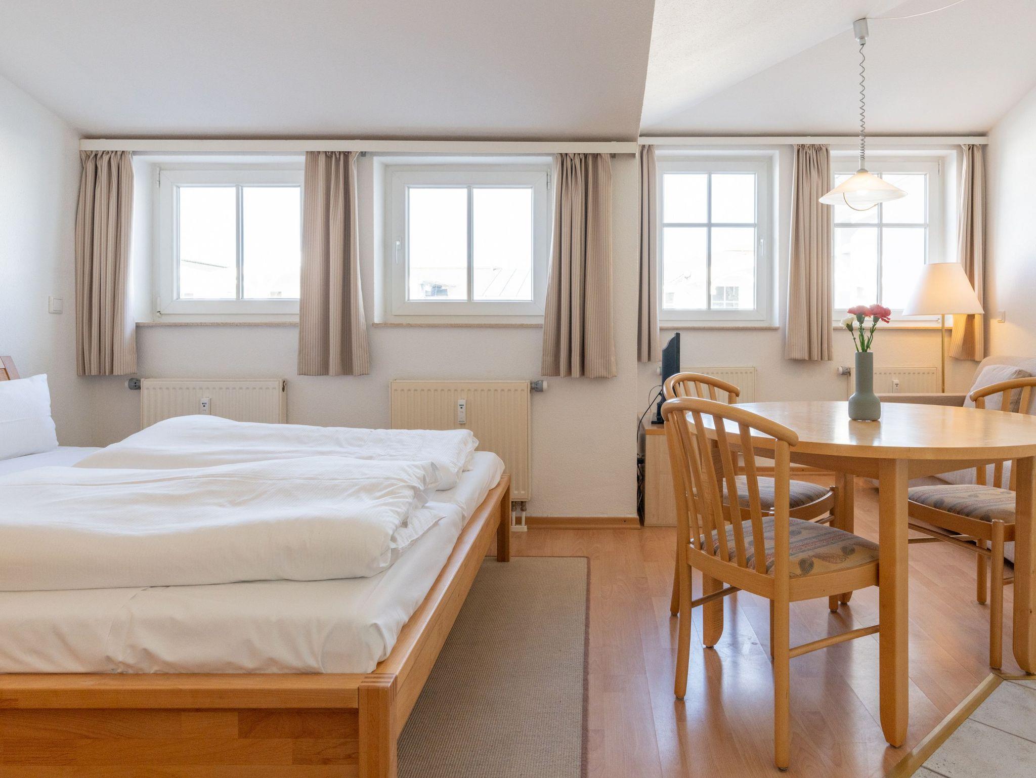 Die Ferienwohnung verfügt über kostenfreies WLAN und die Erstausstattung an Bettwäsche ist inklusive. Der kombinierte Wohn-/Schlafbereich mit Verdunklung verfügt über ein Doppelbett. Darüber hinaus verfügt die Ferienwohnung über ein Bad mit Dusche/WC und Föhn. Die voll ausgestattete Pantry mit Kaffeemaschine und Toaster lässt keine Wünsche offen. Ein Fernseher inkl. 3 Sky-Sender rundet die gute Einrichtung ab. Im Nichtraucher-Apartment ist ein mitreisendes Haustier gestattet.
