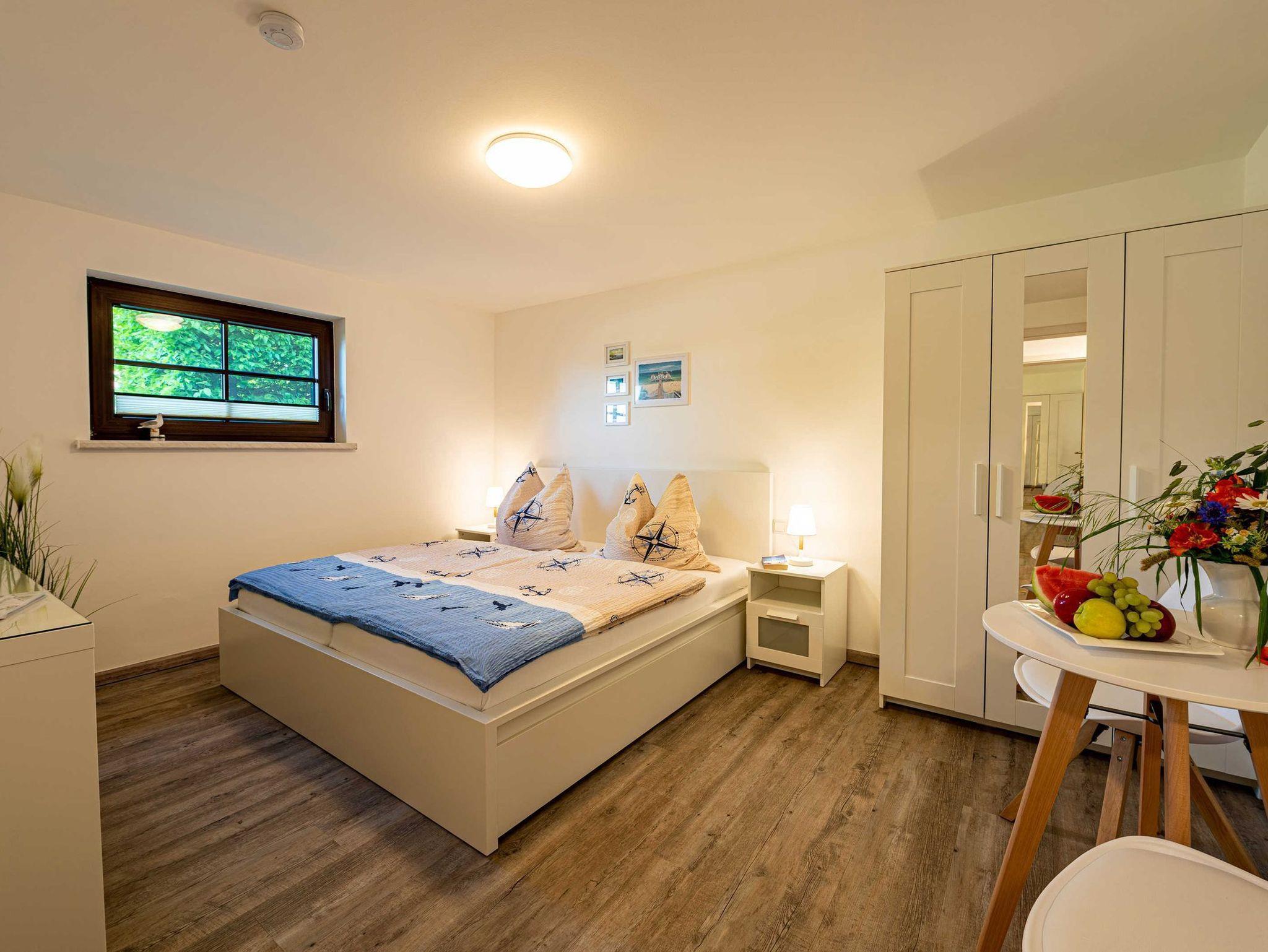 Unser 2-Raumappartement Kormoran liegt im Souterrain (ohne Seeblick, zum Nachmittag ist diese Wohnung sonnendurchflutet) unseres Wohnhauses und ist über eine Außentreppe mit separatem Eingang zu erreichen. In diesem Appartement ist kein Seeblick vorhanden. Es ist ca. 40 qm groß, hell und freundlich, hat Platz für maximal 3 Erwachsene (Kinder ab 3 Jahren) und wurde modern und komfortabel eingerichtet.
