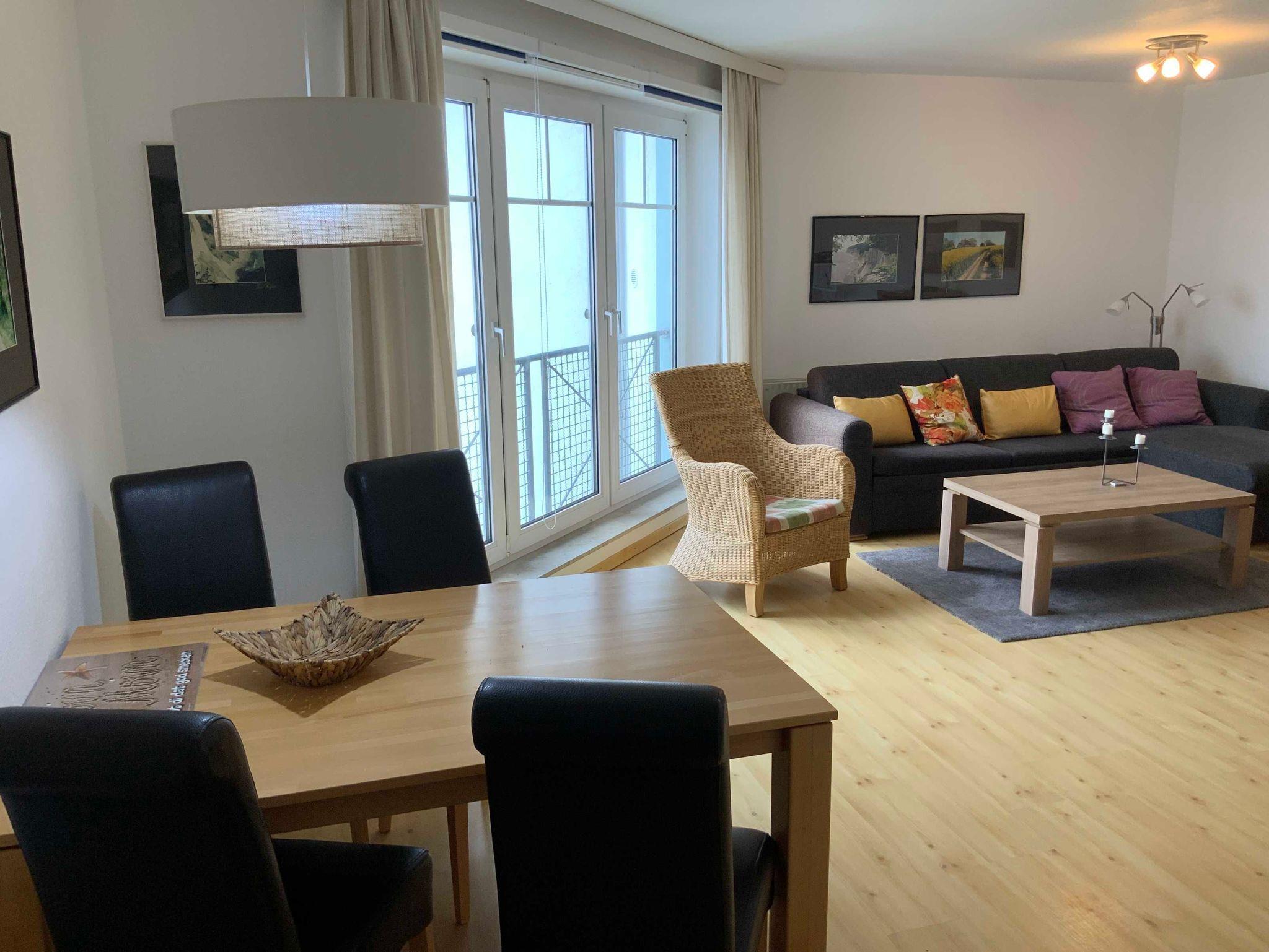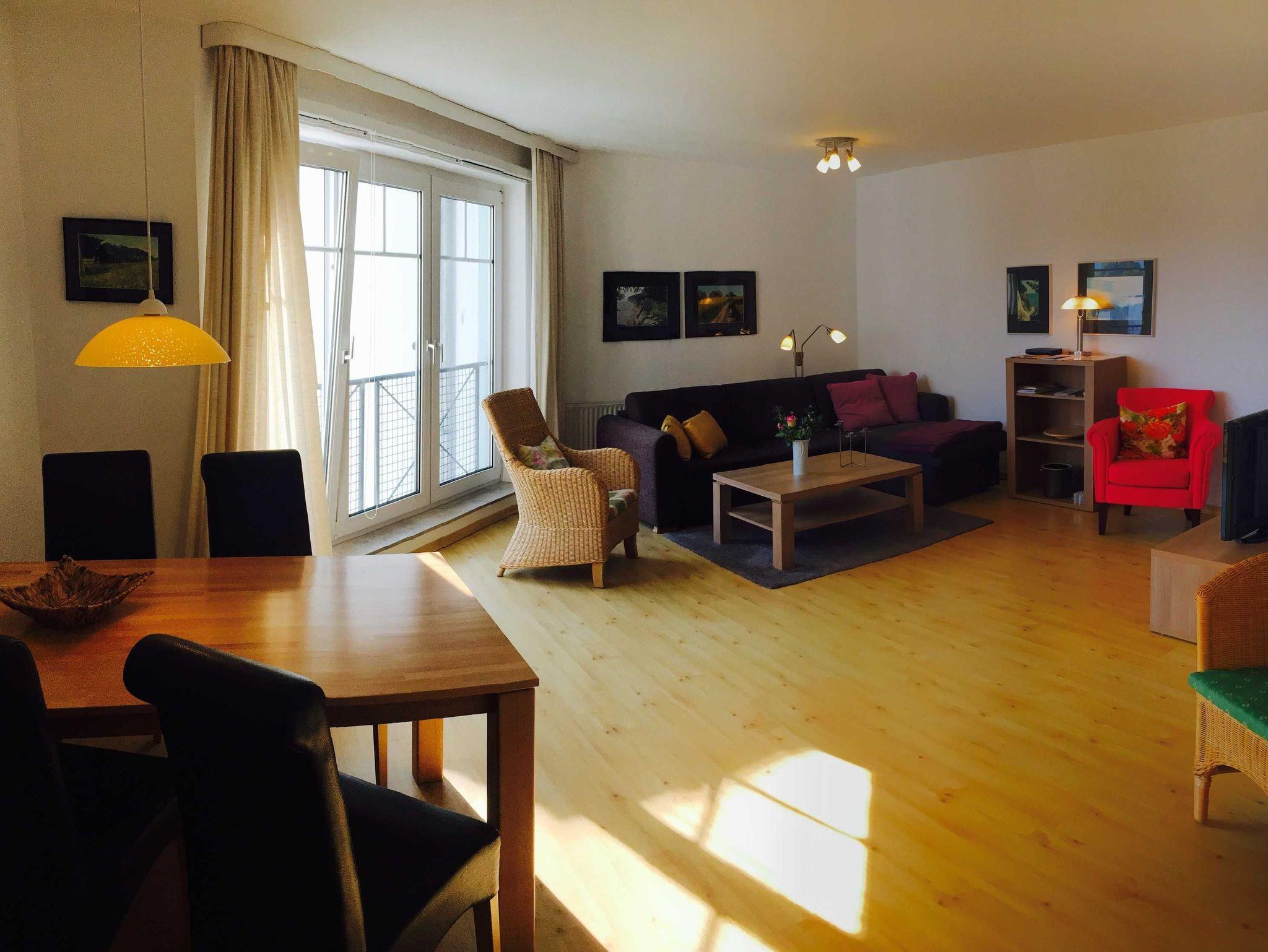 Die komfortabel eingerichtete 65qm große Nichtraucherwohnung Nr. 9 befindet sich im 1. Obergeschoß eines Appartementhauses und ist mit Laminatfussböden ausgestattet. Die Wohnung verfügt über einen großen Wohnraum welcher mit einer gemütlichen Couchgarnitur (Doppelbettcouch für 2 Personen), einen separaten Schlafraum mit einem Doppelbett, eine Küche mit Herd und Backofen,Geschirrspüler,Toaster sowie ein grosses Badezimmer mit Dusche/WC und einer Waschmaschine. Zur Ausstattung gehören Flachbild TV, Radio mit CDplayer.