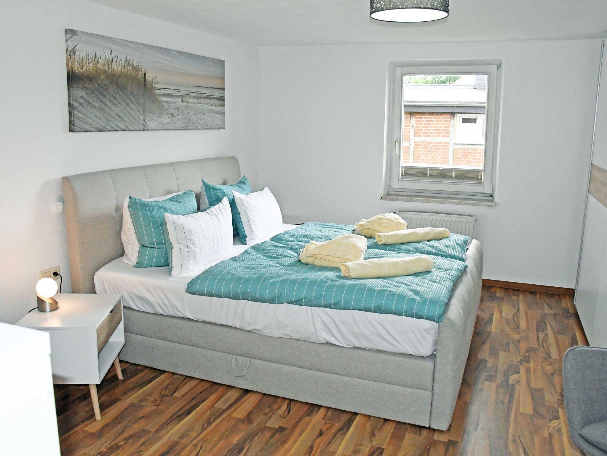 Im Schlafzimmer befinden sich ein bequemes Doppelbett mit Nachttischen und Leselampen sowie ein Kleiderschrank. Auf Wunsch kann hier ein Kinderreisebett und ein Hochstuhl bereit gestellt werden. Für 2 Gäste kann auf der Couch im Wohnraum eine Aufbettung hergestellt werden.