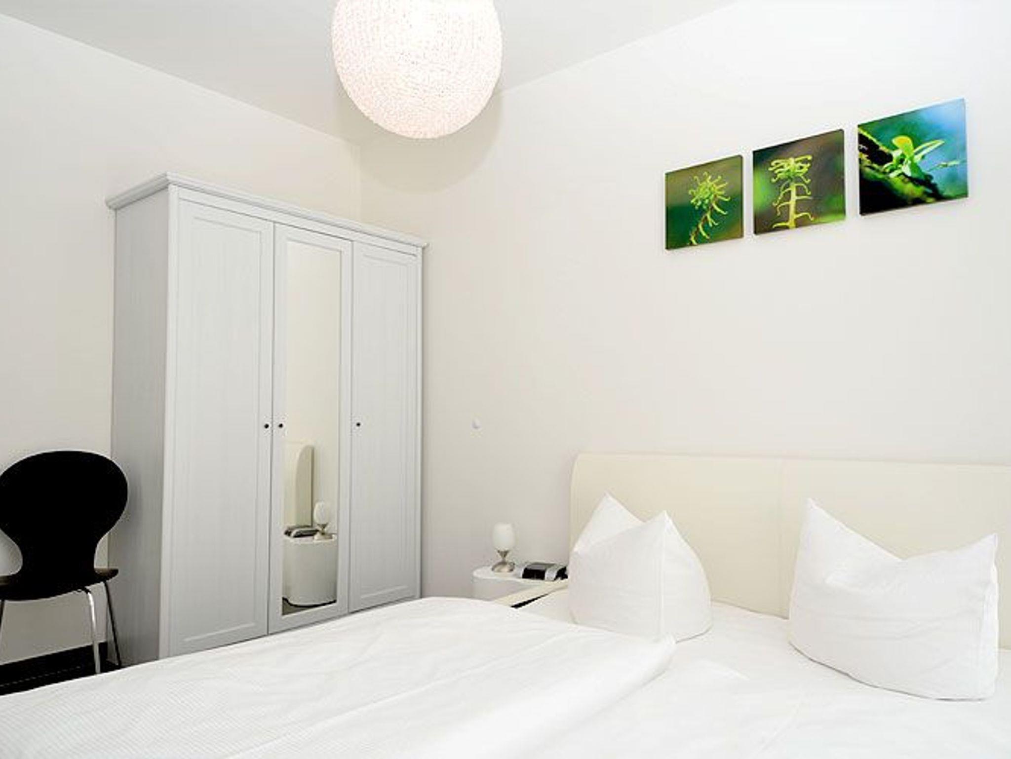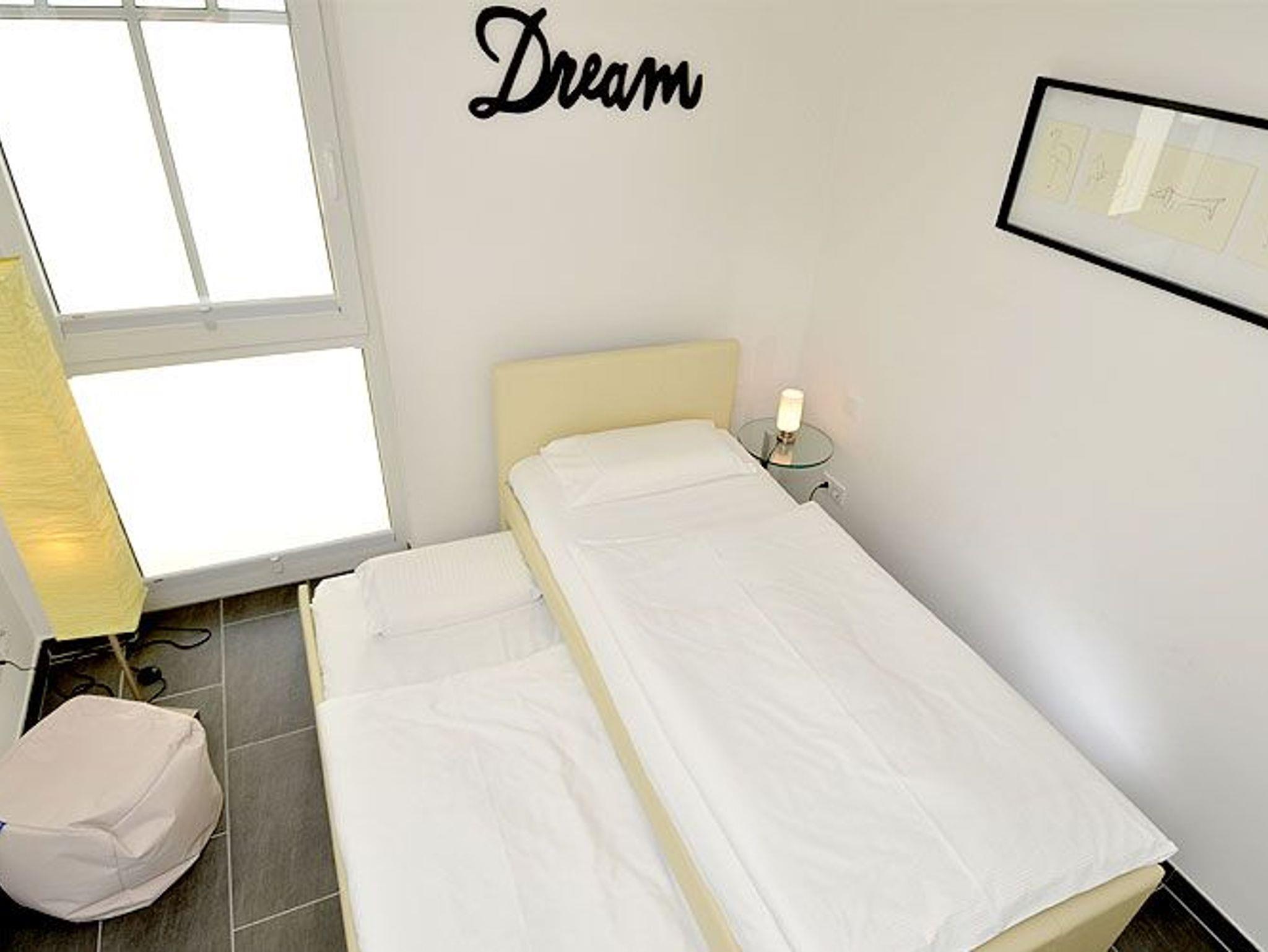 Das Appartement hat zwei Schlafzimmer. In einem der Schlafzimmer befindet sich ein Designer-Doppelbett (1,60 m) mit komfortabler 7-Zonen-Kaltschaummatratze; das zweite Schlafzimmer ist als Gäste- oder Kinderzimmer geeignet und hat ein Einzelbett (90 cm) mit ausziehbarer Bettschublade für eine weitere Schlafgelegenheit (90 cm).