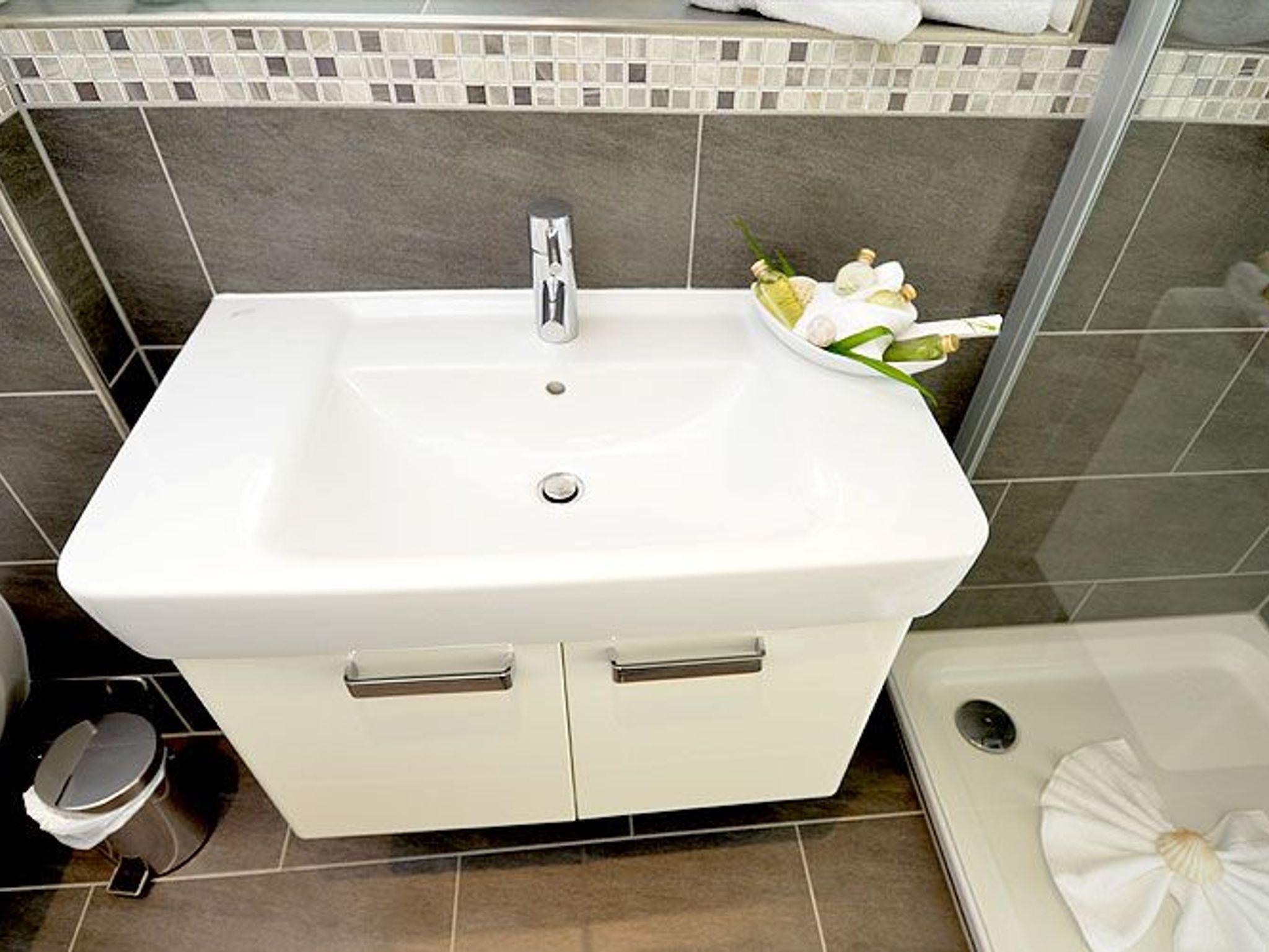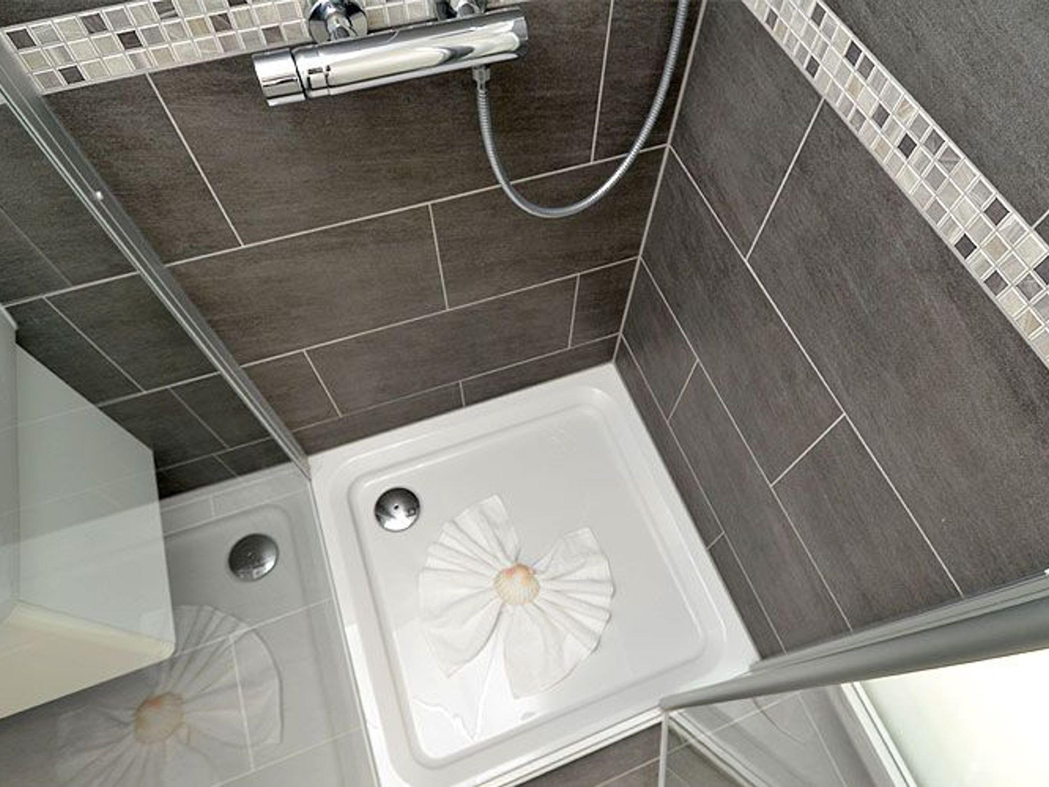 Ein modernes Duschbad mit verglaster Dusche und Handtuchwärmer ist natürlich ebenfalls vorhanden. Alle Räume sind gefliest und verfügen über eine Fußbodenheizung für eine gemütliche und behagliche Atmosphäre.