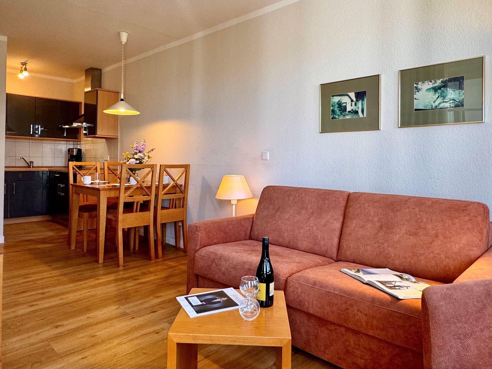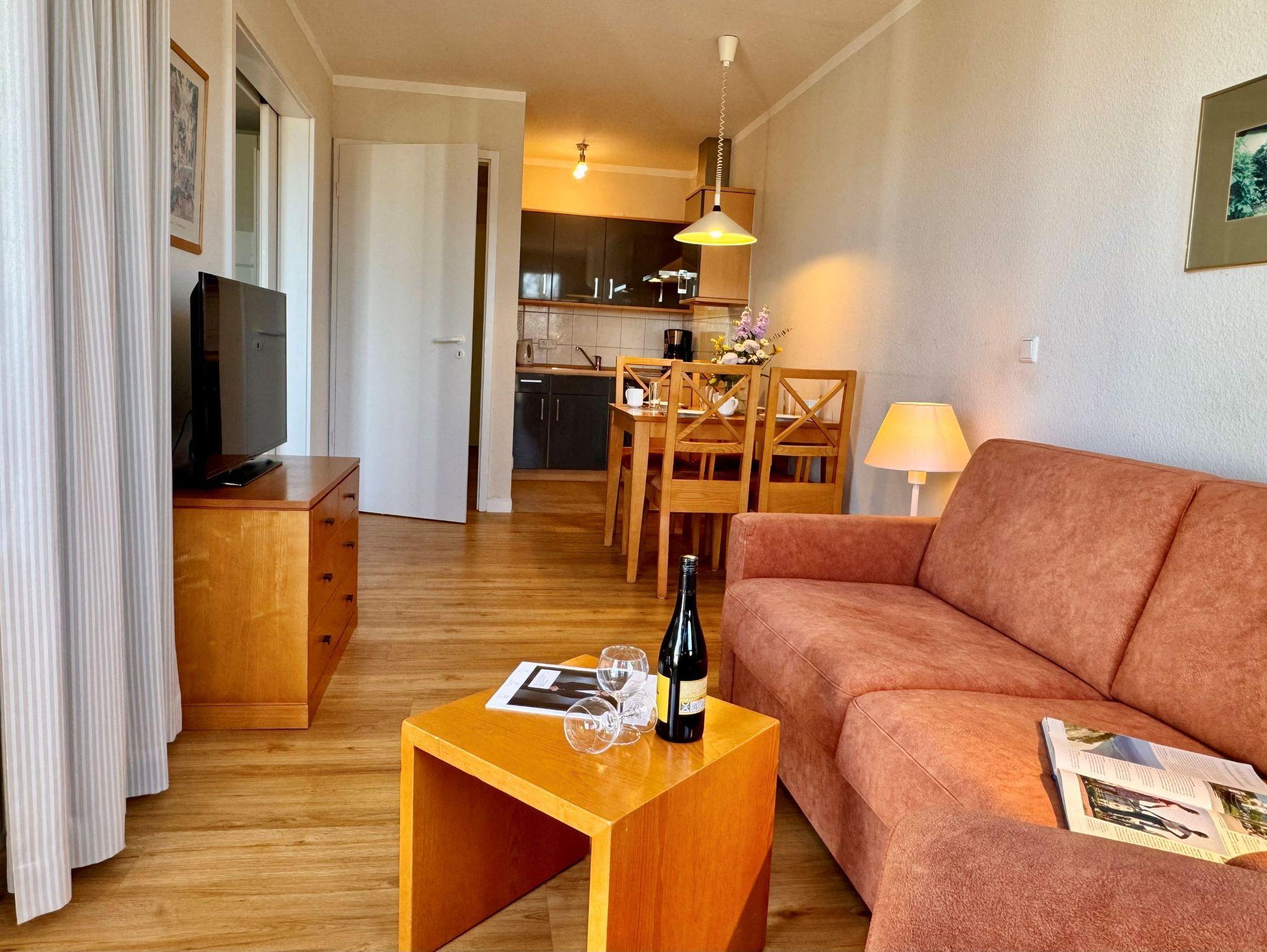 Die Ferienunterkunft Fewo 316 befindet sich im Seepark Sellin und bietet Platz für maximal 4 Personen. Die 44 m² große Wohnung befindet sich im Haus Having in der 1. Etage und über einen Aufzug gut zu erreichen. Das Schlafzimmer bietet ausreichend Platz für erholsame Nächte und das Badezimmer ist mit allen nötigen Utensilien ausgestattet.