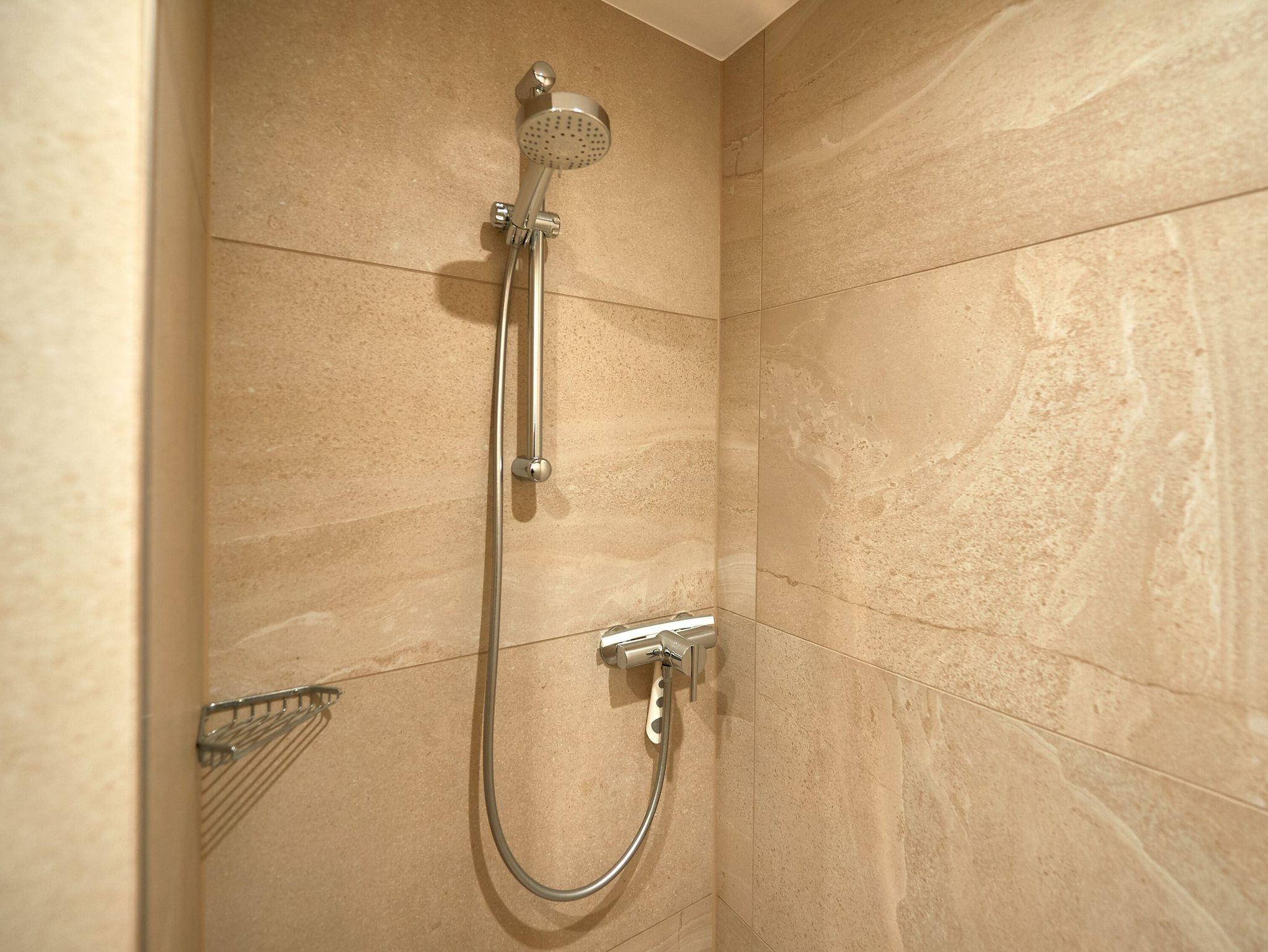 Ihr Appartement bietet darüber hinaus ein separates Schlafzimmer mit einem bequemen Doppelbett und ausreichend Platz für Ihre Garderobe sowie ein modernes Badezimmer mit Dusche/WC, Waschtisch und Haartrockner.