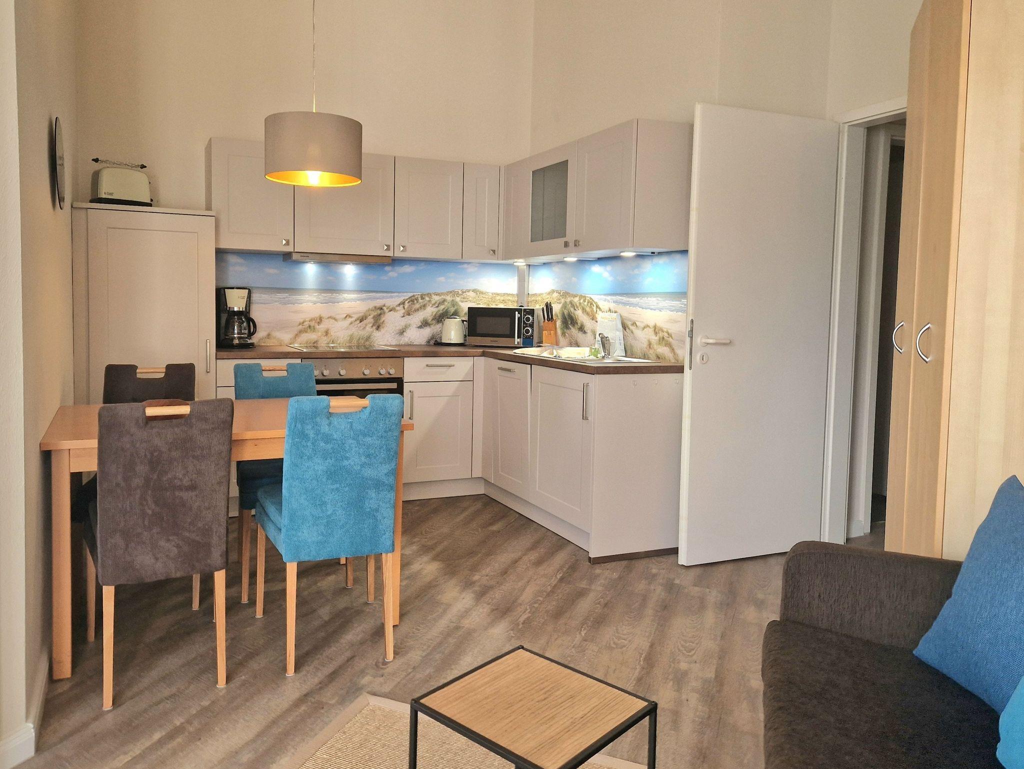 Nach einem erlebnisreichen Urlaubstag können Sie auf dem Balkon in Südostlage Platz nehmen. Der Ausblick und die Sitzgruppe sorgen hier für ein wunderbares Urlaubsgefühl. Im Nichtraucher-Apartment seine keine Hunde gestattet.