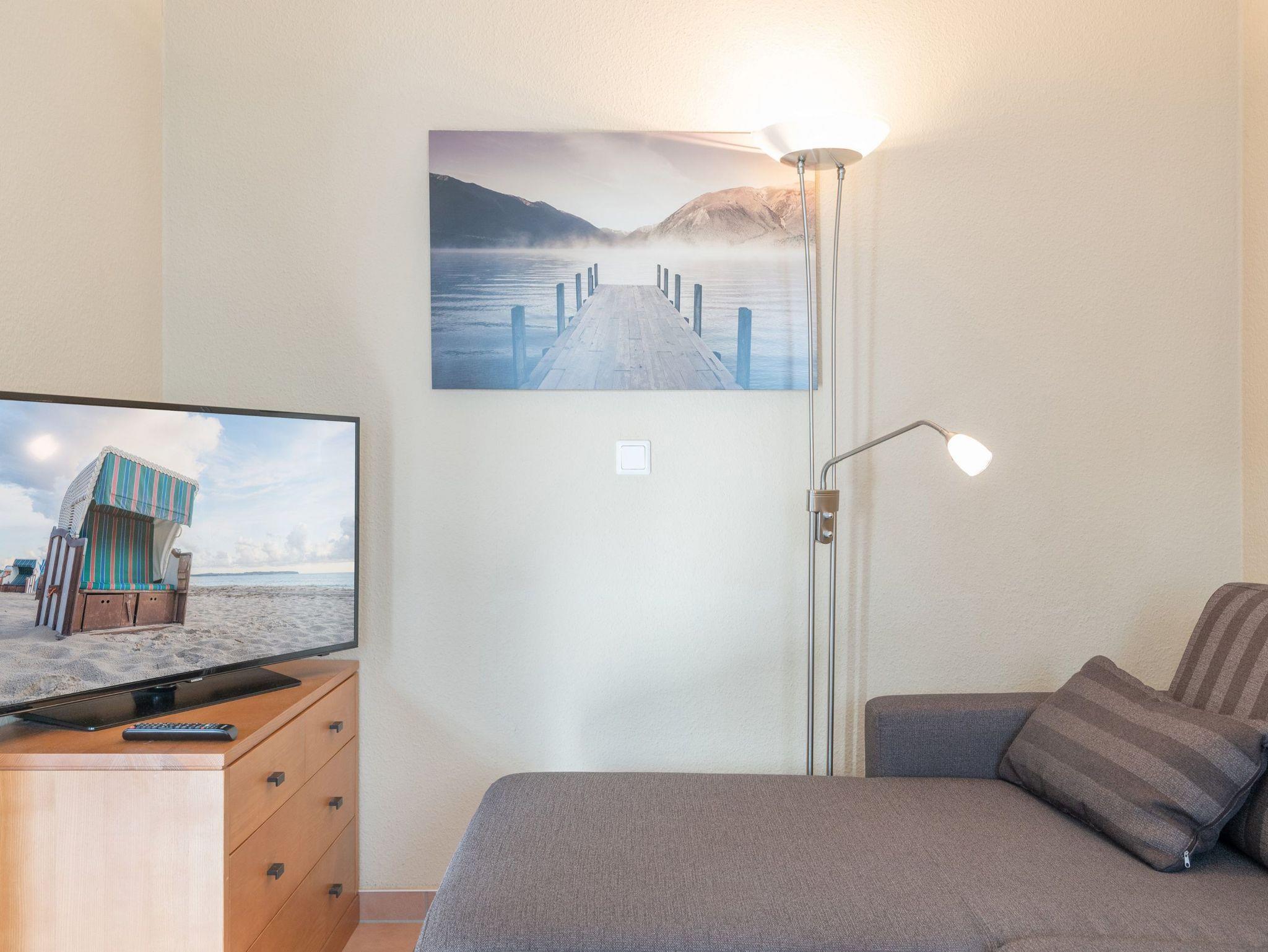 Die Ausstattung der Ferienwohnung umfasst unter anderem einen Flachbild-TV, eine Kaffeemaschine (Filter), eine Mikrowelle und einen Geschirrspüler. Die Bettwäsche ist bereits im Preis inklusive. Auf dem Balkon können Sie die frische Seeluft genießen. Die offene Wohnküche lädt zum gemeinsamen Kochen und Essen ein. Für die Unterbringung von Fahrrädern steht ein Fahrradkeller zur Verfügung. Ein WLAN-Anschluss sowie ein TV mit Sky-Sendern gehören ebenfalls zur Ausstattung. Für Ihr Auto gibt es einen Tiefgaragenstellplatz.