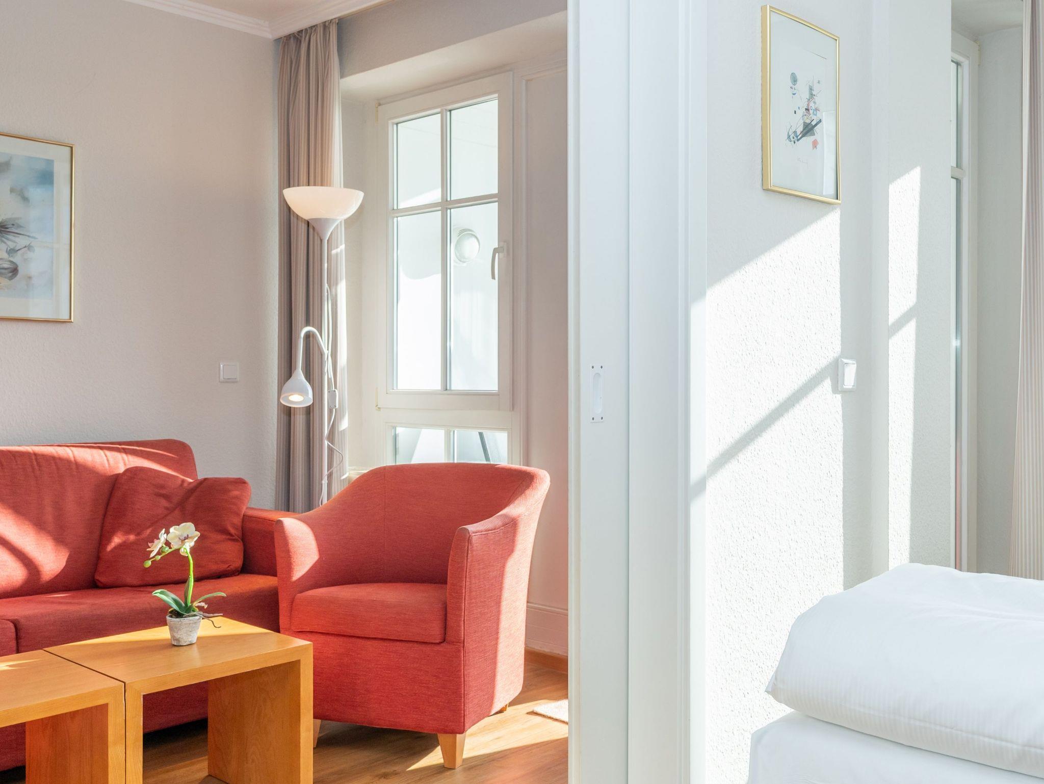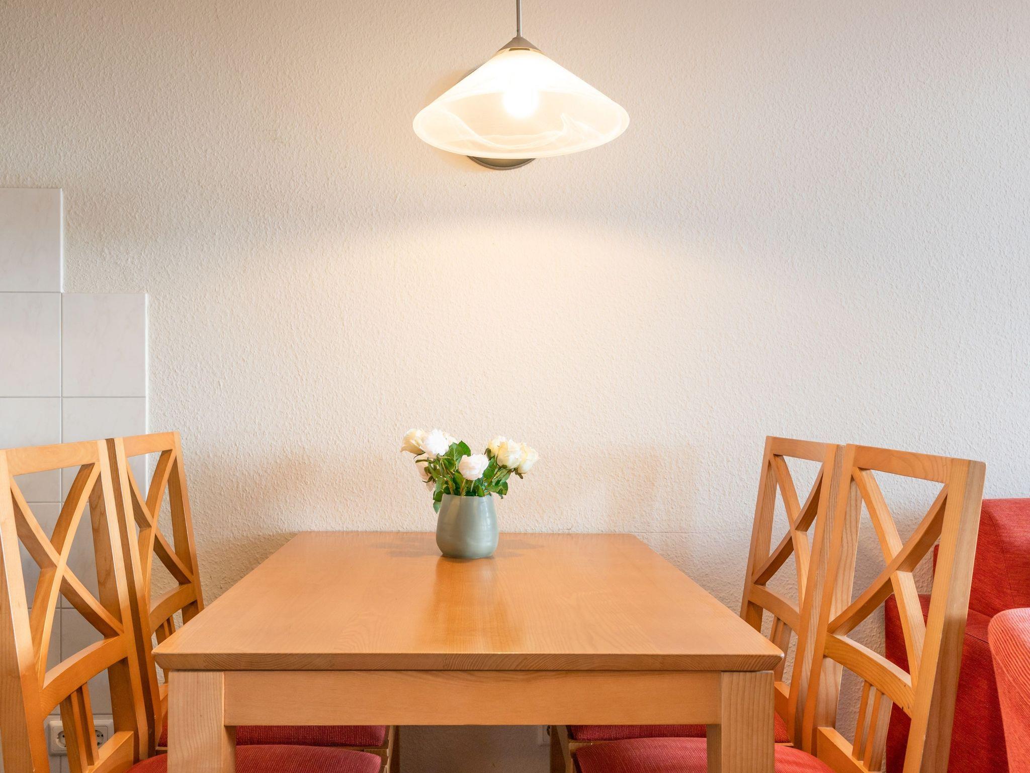 Auf dem Balkon in Südwestlage können Sie den Ausblick und die Sitzgelegenheiten genießen und sich rundum wohlfühlen. Das Nichtraucher-Apartment erlaubt die Mitnahme eines Haustiers.