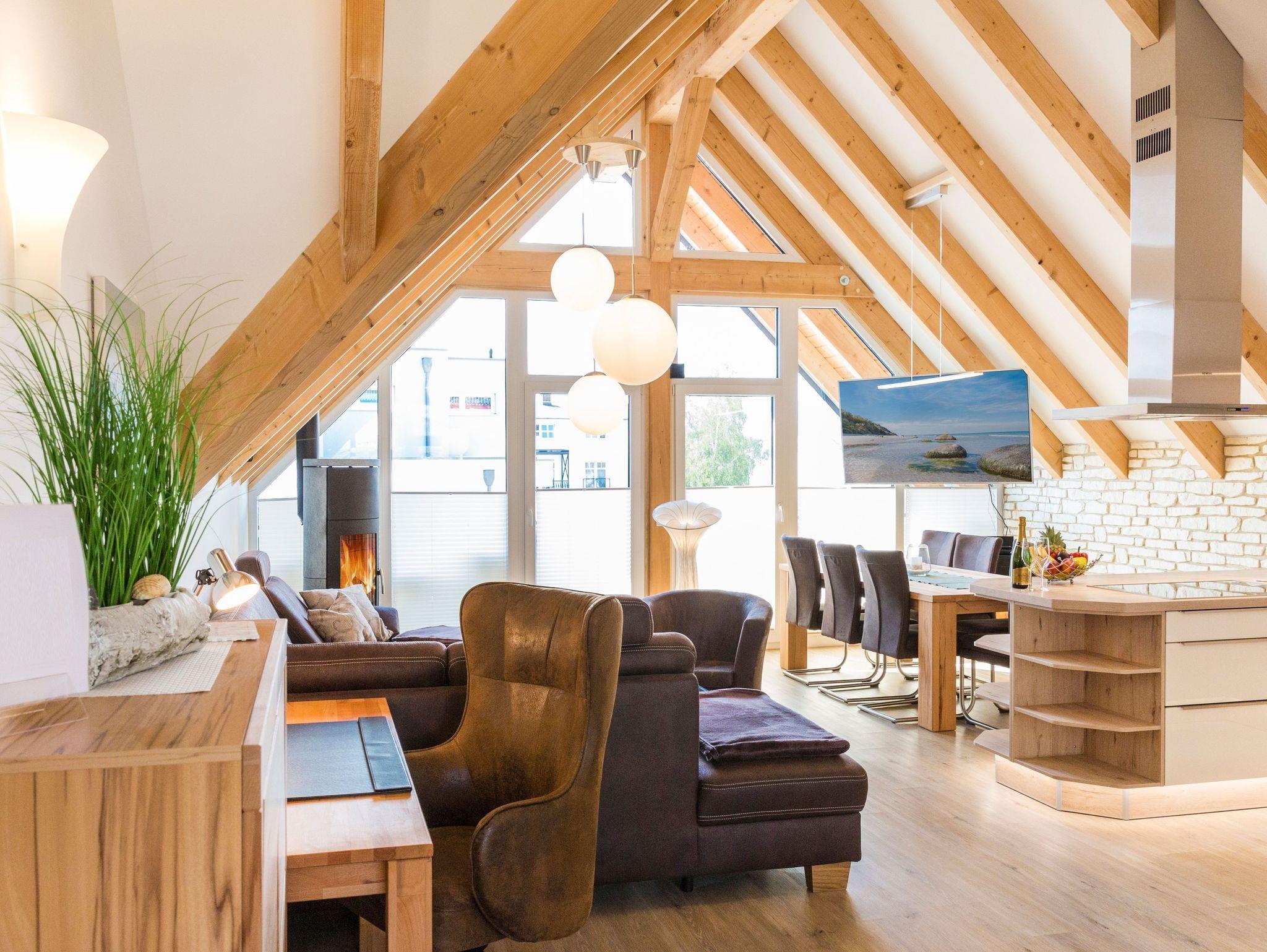 Im Obergeschoss befindet sich die tageslichtdurchflutete, komfortable und hochwertig eingerichtete Ferienwohnung ,,Möwenglück??. Auf 126 m² Wohnfläche mit Fußbodenheizung können Sie hier einen Urlaub der Extraklasse richtig genießen.