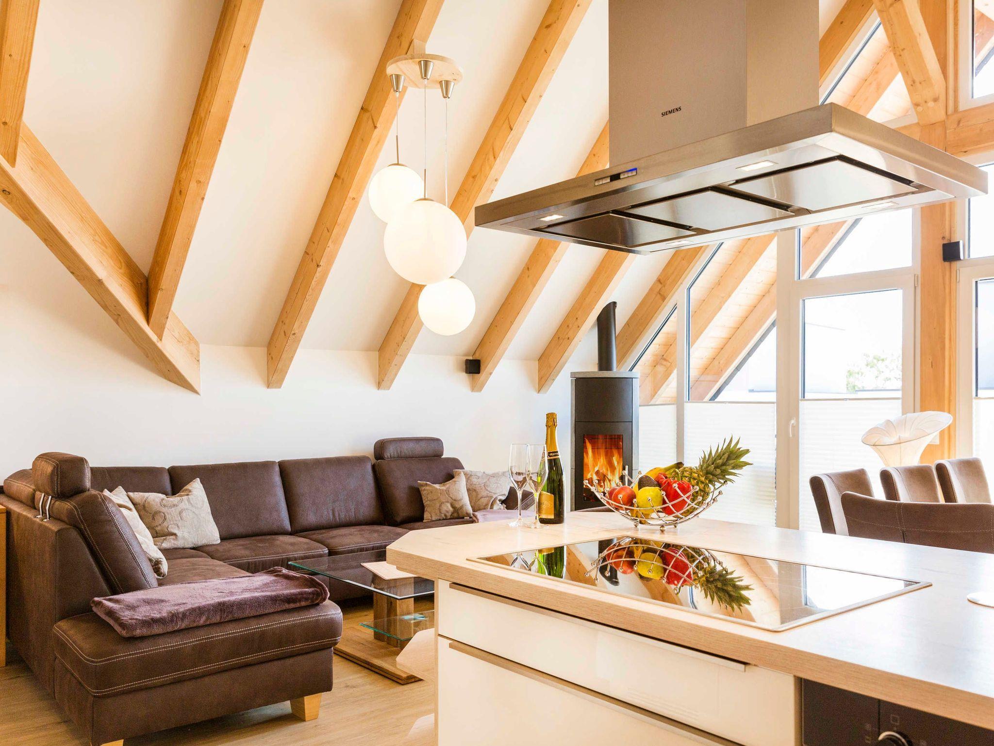 Schon in der großzügigen Diele erwartet Sie eine helle Leseecke mit Relaxstuhl. Im großen Wohn- und Küchenbereich mit direkter Sicht auf die hohe Kathedralen-Decke befindet sich die offene, voll ausgestattete Küche mit vielen Extras. Perfekt geplant lädt Freunde der kulinarischen Unabhängigkeit zu ausgiebigen Kochabenden ein.
