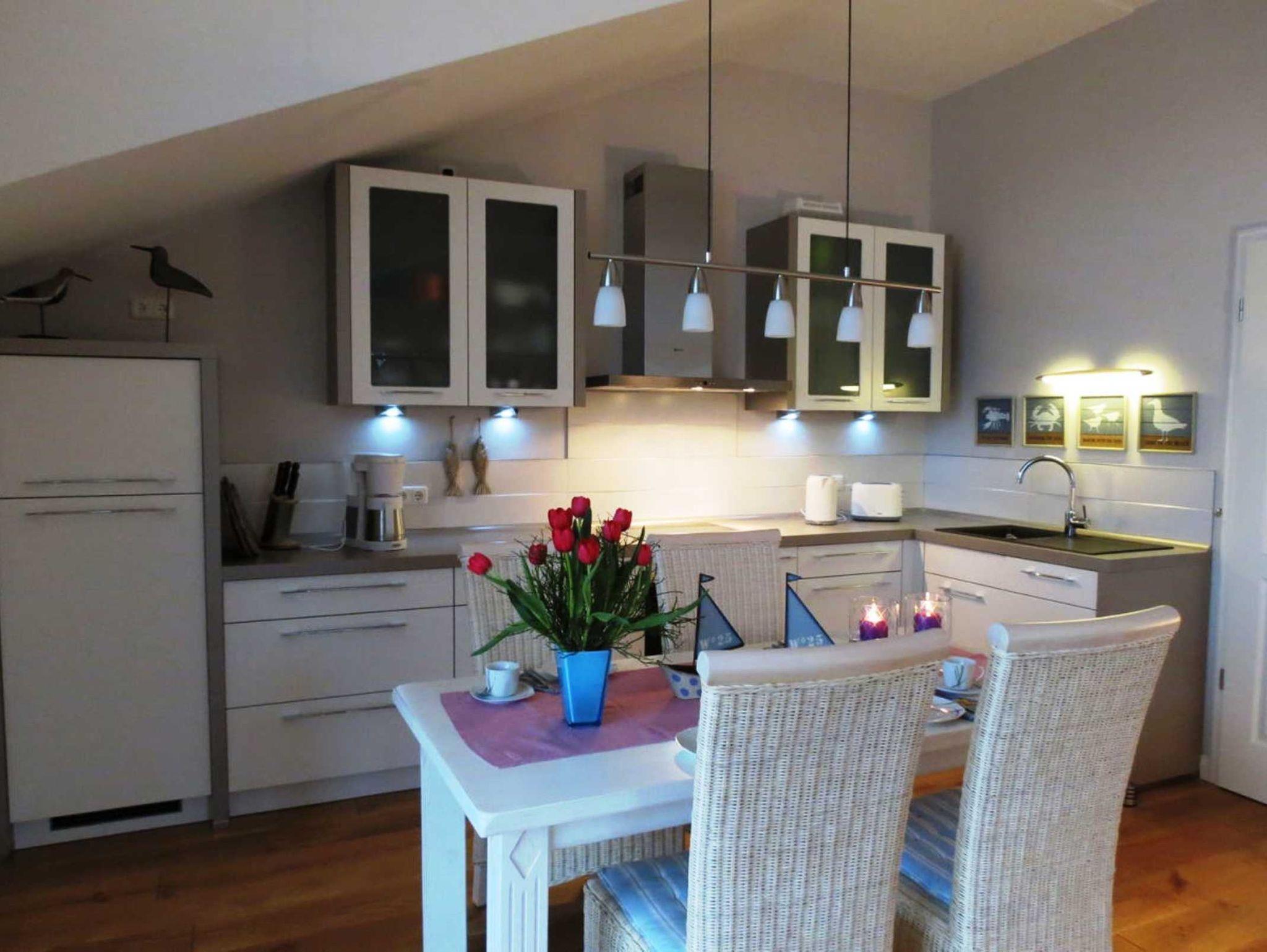 Unsere Ferienwohnung Sturmmöwe befindet sich im 2. Obergeschoss mit großem Balkon. Sie ist für 4 Personen + Kleinkind exklusiv eingerichtet und verfügt neben dem großzügigen Wohn/ Essbereich mit komplett ausgestatteter Küche, über zwei Schlafzimmer, ein Tageslichtbad sowie einen Flur. Hohe helle Räume und hochwertige Landhausdielen tragen zum Wohlbefinden bei. Für unsere kleinen Gäste stellen wir Ihnen ein Kinderreisebett und einen Hochstuhl kostenfrei zur Verfügung.
