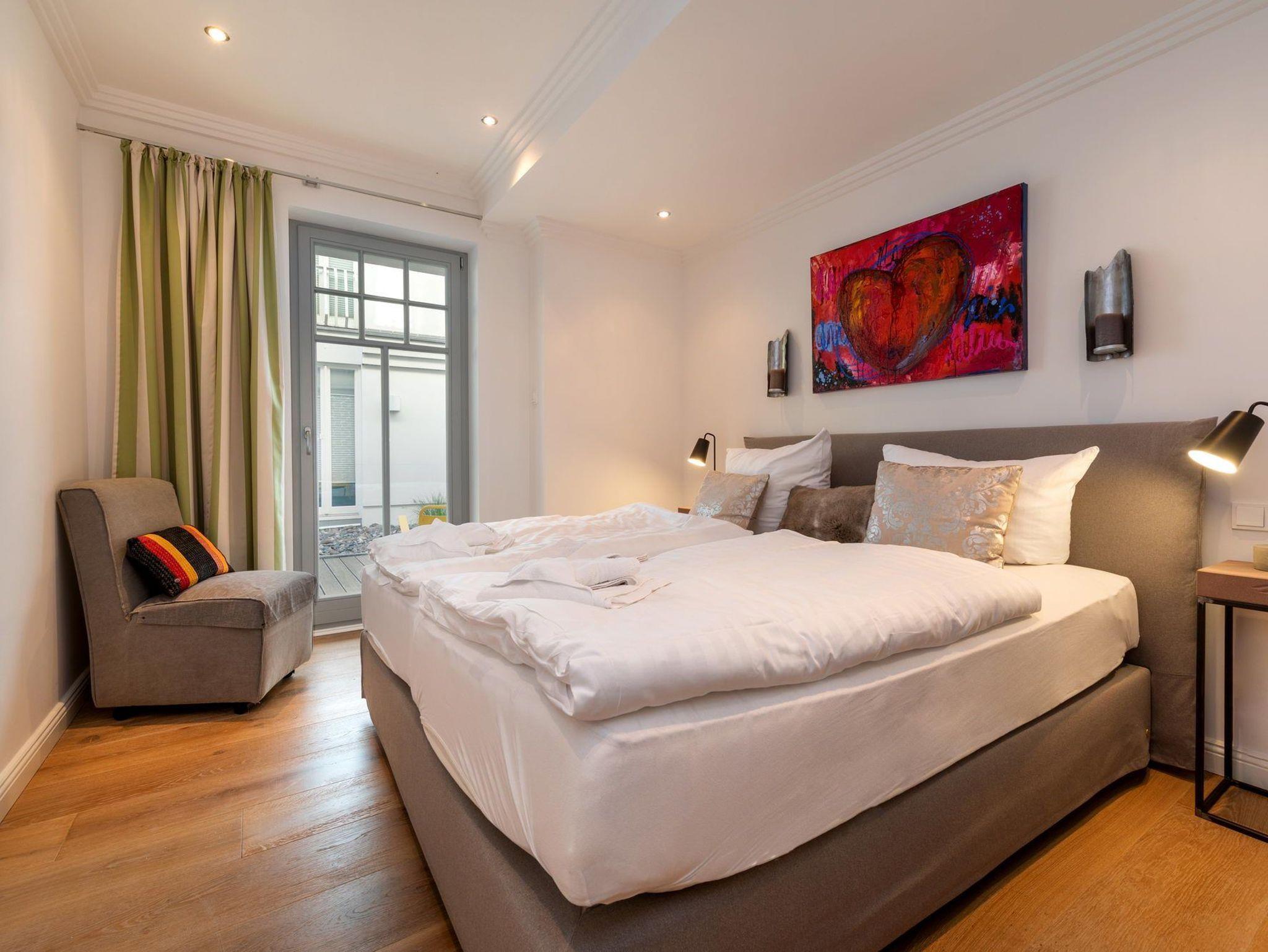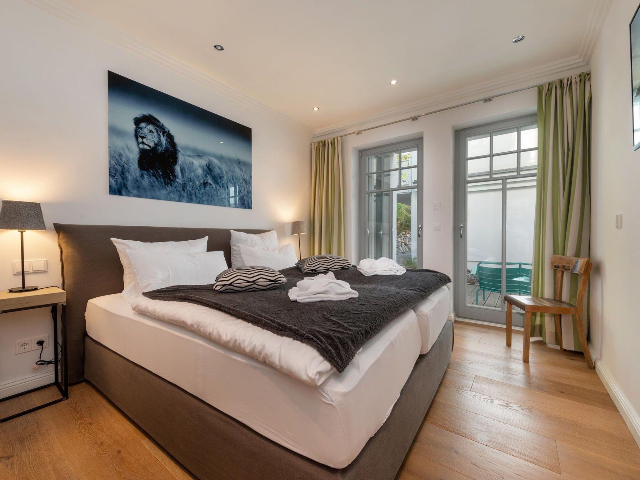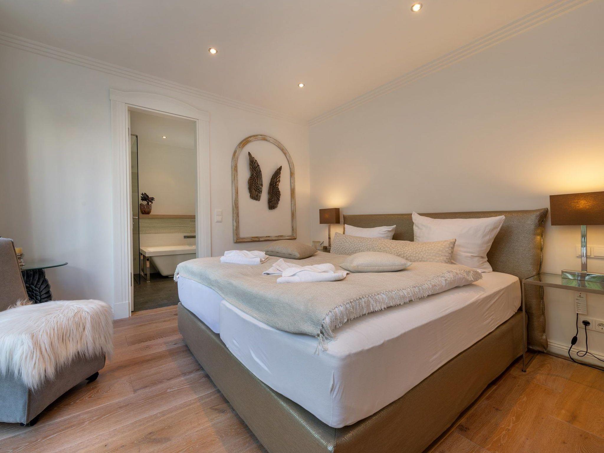 Urlaub high-end in idealer Lage zum Strand! Das Appartement Dolphin erstreckt sich über das erste und zweite Obergeschoss der Villa Theres auf der von der Wilhelmstraße abgewandten Seite und begeistert mit stolzen 164 qm Wohnfläche und einer Ausstattung vom Allerfeinsten.