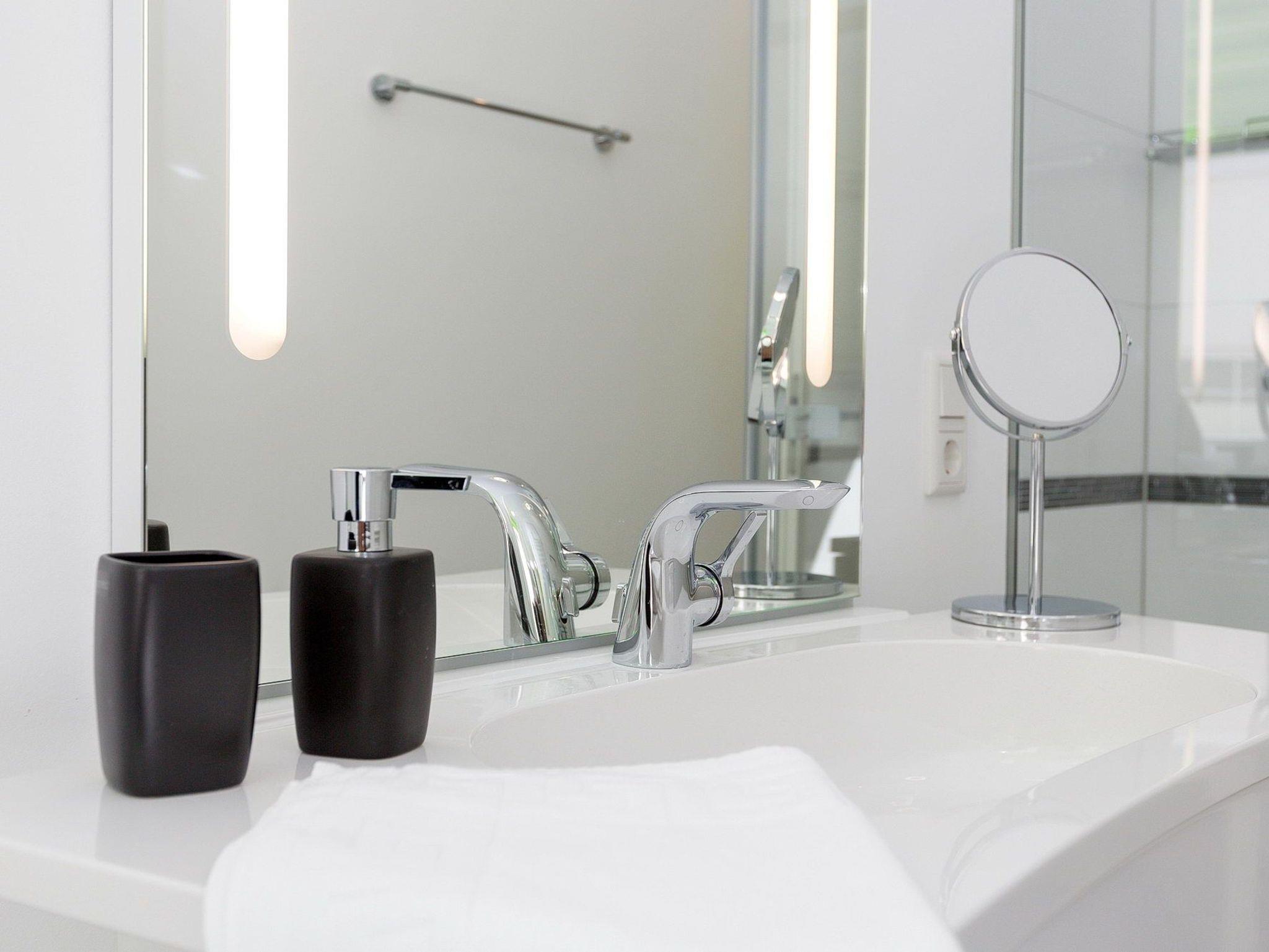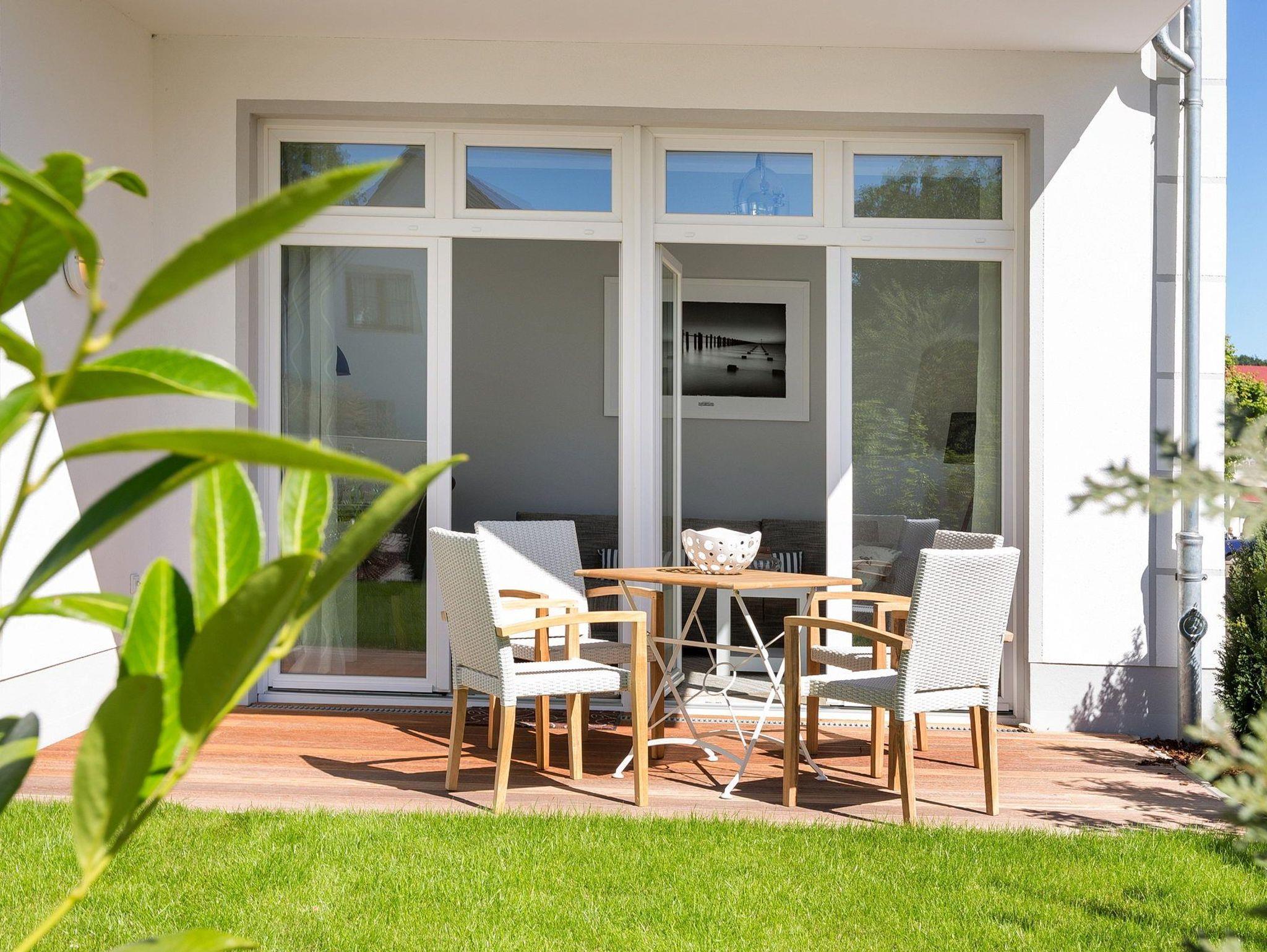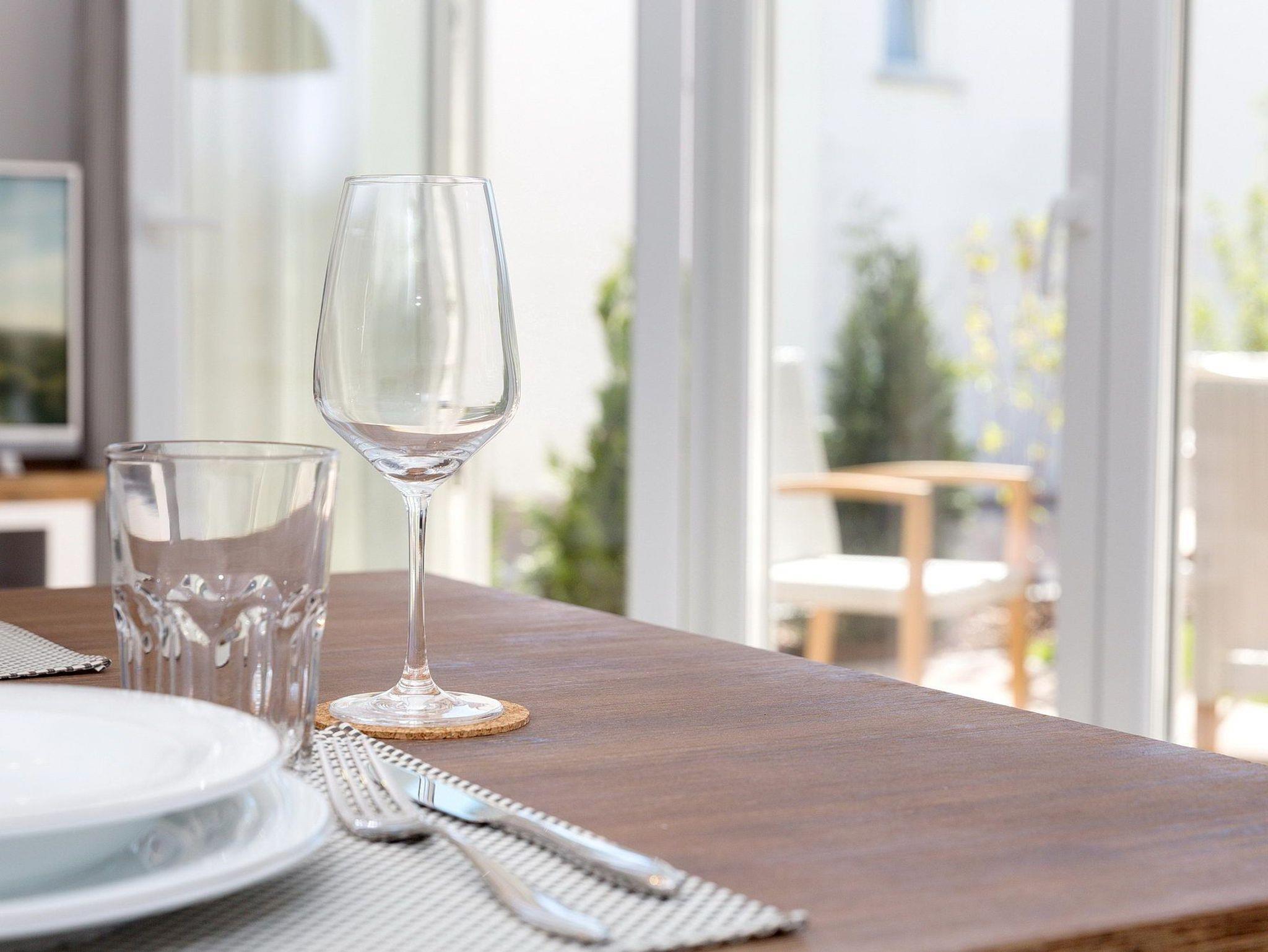 Auf der ruhigen Hofseite zur Abendsonne hin gelegen, bildet der geräumige Wohn- und Kochbereich den Mittelpunkt Ihrer Ferienwohnung. Die elegante Küchenzeile ist mit einem Ceranherd inkl. Backofen, Geschirrspüler, Kühlschrank, Kaffeemaschine, Toaster und Wasserkocher bestens ausgestattet. Auf der Terrasse vor dem Wohnzimmer kann man bei schönem Wetter wunderbar entspannen und bei einem edlen Tröpfchen Wein den Tag ausklingen lassen. Ein großformatiger LED-TV, eine Musikanlage, eine kleine literarische Auswahl und natürlich auch kostenfreies W-LAN sorgen für Unterhaltung und Abwechslung.