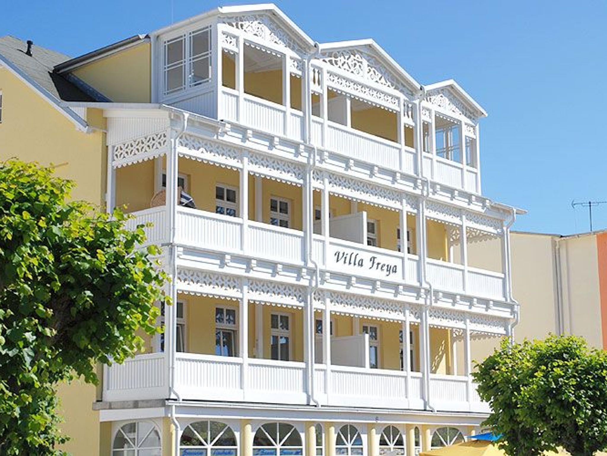 Die wunderschön restaurierte Villa Freya im Stil der Bäderarchitektur ist in der Wilhelmstrasse des Ostseebades Sellin gelegen - ca. 350 m vom Strand und der Seebrücke entfernt. Ihr rund 81 m² großes 3-Raum-Appartement erwartet Sie im dritten Obergeschoss des Hauses und hat gleich zwei möblierte Balkone, einen zur Morgen- und einen zur Abendsonne.