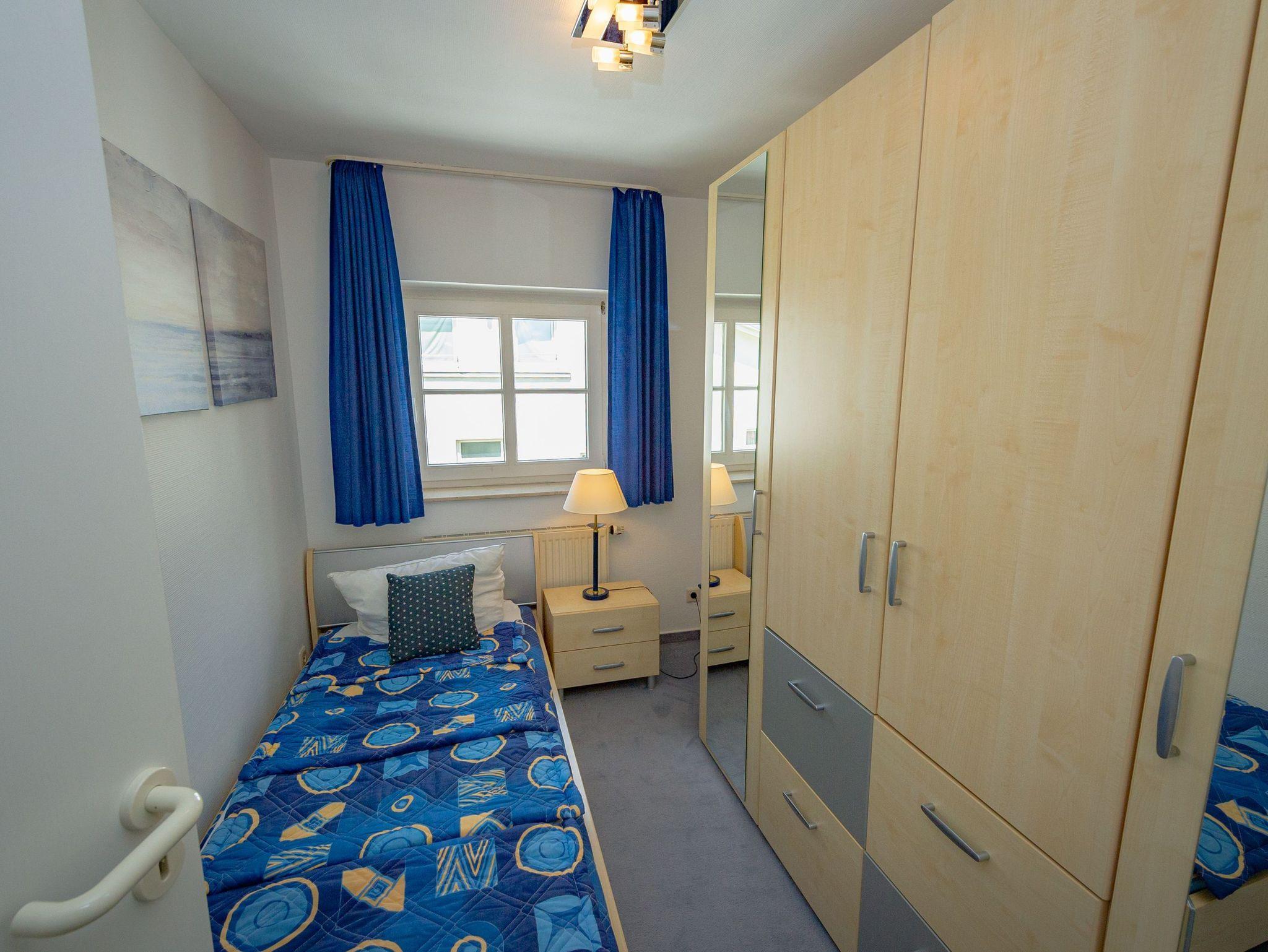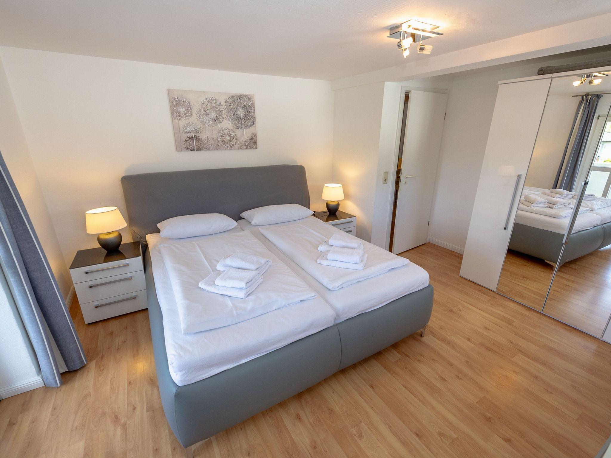 Das große Schlafzimmer Ihres Zuhauses auf Zeit ist mit einem bequemen Doppelbett und einem geräumigen Kleiderschrank für die Urlaubsgarderobe ausgestattet. Wenn Sie lieber getrennt schlafen möchten, steht darüber hinaus noch ein kleines Schlafzimmer mit einem Einzelbett zur Verfügung.