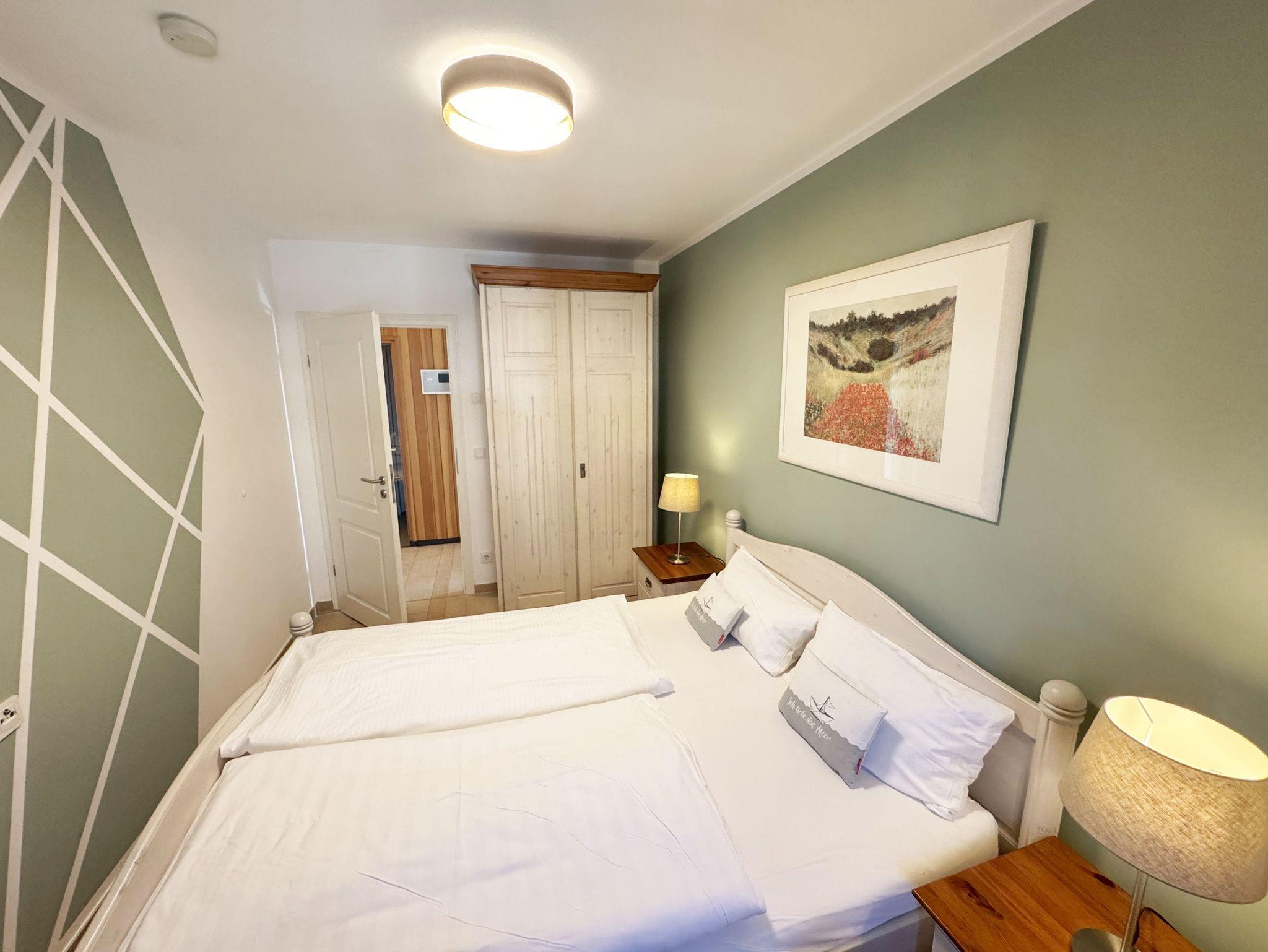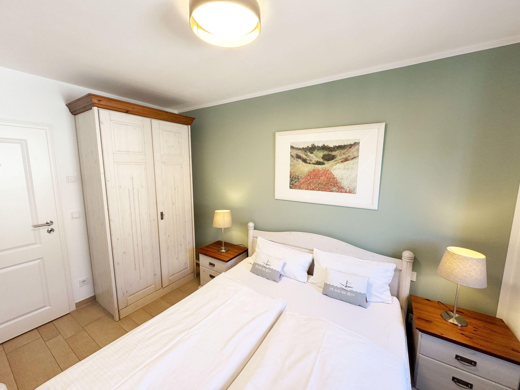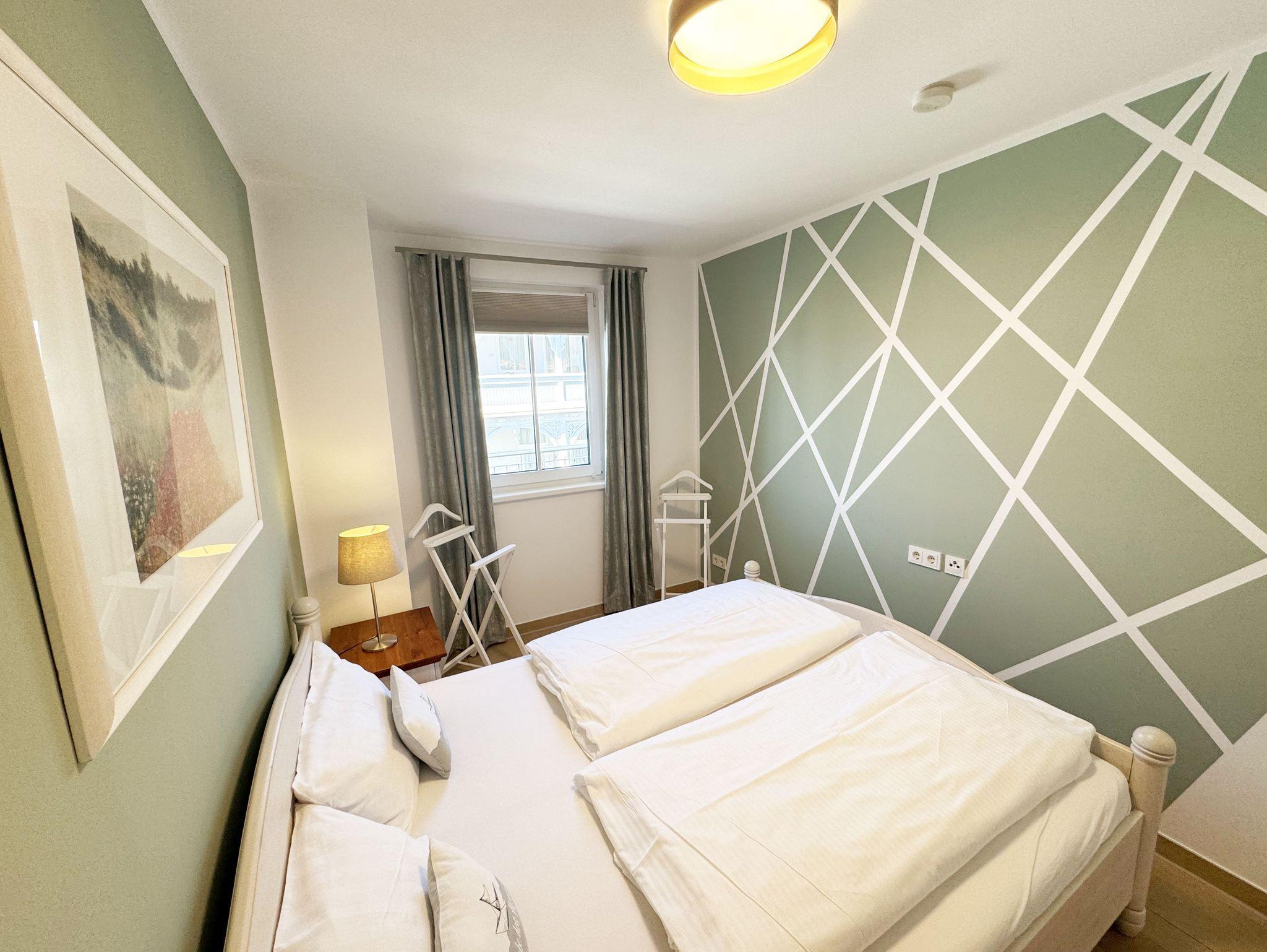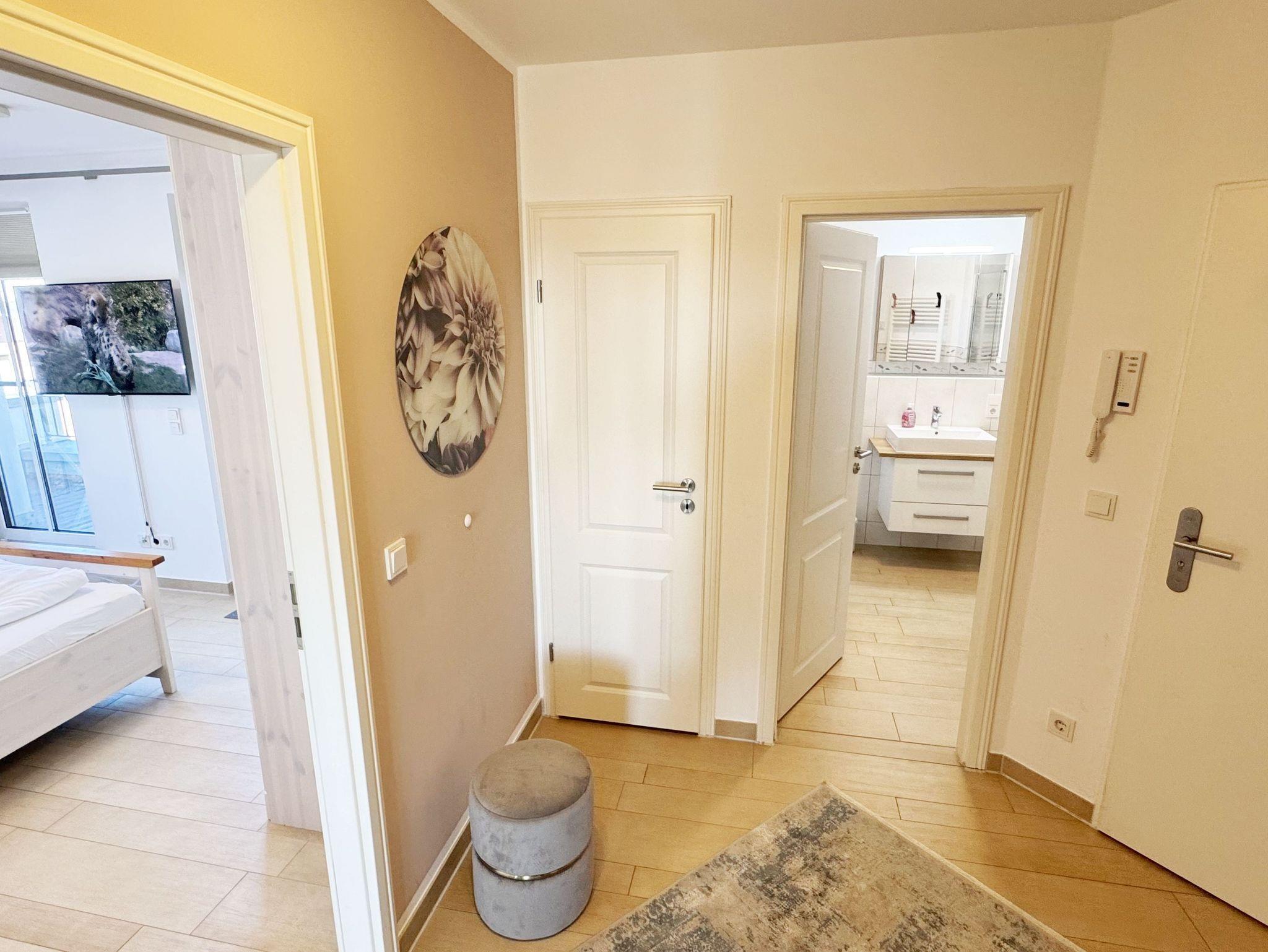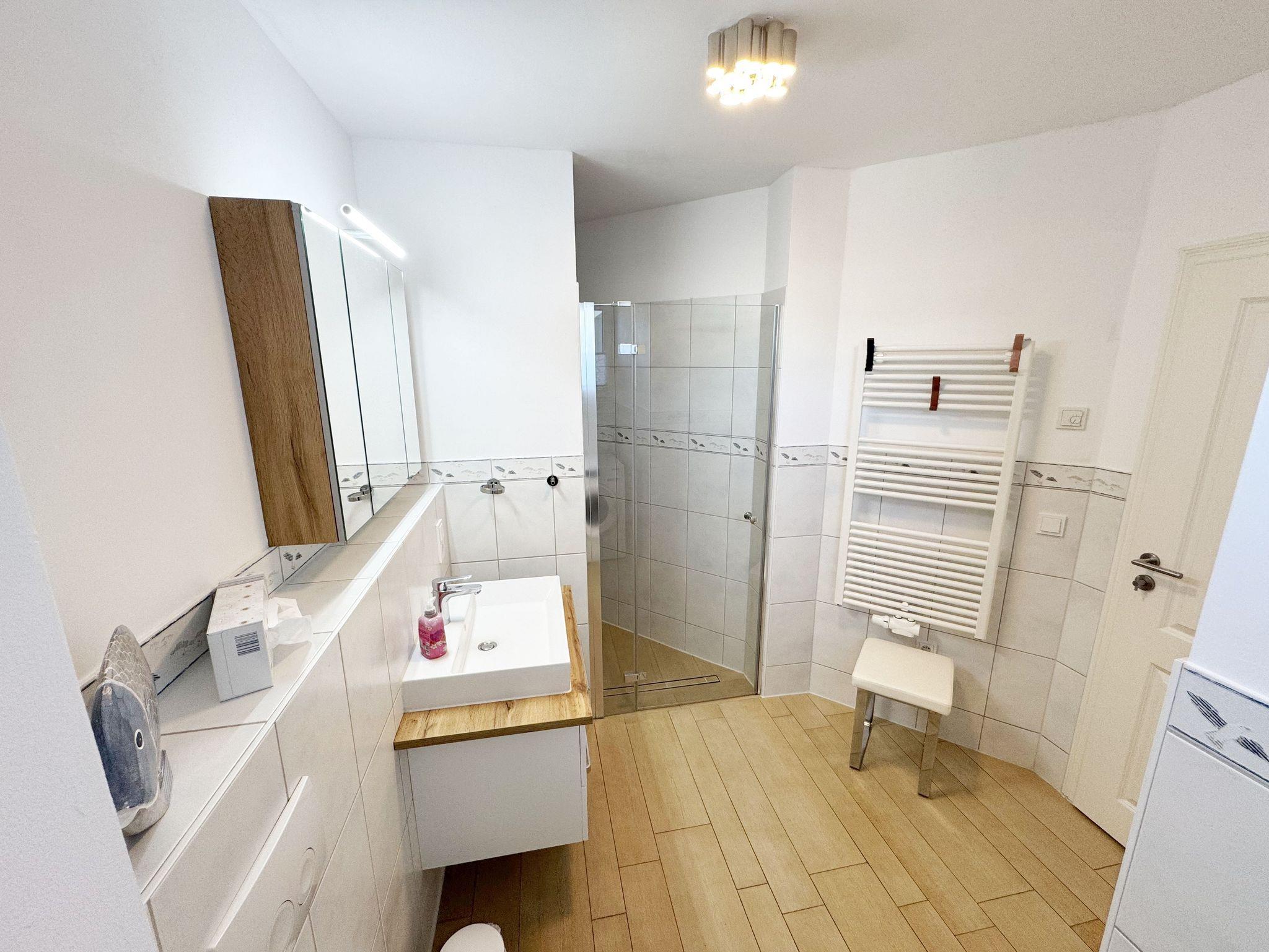 Die 3-Zimmer / Nichtraucherwohnung 12 Baltica befindet sich im Dachgeschoss. Die Wohnfläche beträgt ca. 88 m² und ist für 2 bis 4 Erwachsene + 1 Kleinkind bis 3 Jahre im Kinderreisebett geeignet. Die helle und luftige Einrichtung im weißen Küstenstil gibt Ihnen einen Hauch der schönen Insel Rügen wieder. Eine teils überdachte Dachterrasse und Balkon (Süd/Südwest Ausrichtung) lädt zum Verweilen ein und verfügt über Liegestühle, einen Balkontisch und 4 Balkonstühle mit Auflagen. Die in der Wohnung Baltica vorhandene KLAFS-Sauna mit Unterbankheizsystem sowie individuell einstellbarer Luftfeuchtigkeit und Temperatur (Sanarium) bietet Ihnen pure Erholung auch an den kalten Tagen. Der Flur/Eingangsbereich verfügt über eine Garderobe, Spiegel und Ablage. Der kombinierte Wohn- und Essbereich ist mit einer hochwertigen Holzküchenzeile im neuen Landhausstil ausgestattet. Die Küchenzeile beinhaltet ein Ceranfeld, Backofen, Mikrowelle, Geschirrspüler, Kühlschrank mit Gefrierfach, Sodastreamer, Teemat, Kaffeemaschine, Senseo Kaffee-Pad-Maschine, Toaster, Wasserkocher, Handmixer sowie diverse Küchenutensilien. Der dazugehörige Essbereich umfasst einen Holztisch mit gemütlichen Freischwinger-Stühlen. Ein geschmackvoller Wohnbereich mit Couch, Sessel, einem Couchtisch, Leselampe, Vitrine, einen OLED-Smart-TV, Stereoanlage mit CD, umfangreiche Bibliothek und Spielesammlung runden das Ganze ab. Das 1. Schlafzimmer ist mit einem Doppelbett (2x 0,90 m x 2,00 m), 2 Nachtschränken, Kleiderschrank sowie OLED-Smart-TV ausgestattet. Das 2. Schlafzimmer verfügt ebenfalls über ein Doppelbett (2x 0,80 m x 2,00m), 2 Nachtschränken und Kleiderschrank. Beide Schlafzimmer haben hochwertige, rückenschonende Mehrzonen-Matratzen in zwei unterschiedlichen Härten. Zusätzliche Wabenplissee´s in beiden Schlafzimmern sorgen für eine Verdunklung. Das hochwertige und großzügige Bad ist mit einer ebenerdigen Regendusche, WC, Waschtisch, Waschmaschine, Fön und einen Handtuchwärmeheizkörper ausgestattet. Das Gäste-WC verfügt zusätzlich über einen Waschtisch. Ein Abstellraum gehört mit zur Wohnung. Eine Fußbodenheizung sorgt in allen Räumen für eine angenehme Wärme. Die Südfenster sind mit elektrischen Rollläden versehen und dienen gleichzeitig zur Verdunklung. Insektenschutzgitter befinden sich in allen Räumlichkeiten. Auch im Urlaub brauchen Sie in der Wohnung nicht auf einen Internetanschluss (WLAN) verzichten. Dieser ist für Sie inklusive. Ein Einkauftrolli, ein Bügelbrett + Bügeleisen und ein Wäscheständer befinden sich in der Wohnung. Der Parkplatz (Nr.12) befindet sich in der Tiefgarage und ist für Pkw's und Kombis (bis Höhe 1,90m) geeignet. Ihre Fahrräder oder auch anderes Sport-Equipment können Sie im abschließbaren wohnungseigenen Kellerraum unterbringen, wo Sie auch einen faltbaren Bollerwagen vorfinden. Max. 2 kleine Haustiere können auf Anfrage gegen eine Gebühr mitgebracht werden. Die Erstausstattung eines Wäschepaketes (komplette Bettwäsche, 1 Duschhandtuch, 1 kleines Handtuch) können Sie bis 14 Tage vor Anreise gegen einen Aufpreis dazu buchen oder durch eigenes Ergänzen. Ab 2 gebuchten Paketen erhalten Sie einmalig 1 Geschirrhandtuch und 1 Duschvorleger hinzu.