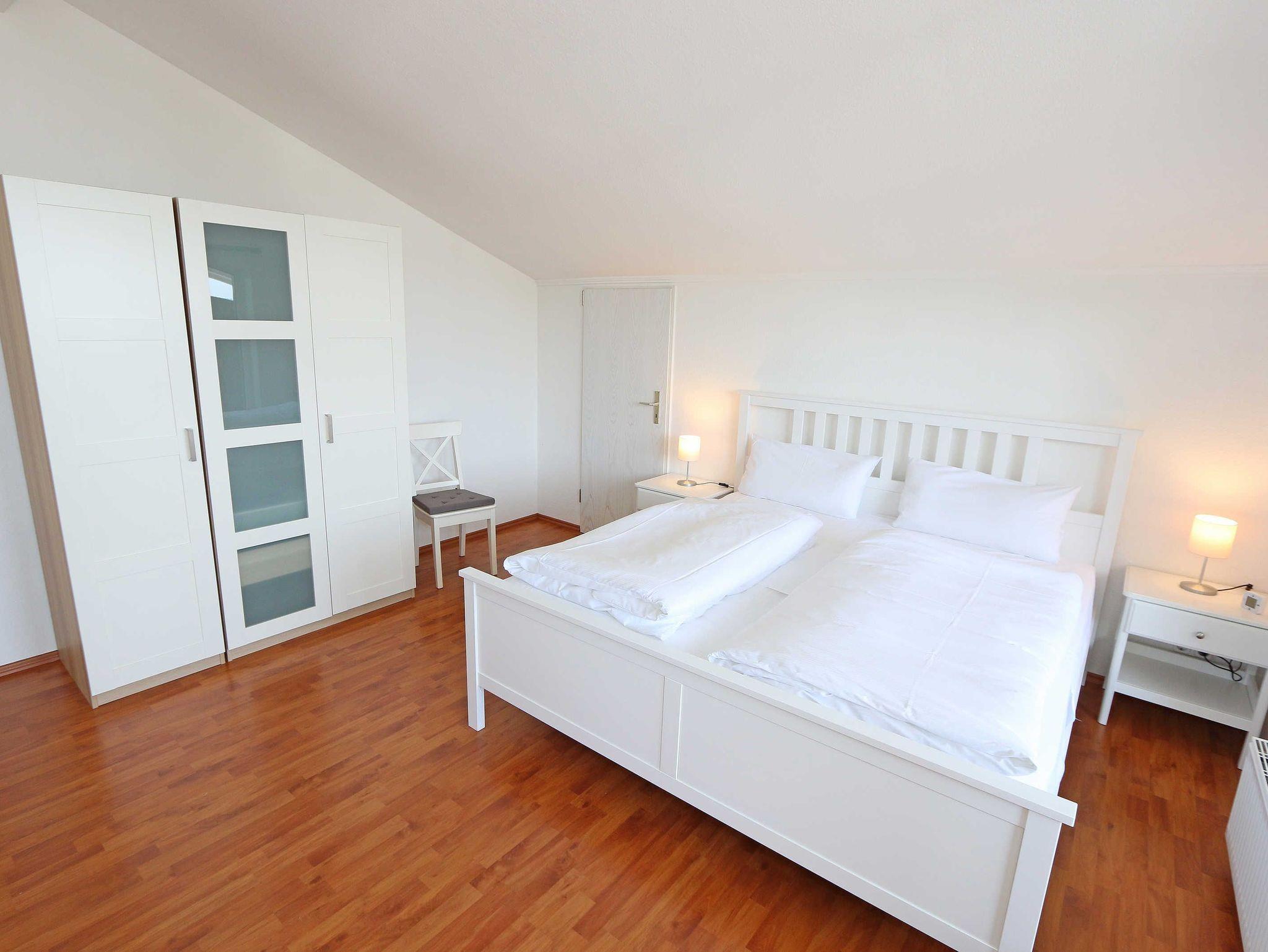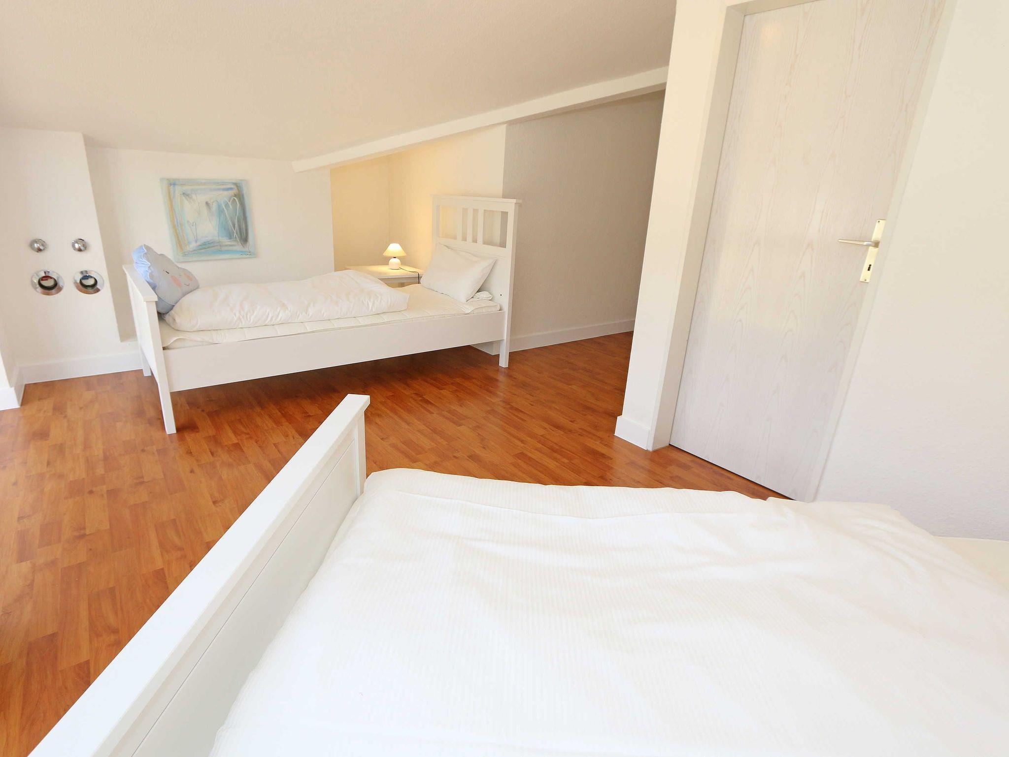 Herzlich willkommen in der 3-Zimmer-Ferienwohnung mit ca.102qm welche Ihnen Platz für max. 4 Erwachsene + 1 Kleinkind bis 3 Jahre im Kinderreisebett bietet. Die Nichtraucherwohnung wurde geschmackvoll und harmonisch im Beachhouse-Stil ausgestattet, so dass Sie hier einen entspannten und komfortablen Urlaub verbringen können. Schon morgens können Sie Ihr Frühstück auf dem großen überdachten und möblierten Balkon mit Strandkorb einnehmen und dabei den herrlichen Blick von der 3. Etage auf den Selliner See genießen. Der Wohnbereich bietet Ihnen eine gemütliche, hellgraue Couchecke mit Couchtisch, Leselampe und einen bequemen Lesesessel, welcher einfach zum Faulenzen einlädt! Ein weißes Sideboard, eine Glasvitrine im maritimen Stil sowie ein großer Esstisch runden zusammen mit einer Mini-Stereo-Anlage, einem Flachbild-TV, DAB-Radio, einen Blu-Ray-Player und einen inklusiven Internetzugang (WLAN) den Wohnbereich ab. Die helle und separate Einbauküche ist selbstverständlich mit einem Geschirrspüler, Backofen, 4 Zonen-Induktionsfeld, Abzugshaube, Kühlschrank mit Gefrierschrank, Mikrowelle, Wasserkocher, Toaster, Kaffeemaschine und diversen Kochutensilien ausgestattet. Neben dem 38 m² großen Wohn- und Esszimmer gibt es noch zwei Schlafzimmer. Ein Schlafzimmer ist mit einem Doppelbett (1,80m x 2,00m), 2 Beistelltischen und einem begehbaren Kleiderschrank ausgestattet. Das kleinere Schlafzimmer verfügt über 2 Einzelbetten (0,90m x 2,00m), verstellbare Lattenroste, Nachttischablagen und einen begehbaren Kleiderschrank und einen kleinen Tisch. Insektenschutzgitter befinden sich in den Schlafzimmern sowie an der Balkontür. Das moderne Tageslichtbad ist mit einer Dusche, WC, Waschtisch, Fön und einer Badewanne ausgestattet. So können Sie auch mit einem herrlichen Schaumbad den Tag ausklingen lassen. Ein wohnungseigener Abstellraum mit Reinigungsutensilien gehört dazu. Im Keller des Hauses können Sie eine gemeinschaftliche Waschmaschine und einen Trockner gegen Gebühr nutzen. Eine begrenzte Abstellmöglichkeit für Ihre Fahrräder ist am Haus gegeben. Ein überdachter PKW-Stellplatz (Nr.17) steht Ihnen inklusive zur Verfügung. Haustiere sind nicht erlaubt. Die Erstausstattung eines Wäschepaketes (komplette Bettwäsche, 1 Duschhandtuch, 1 kleines Handtuch) können Sie bis 14 Tage vor Anreise gegen einen Aufpreis dazu buchen oder durch eigene ergänzen. Ab 2 gebuchten Paketen erhalten Sie einmalig 1 Geschirrhandtuch und 1 Duschvorleger hinzu.