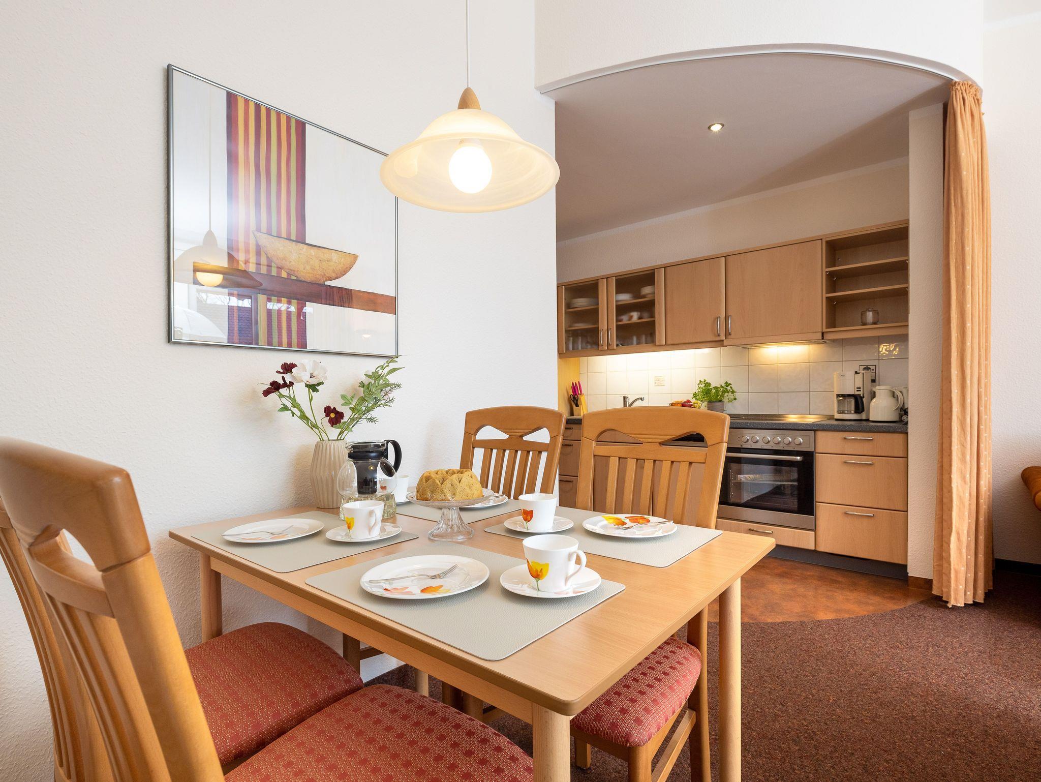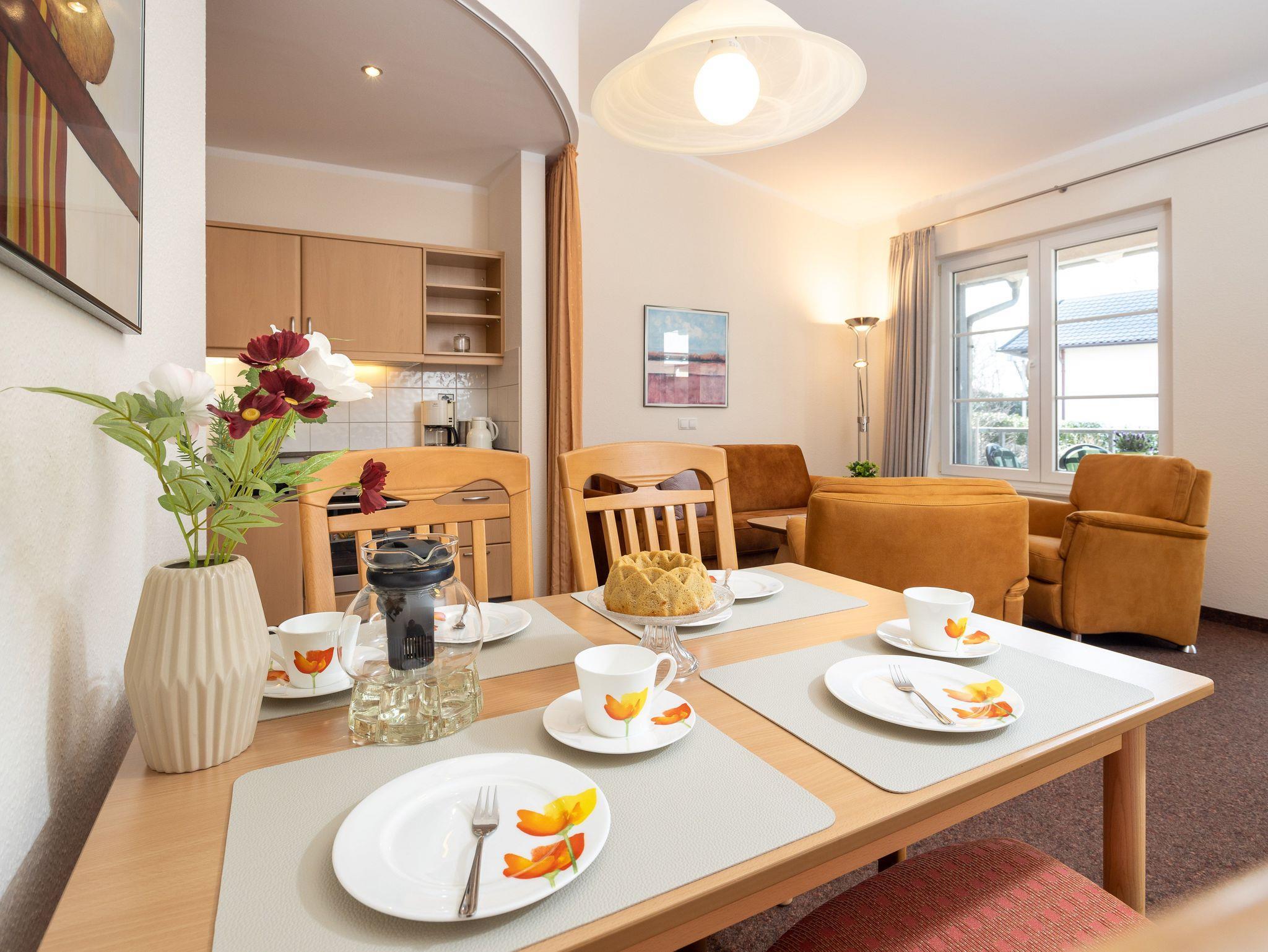 Die freundlich eingerichtete Wohnung 14 in der Ferienanlage Margaretha ist ca. 58 m² groß und für bis zu 4 Personen ausgelegt.