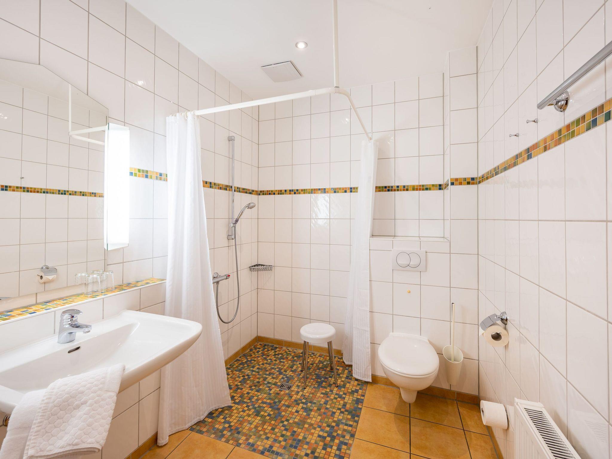 Die behindertenfreundliche Nichtraucherwohnung befindet sich im Hinterhaus der Ferienanlage Margaretha. Zur Anlage gehört pro Wohnung ein Parkplatz auf dem Hof, sowie ein gemeinschaftlicher Fahrradraum.