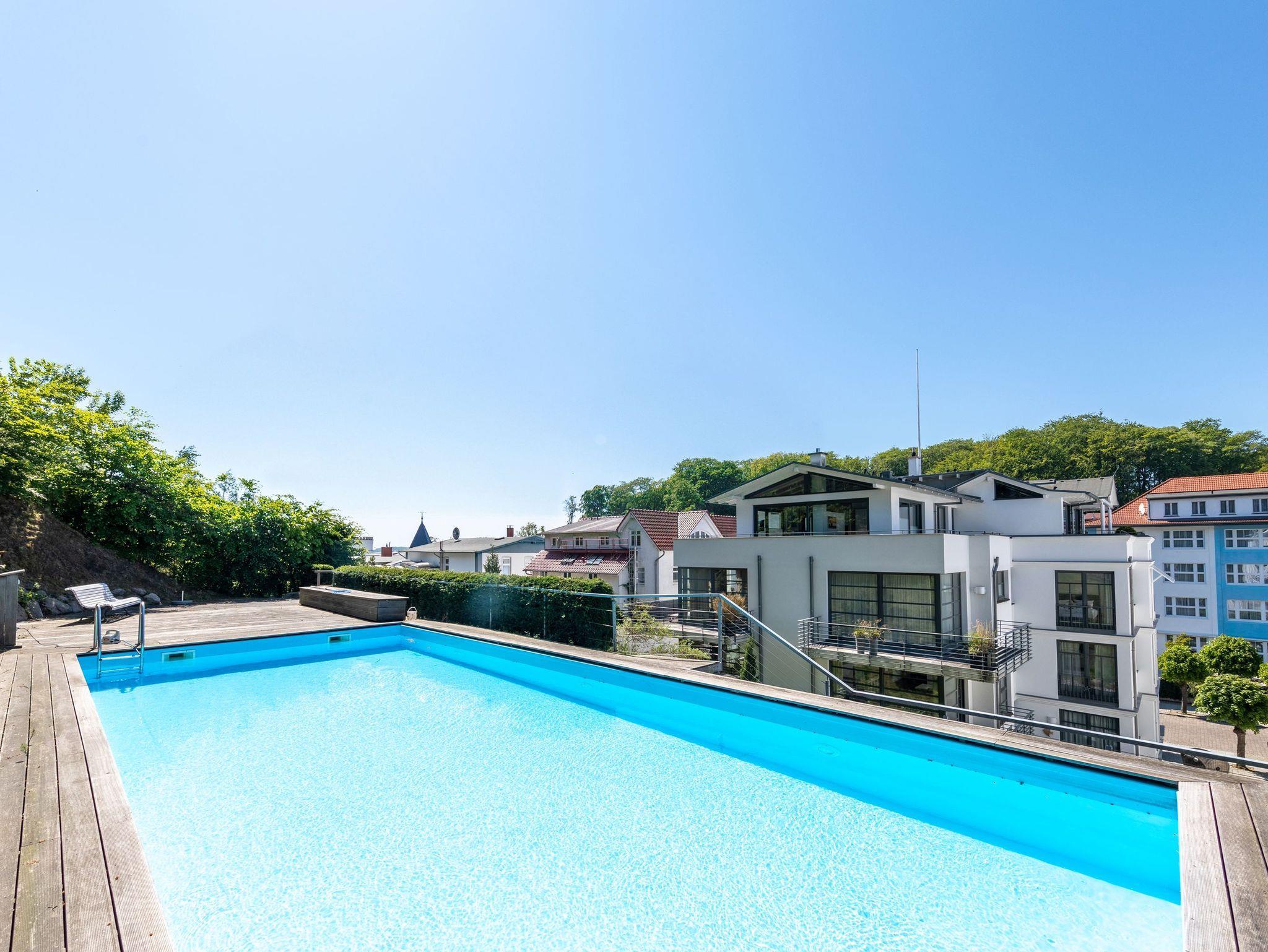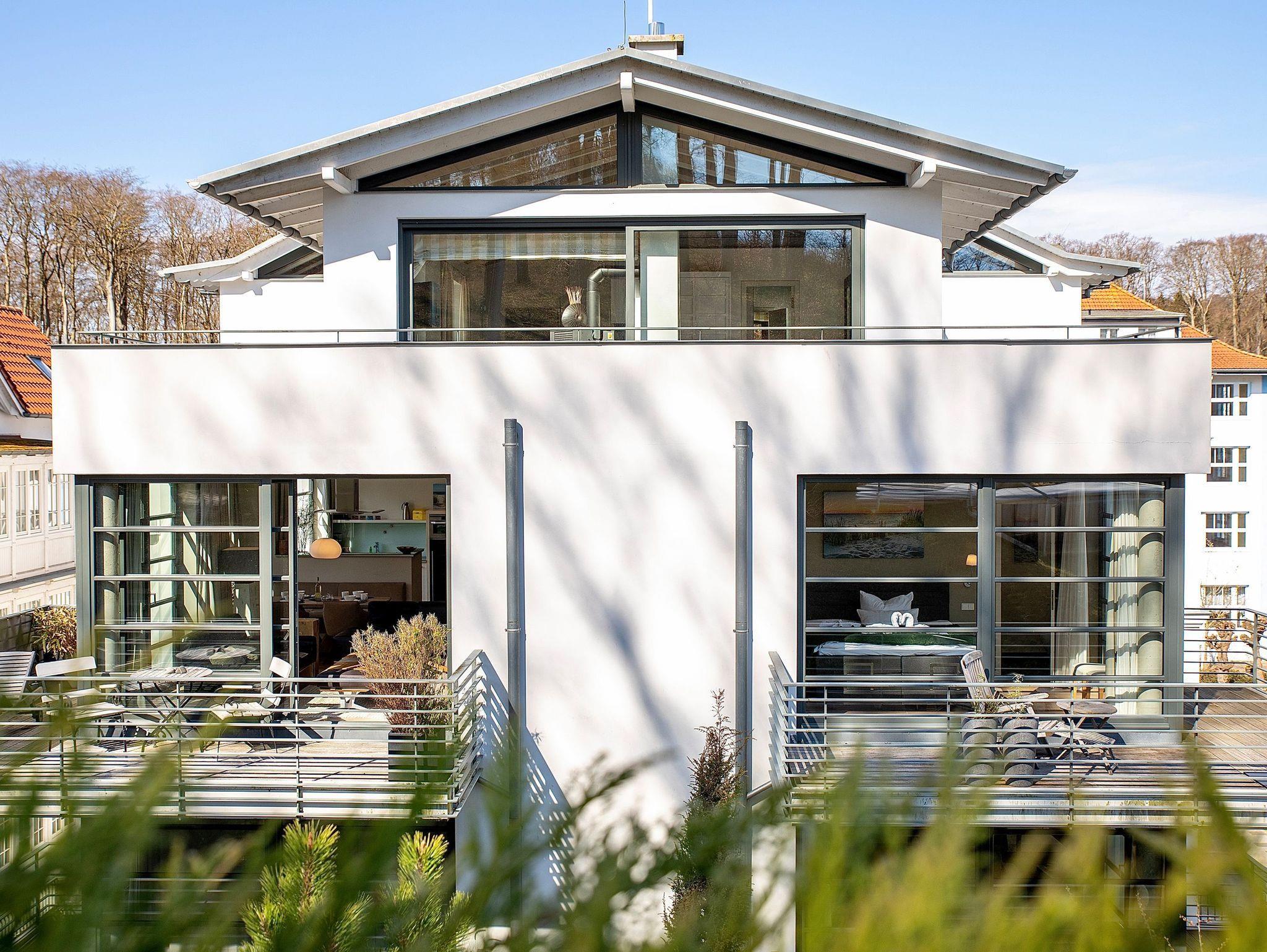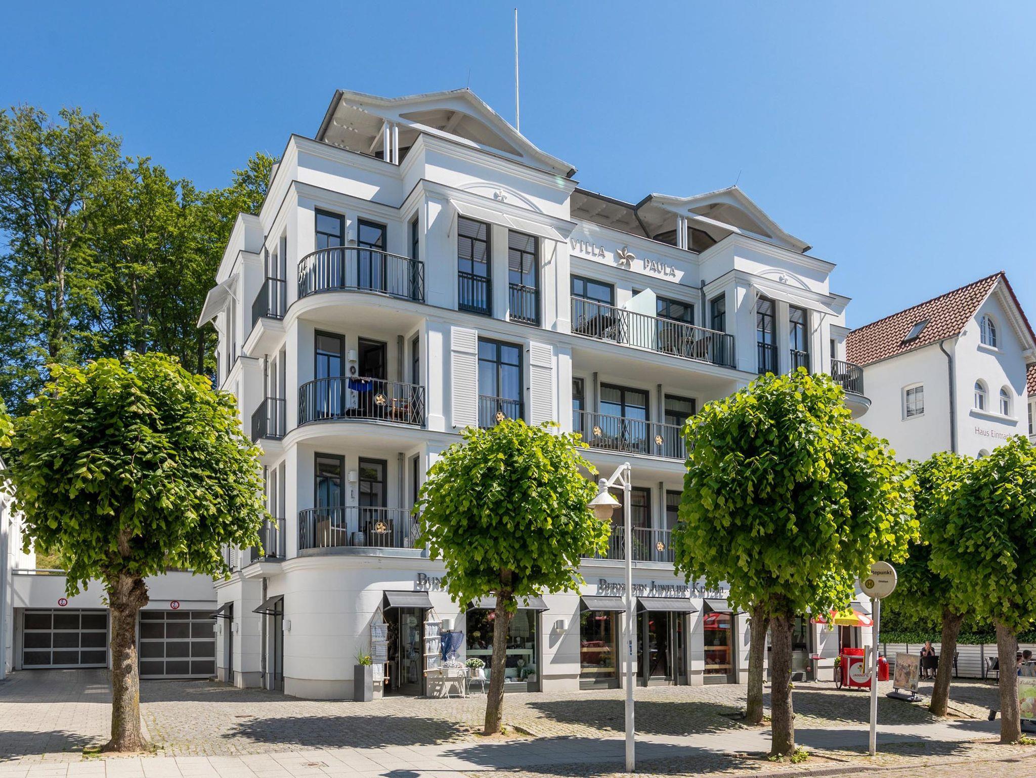 Dieses wunderschöne Domizil wurde 2023 mit hochwertigsten Möbeln neu eingerichtet. Die Wohnung Strandperle der Villa Paula vereint modernen Luxus mit behaglichem Wohngefühl nahezu perfekt. Schon beim ersten Betreten der Wohnung im 3.OG werden Sie begeistert sein. Der lichtdurchflutete Wohnbereich lässt Sie durch seine große Glasfronten herrlich in die Natur und den Garten der Villa Paula schauen. Eine hochwertige Einbauküche mit schönem Essplatz lädt zum gemeinsamen kochen und verweilen ein. Die beiden Schlafzimmer verfügen je über ein Bad en Suite und über sehr hochwertige Betten. Hier lässt sich herrlich träumen. Als besonderes Highlight hat der Eigentümer eine kleine Wärmekabine in der Wohnung installieren lassen. Hier können Sie sich an kalten Tagen durch die wohltuende Wärme der Infrarotstrahlen durchwärmen lassen. Die Villa Paula befindet sich am oberen Ende der berühmten Wilhelmstraße. 100 Meter von der Seebrücke Sellin und dem feinsandigen Ostseestrand entfernt, überzeugt das Haus außerdem mit Tiefgarage, Außenpool und kostenfreier Nutzung von Waschmaschine und Trockner.