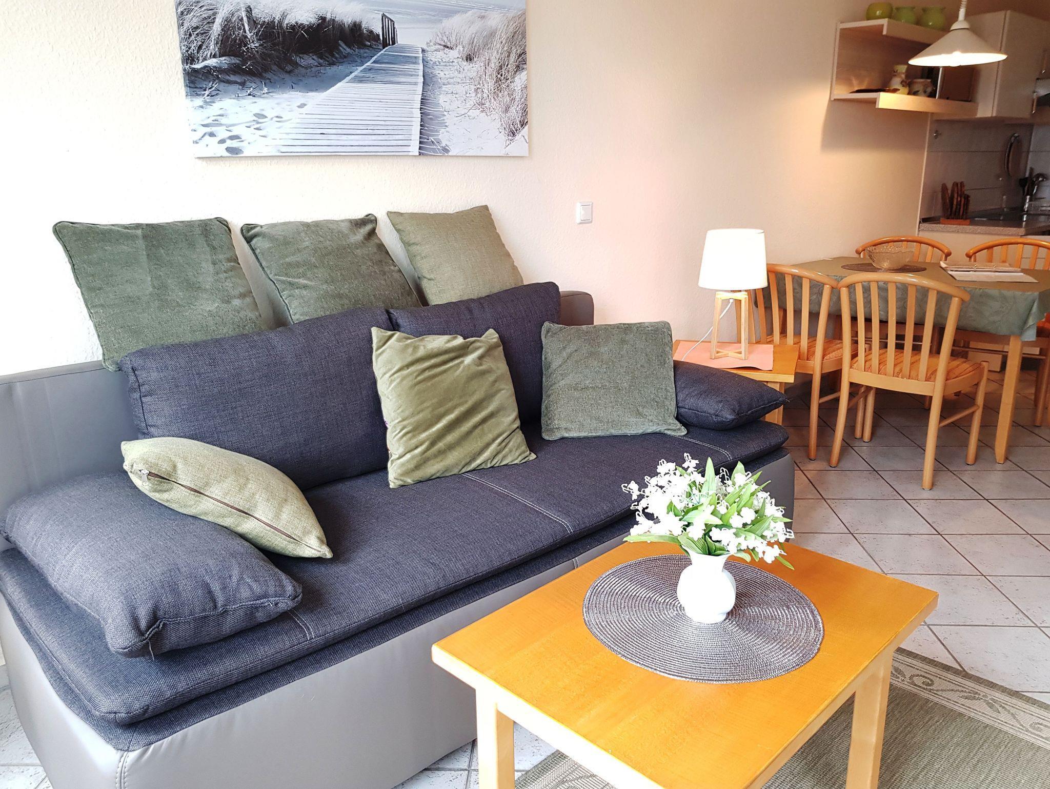 Das helle sonnige Appartementhaus Baabe mit der Nichtraucherwohnung 421 befindet sich zentral in der Anlage Seepark Sellin. Nur 50 m von Ihnen entfernt ist das Erlebnisbad Ahoi zu erreichen, in der Kinder die Wasserspiele mit Außenbecken und Erwachsene die vielfältigen Saunen bei angenehmen Temperaturen genießen können. Ebenfalls auf dem Gelände ist ein Kinderspielplatz und ein 18 Loch Minigolfplatz.In den Ladenpassagen des Seeparks Sellin finden Sie Restaurants, ein Eiscafé, einen Fahrradverleih, eine Drogerie, Souvenirs und vieles mehr. Gegenüber ist der große EDEKA-Neukauf 1400m² mit Bäckerei und Post/Postbank, Lotto. Die Haltestelle des Rasenden Roland, die bekannte Schmalspurbahn der Insel, erreichen Sie in nur vier Gehminuten, so auch die Haltestelle des Rügener Personennahverkehr und natürlich den herrlich breiten Sandstrand. Einen Fahrradverleih, die Minigolfanlage des Ortes und einen Waschsalon befinden sich einen Katzensprung vom Haus entfernt.
