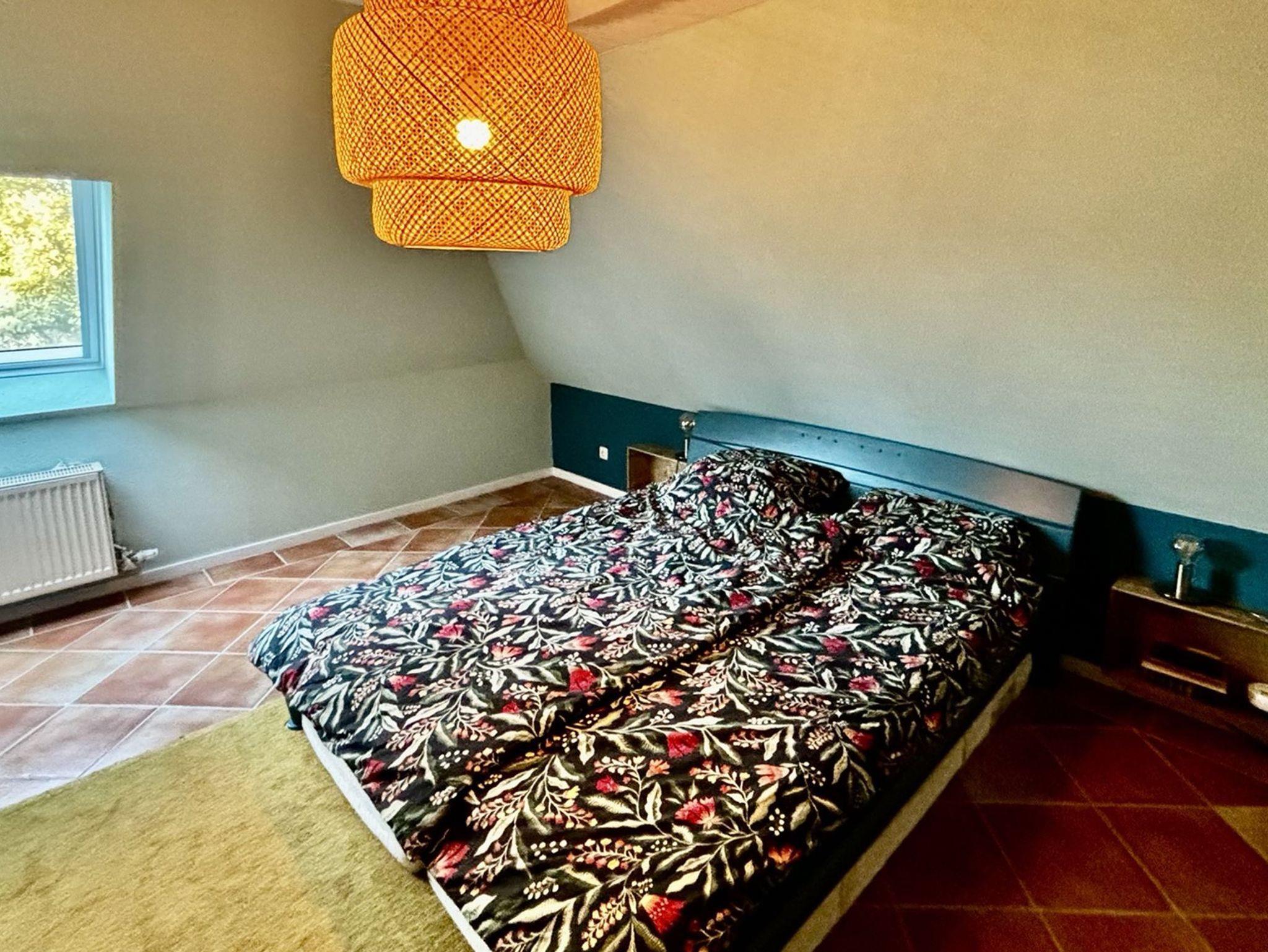 Eine offene Wendeltreppe führt zu dem großen Schlafzimmer. Dieses verfügt über ein Doppelbett mit Nachtischen sowie einen großen Kleiderschrank.