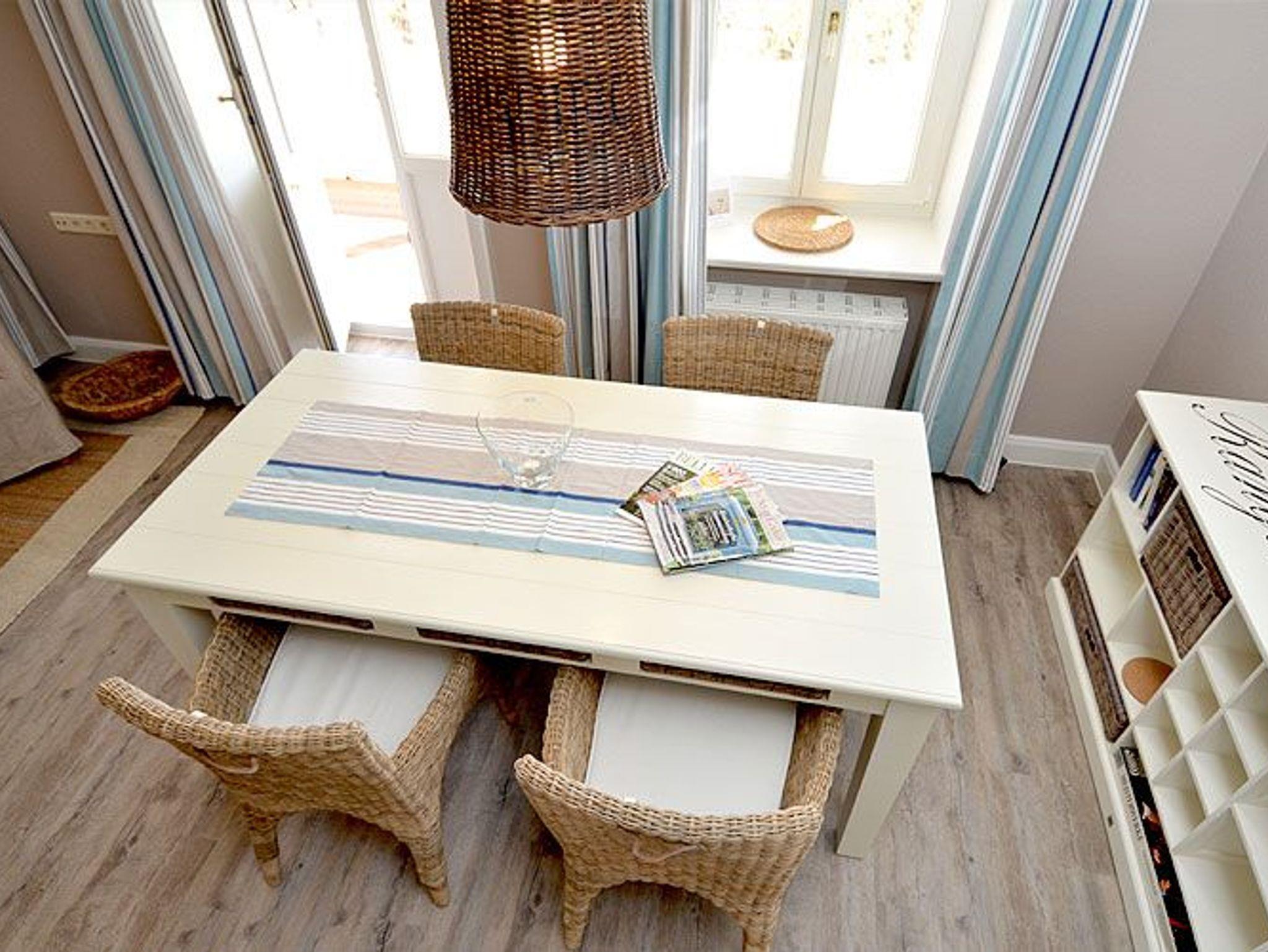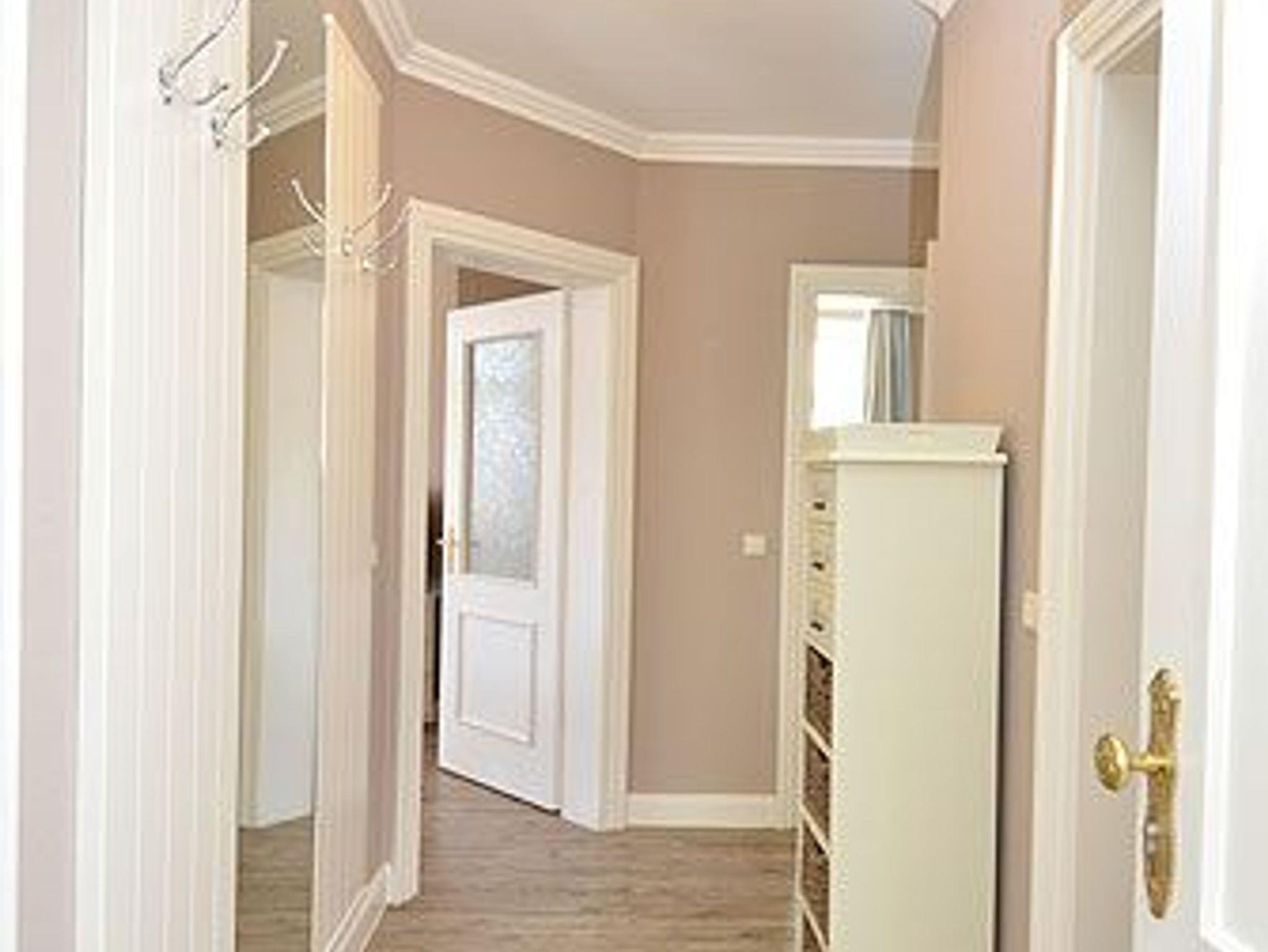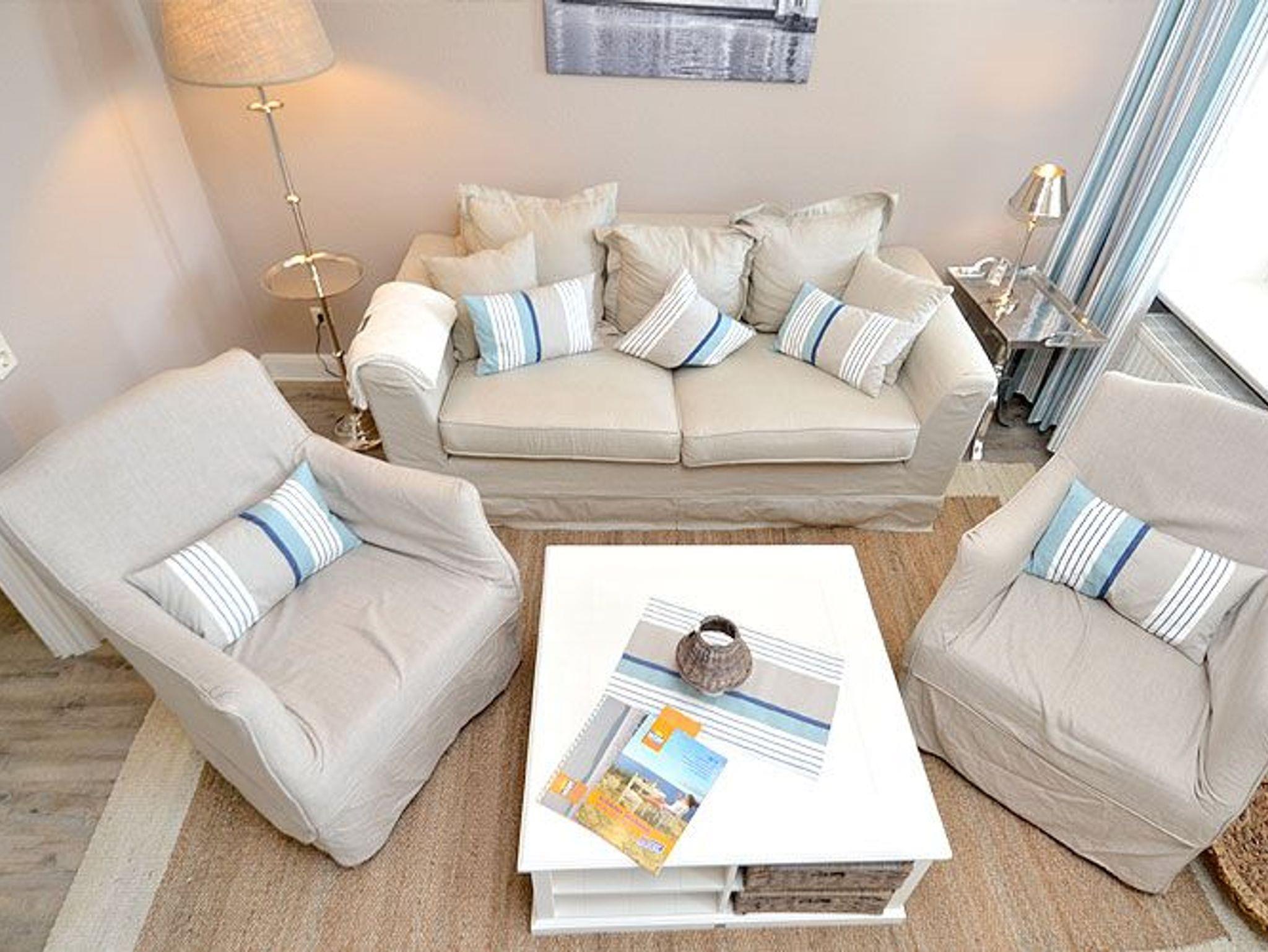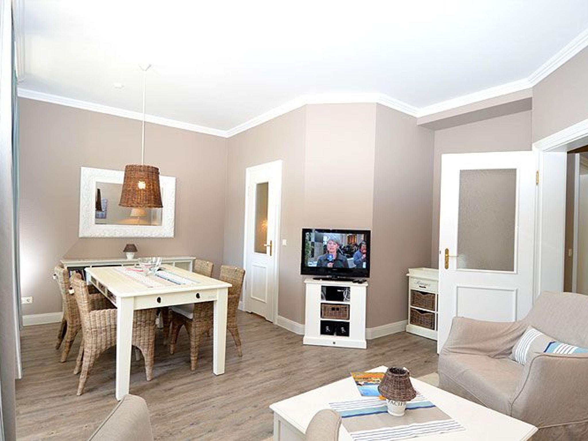 Dieses ca. 70 m² große und sehr stilvoll eingerichtete 3-Raum-Appartement erwartet Sie im 1. Obergeschoss und hat zusätzlich einen ca. 20 m² möblierten Holzbalkon im Bäderstil zur Morgensonne mit Blick auf die Wilhelmstrasse. Dieser Balkon mit Teakholz-Möblierung ist sowohl vom Wohnzimmer als auch vom Schlafzimmer aus zu betreten. Die wunderschönen Landhausmöbel, ausgesuchte Stoffe und die warmen Erdtöne schaffen mit den leicht maritimen Akzenten ein ganz einzigartiges Wohlfühlambiente.