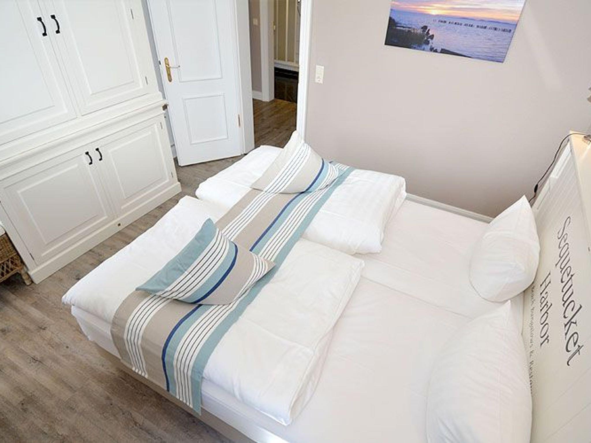 Die beiden gemütlichen Schlafzimmer wirken durch die 5 Star-Deluxe-Boxspring-Doppelbetten (1,80 x 2,00 m) mit Komforthöhe und dem ausreichenden Stauraum für Ihre Garderobe ganz besonders einladend.