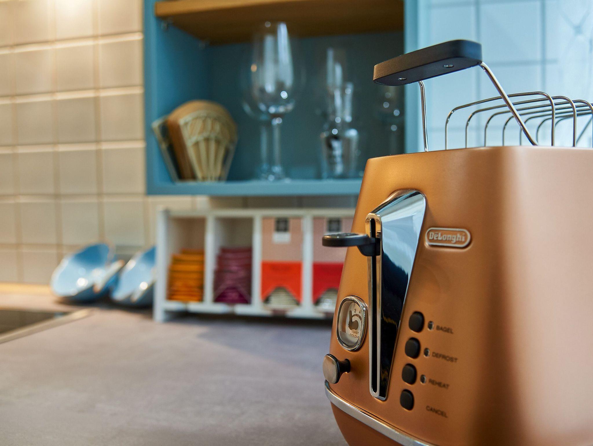 In der Küchenzeile finden Sie u.a. eine Spülmaschine, einen Kühlschrank mit Gefrierfach, ein 4-Platten-Ceranfeld, einen Backofen und diverse Kleingeräte vor, so dass Sie sich nach Herzenslust selbst bekochen können. Bis zum nächsten Einkaufsmarkt mit Bäcker sind es nur ca. 4 Gehminuten.