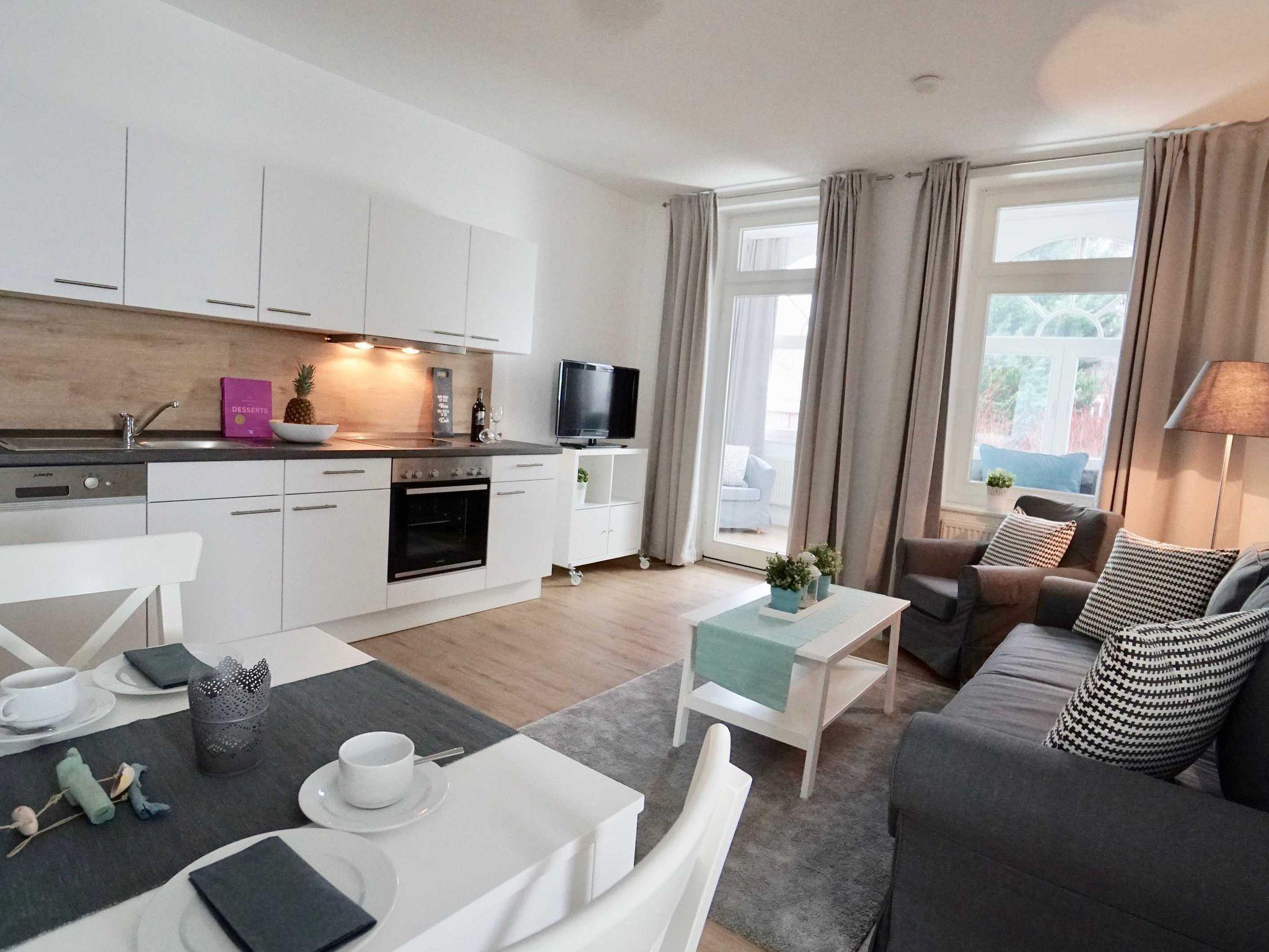 Unser Appartementhaus ist eine, im Stil der Bäderarchitektur sanierte, wunderschöne alte Villa. Sie befindet sich ruhig gelegen an der Hauptpromenade des Ostseebads Sellin, der historischen, zur Seebrücke und zum feinsandigen Badestrand führenden Wilhelmstraße. Das Ostseebad selbst verfügt über mehrer Strände und ist umgeben von Buchenwäldern, Hügellandschaften, alten Fischerdörfern und liegt im UNESCO Biosphärenreservat Süd-Ost-Rügen. In unmittelbarer Nähe befindet sich der Kurpark von Sellin. Wir bieten Ihnen hier mit drei verschiedenen Appartementgrößen liebevoll und modern ausgestatte Ferienunterkünfte. Unsere Gäste können einen WLAN-Internetanschluss im ganzen Haus kostenlos nutzen. Pkw-Stellplätze und Abstellmöglichkeiten für Fahrräder sind direkt am Haus.