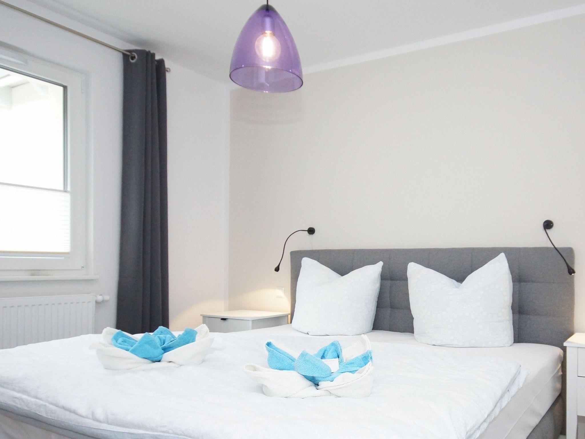 Neben einem Tageslicht-Badezimmer mit flacher Dusche, steht Ihnen auch ein zusätzliches Gäste-WC zur Verfügung. Die Ferienwohnung verfügt über 2 ruhige Schlafzimmer. In beiden finden Sie ein bequemes Boxspring-Doppelbett (180 x 200 cm).