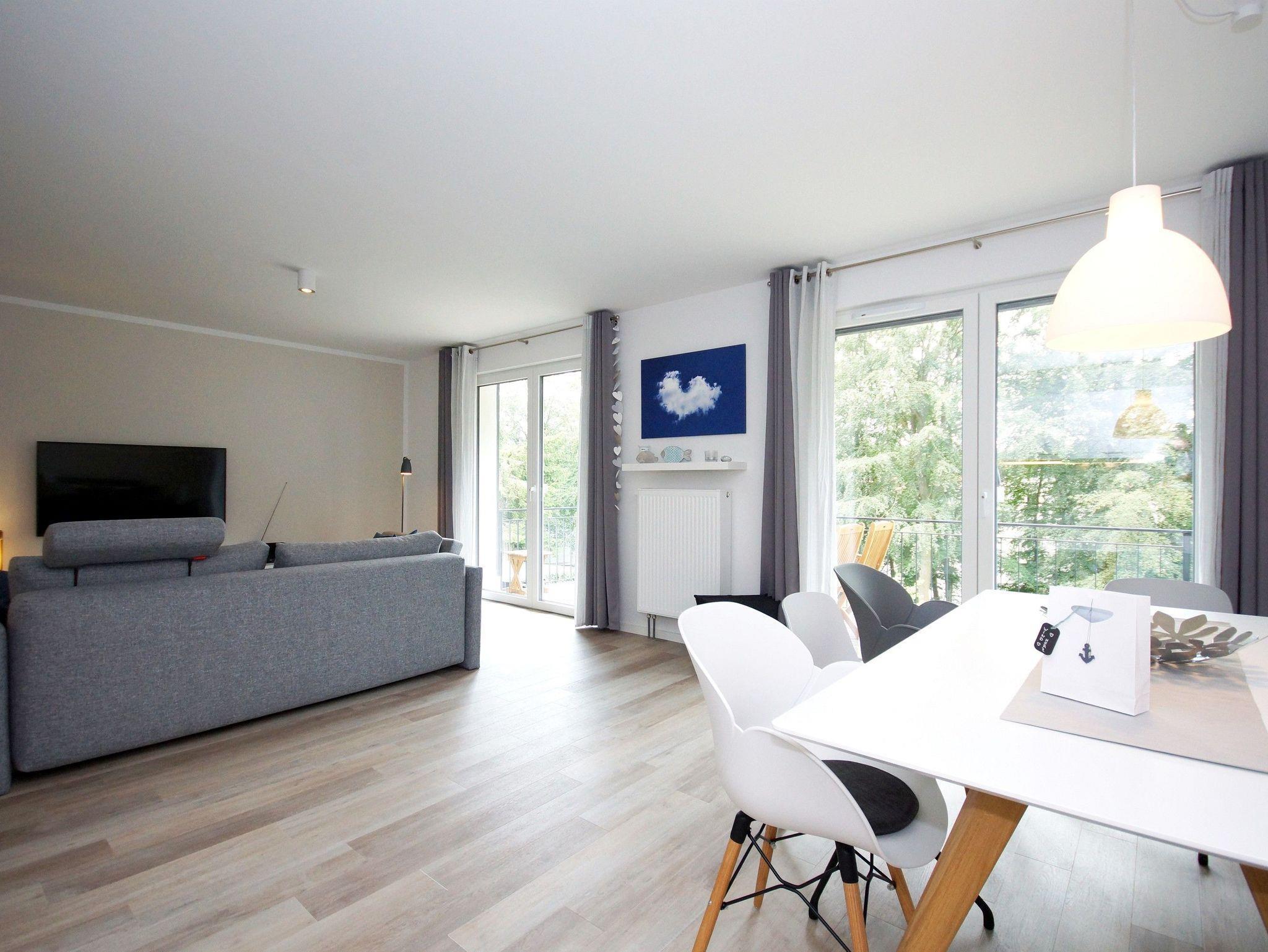 Im 1. Obergeschoss des Hauses Waldidyll empfängt Sie die Ferienwohnung Windherz in skandinavischem Design. Lichtdurchflutete Räume laden zum Entspannen ein.