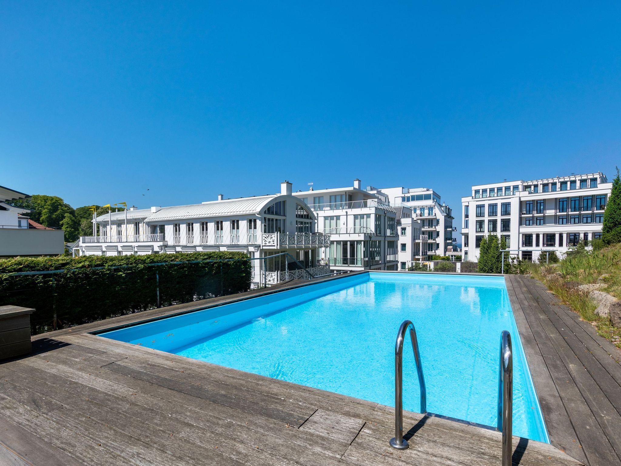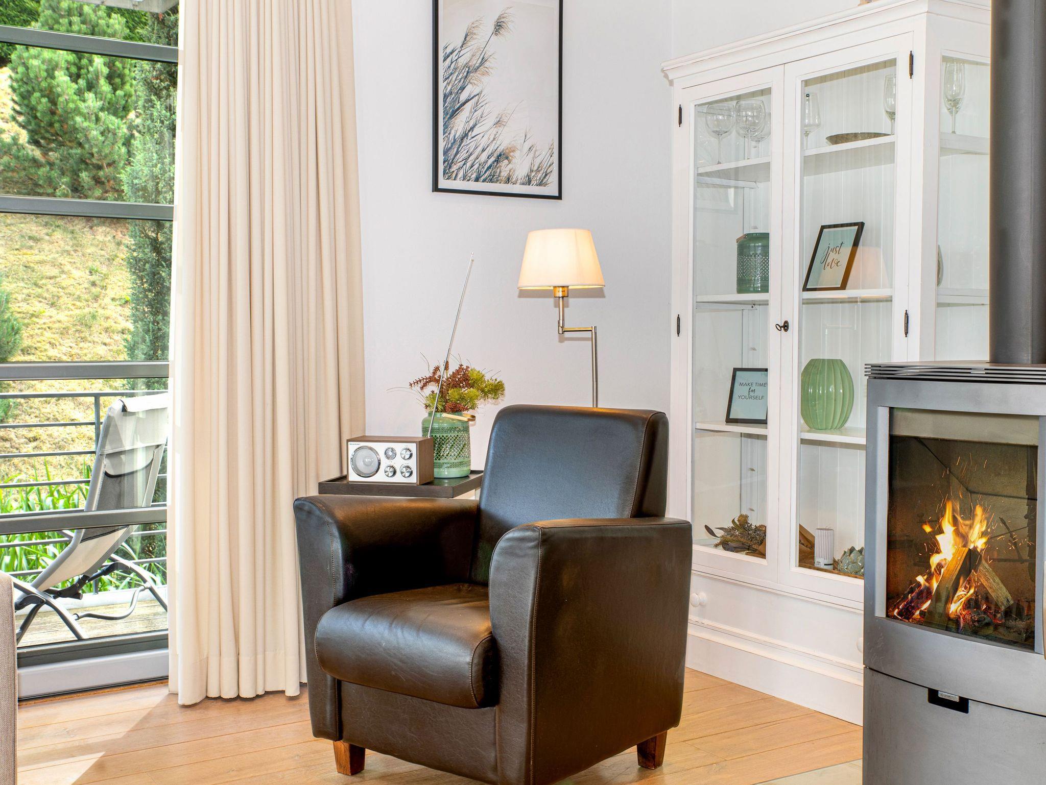 Der großzügige Wohnbereich der Wohnung ist durch viele bodentiefe Fenster lichtdurchflutet. Das besondere Highlight dieser Ferienwohnung ist die Möglichkeit, sowohl von der Terrasse als auch dem großen Balkon im Obergeschoss die herrliche Ruhe und den Blick in den eigens angelegten Garten des Hauses zu genießen. In den Sommermonaten lässt sich außerdem herrlich im Pool entspannen.