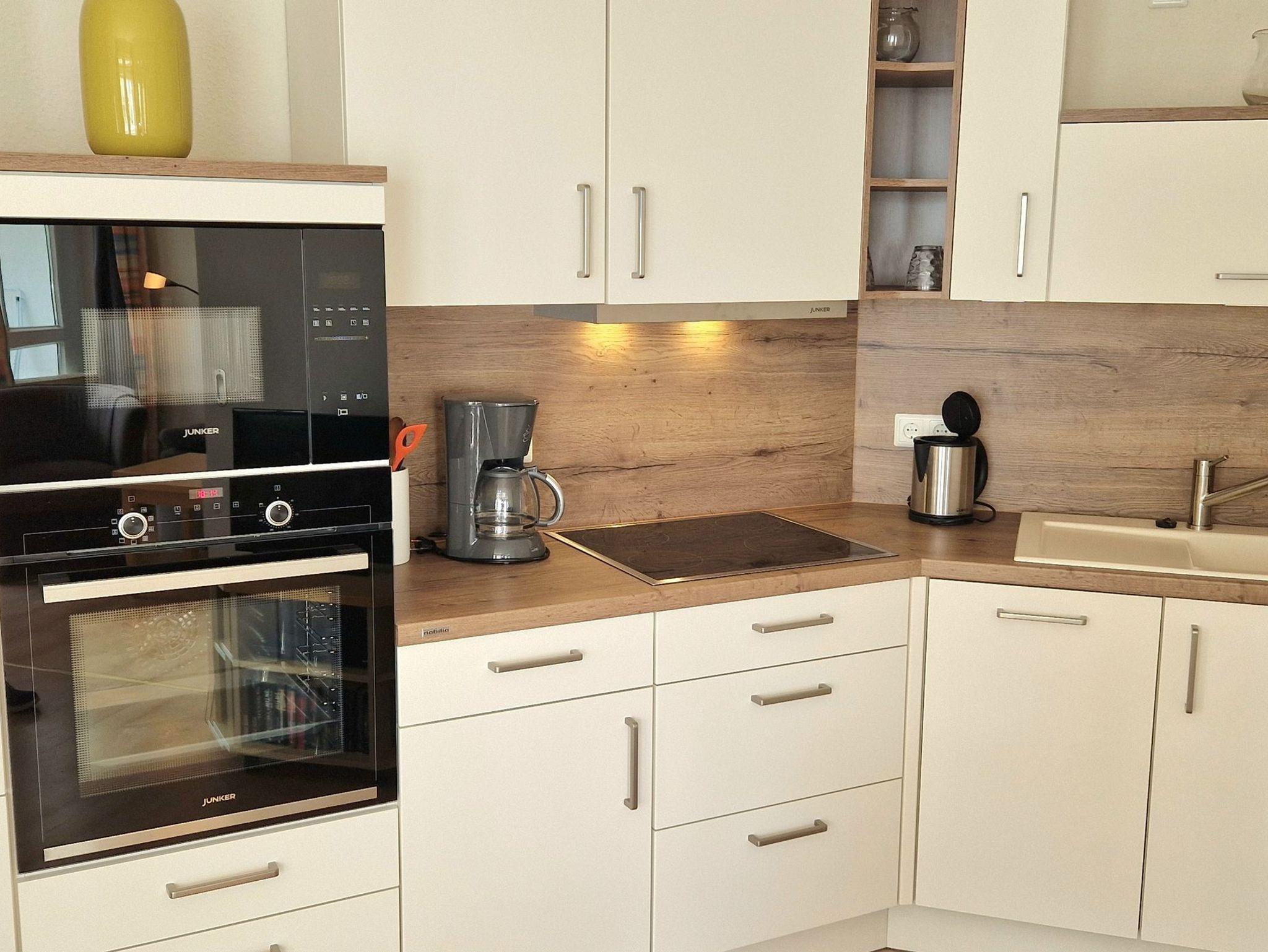 Die Ferienwohnung verfügt über kostenloses WLAN und die Erstausstattung an Bettwäsche ist bereits inklusive. Im Schlafzimmer gibt es ein Doppelbett und Verdunklungsmöglichkeiten. Im Wohnzimmer steht zusätzlich eine Doppelschlafcouch zur Verfügung. Die Ferienwohnung bietet außerdem ein Badezimmer mit Dusche und ein separates WC. In der voll ausgestatteten Küche mit Backofen, Mikrowelle, Geschirrspüler, Kaffeemaschine und Toaster findet man alles, was man braucht. Ein Fernseher mit 3 Sky-Sendern rundet die hochwertige Einrichtung ab.