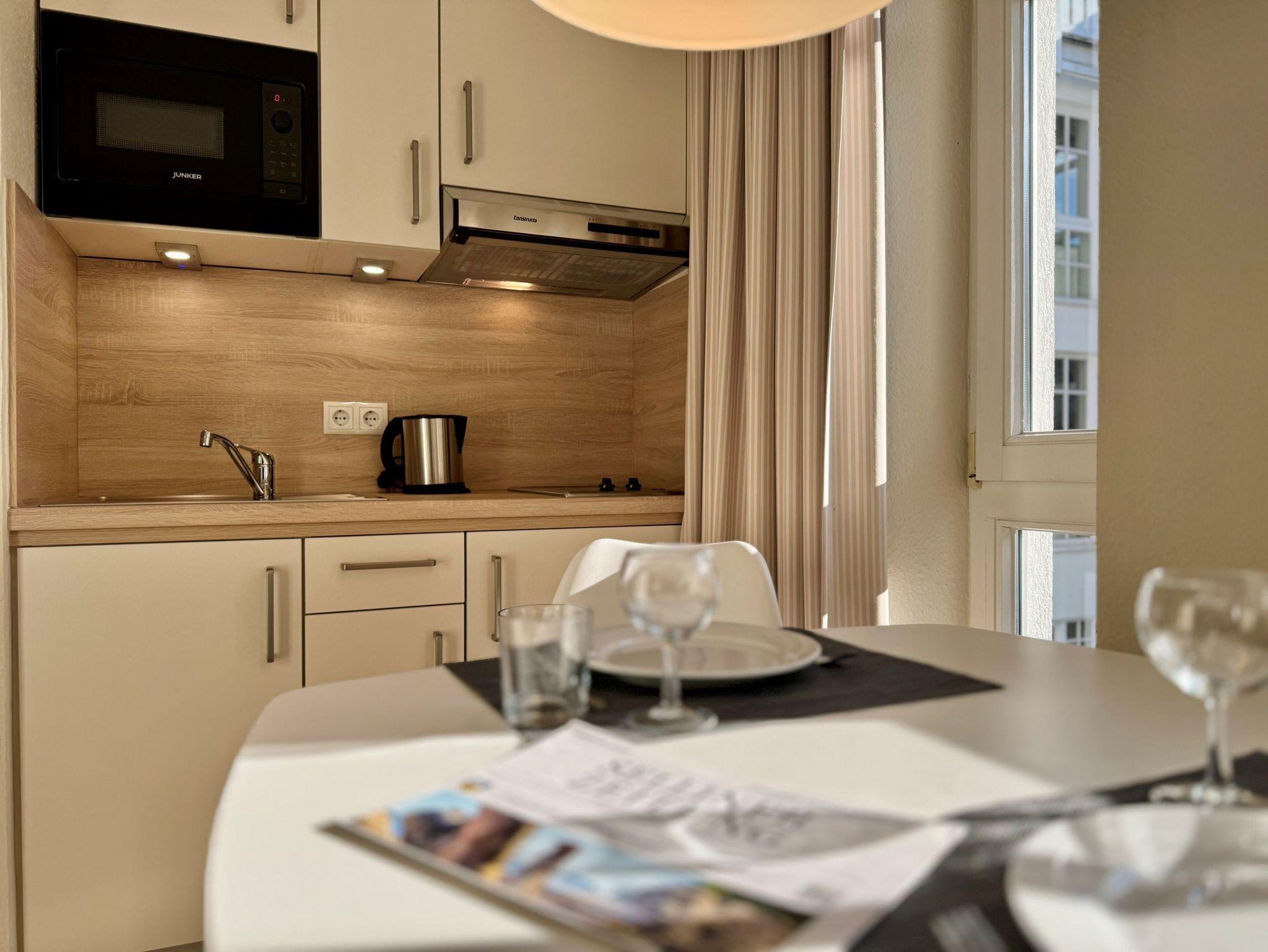 Die Ausstattung umfasst einen Flachbild-TV, eine Kaffeemaschine (Filter) und Bettwäsche, die bereits im Preis inklusive ist. Auch Ihr geliebtes Haustier ist herzlich willkommen. Genießen Sie die frische Luft auf dem Balkon oder bereiten Sie kleine Mahlzeiten in der Pantry Küche zu. Für die sichere Aufbewahrung Ihrer Fahrräder steht Ihnen ein Fahrradkeller zur Verfügung. Außerdem können Sie jederzeit den WLAN-Anschluss nutzen und die Sky-Sender auf dem TV empfangen. Wenn Sie nicht selbst einkaufen möchten, können Sie den Brötchenservice nutzen und sich frische Brötchen liefern lassen.