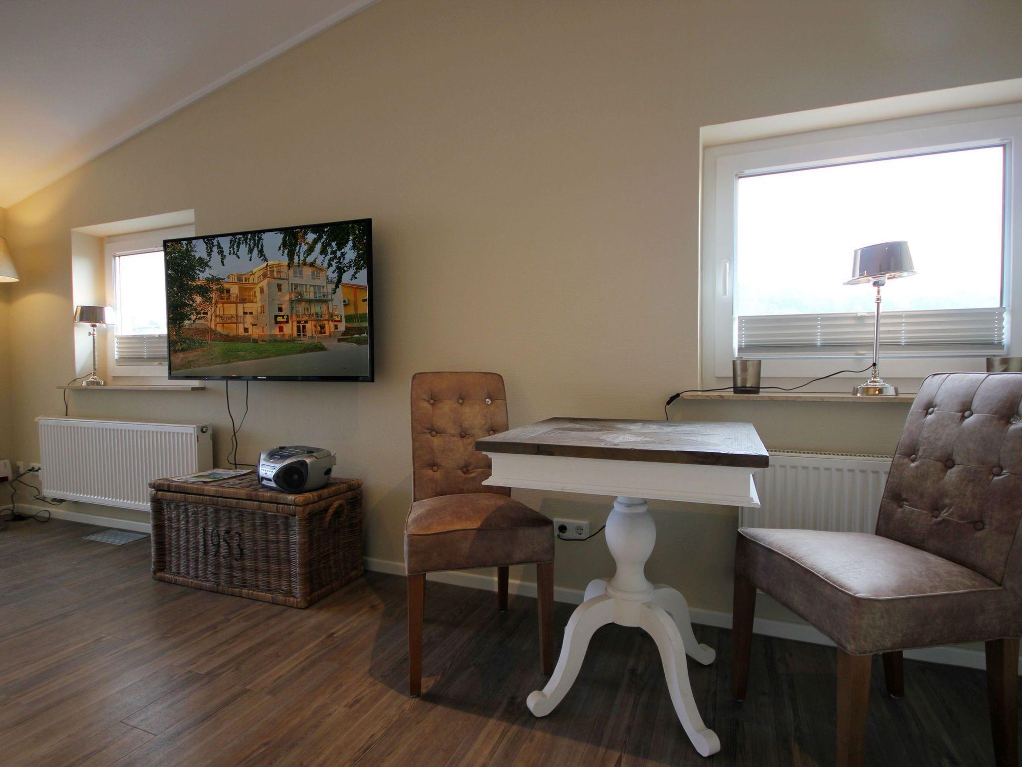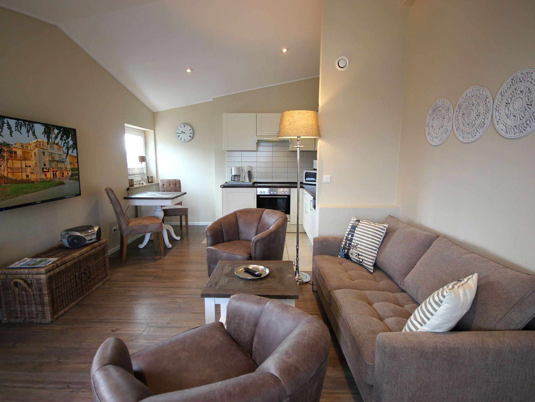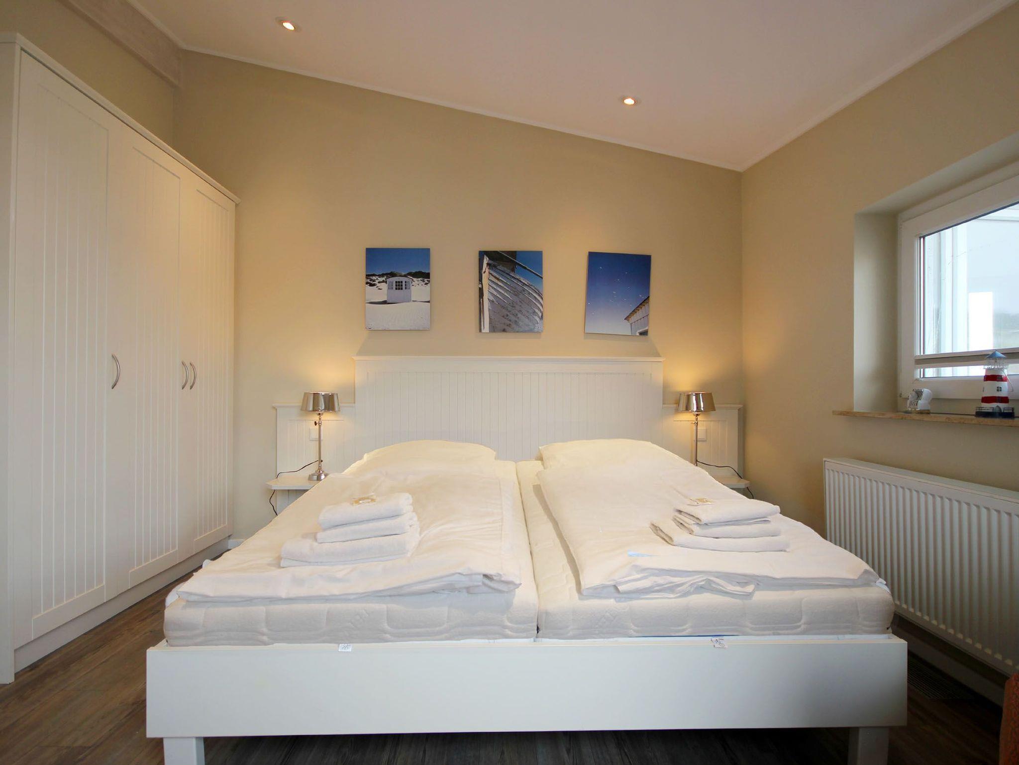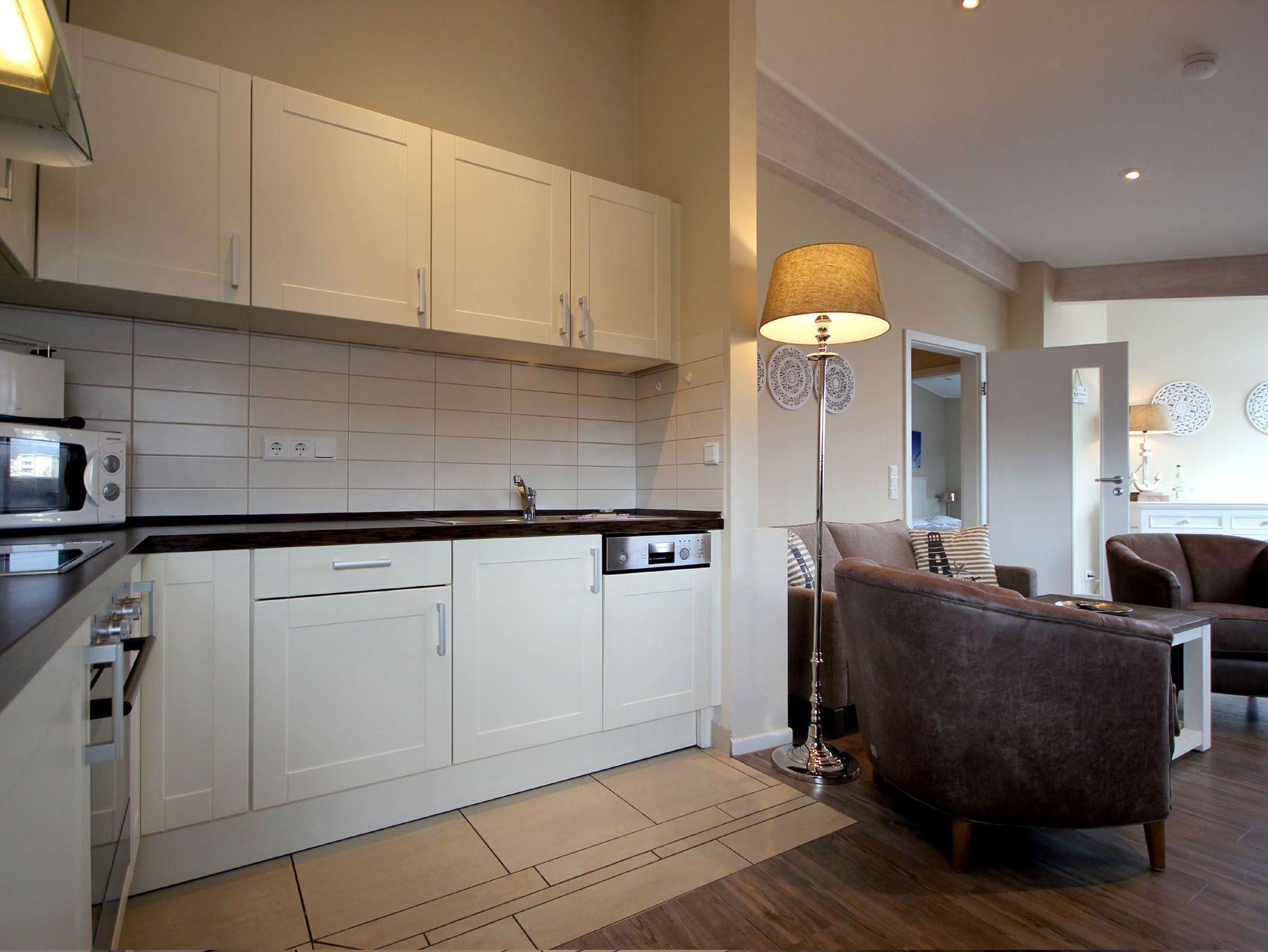 Ihre 2-Zimmer Ferienwohnung 65RB11 Sonne befindet sich im 2. Obergeschoss und ist ca. 50 qm groß. Die Nichtraucherwohnung verfügt über einen Balkon in Richtung Osten und ist für bis zu 2 Personen gut geeignet. Neben dem gemütlichen Wohnbereich mit Zugang zum Balkon, gehört eine Sitzecke, ein Essbereich, Flachbild TV sowie WLAN. Im Schlafzimmer erwartet Sie ein Doppelbett, ein zusätzlicher TV, ein Kleiderschrank sowie ein weiterer Zugang zum Balkon. Zudem können Sie eine voll ausgestattete und im Wohnbereich integrierte Küchenzeile mit Geschirrspüler, Backofen, Wasserkocher, Toaster, Kaffeemaschine sowie umfangreiches Küchengeschirr nutzen. Das moderne Badezimmer erwartet Sie mit Waschtisch, WC und Dusche. Einen Parkplatz sowie eine Fahrradunterstellmöglichkeit befinden sich direkt am Objekt.