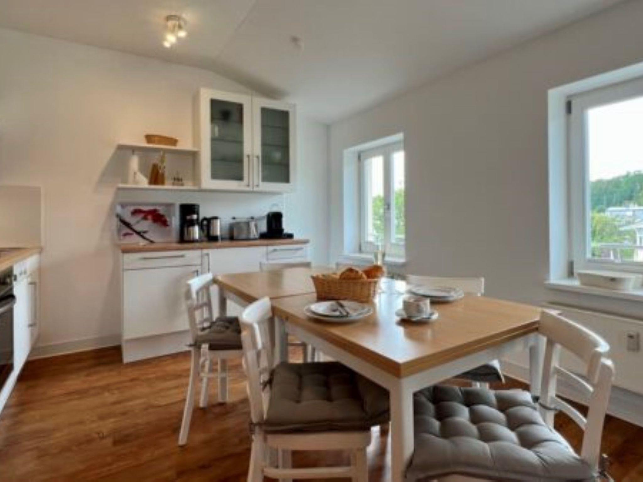 Die moderne Küche ist mit allem ausgestattet, was es für einen kulinarischen Kochabend benötigt: ein Ceranfeld, ein Backofen inkl. Abzugshaube, Mikrowelle, Geschirrspülmaschine und allerlei Küchenkleingeräte (Wasserkocher, Kaffeemaschine...). Besteck, Geschirr und andere Küchenutensilien sind selbstverständlich ebenso vorhanden. Direkt anschließend finden Sie im hellen Essbereich die Möglichkeit, bei einem gemütlichen Abendessen den Urlaubstag ausklingen zu lassen.