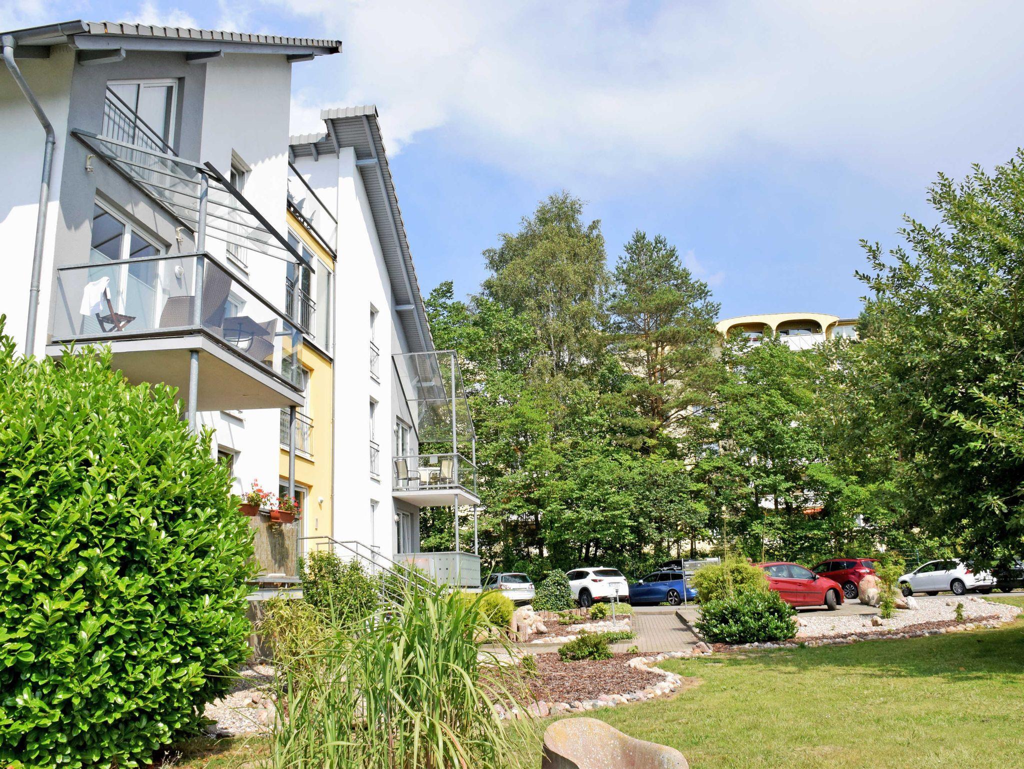 Am Haus befindet sich ein Grünbereich mit Sitz- und Grillgelegenheiten, jede Wohnung besitzt einen PKW-Stellplatz. Für mitgebrachte Fahrräder steht ein Fahrradständer hinter dem Haus zur Verfügung.