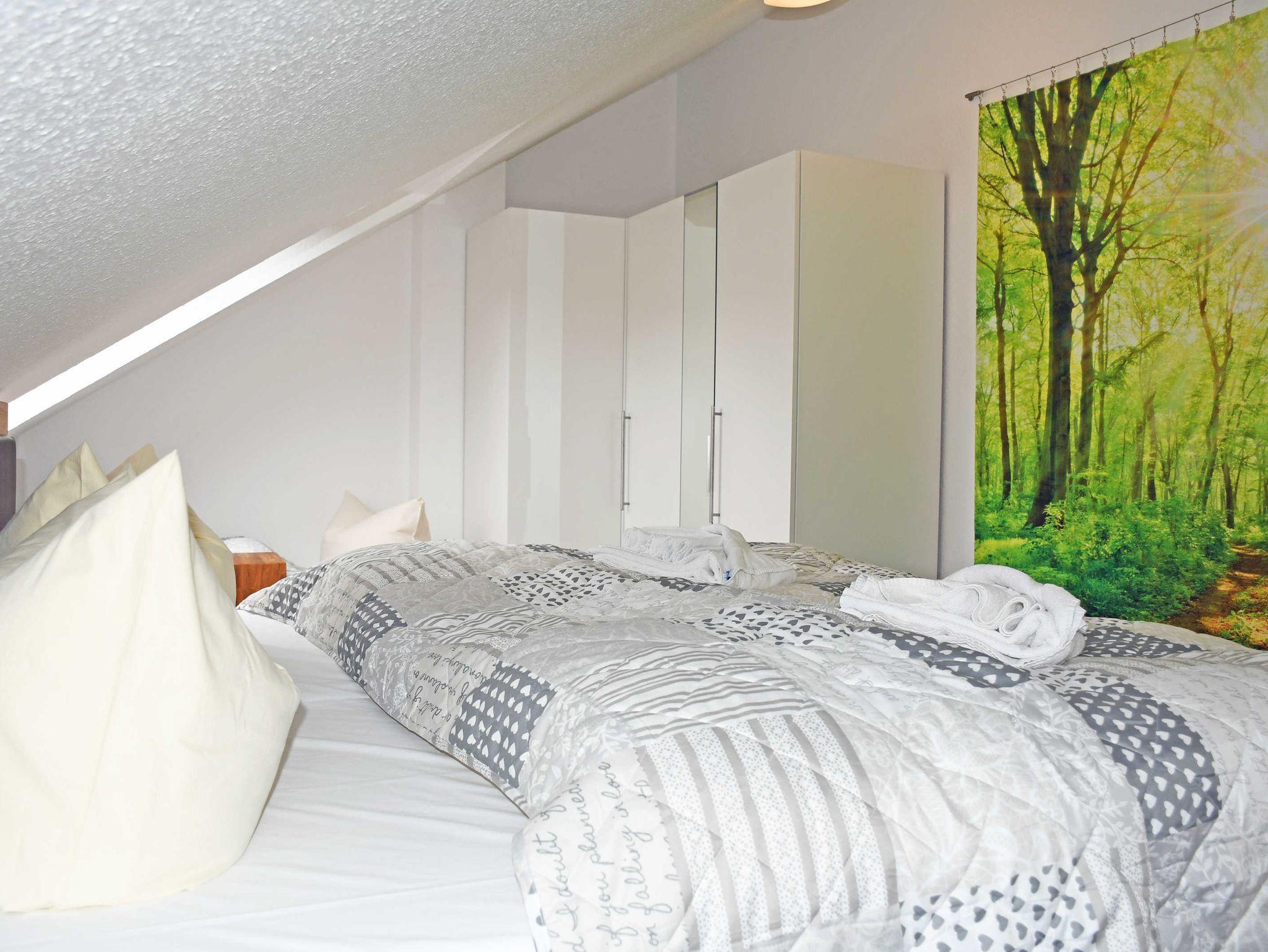 Das Ostseebad Sellin befindet sich im Südosten der Insel Rügen und gehört zum Biosphärenreservat Südost-Rügen. Bis zum feinsandigen Badestrand sind es durch den angrenzenden Wald nur ca. 500 m. Unsere Ferienwohnung ist eine Nichtraucherwohnung, liegt im zweiten Obergeschoss, ist ca. 60 qm groß und verfügt über ein offenes, geräumiges Schlafzimmer im Dachgeschoss, zu erreichen über eine Wendeltreppe, mit einem Boxspring-Doppelbett (180 x 200 cm) mit Nachttischen und Leselampen, einem innenbeleuchteten Kleiderschrank sowie zwei Einzelbetten ausgestattet und bietet Platz für 2 Erwachsene, sowie maximal 2 Kinder bis 17 Jahre.
