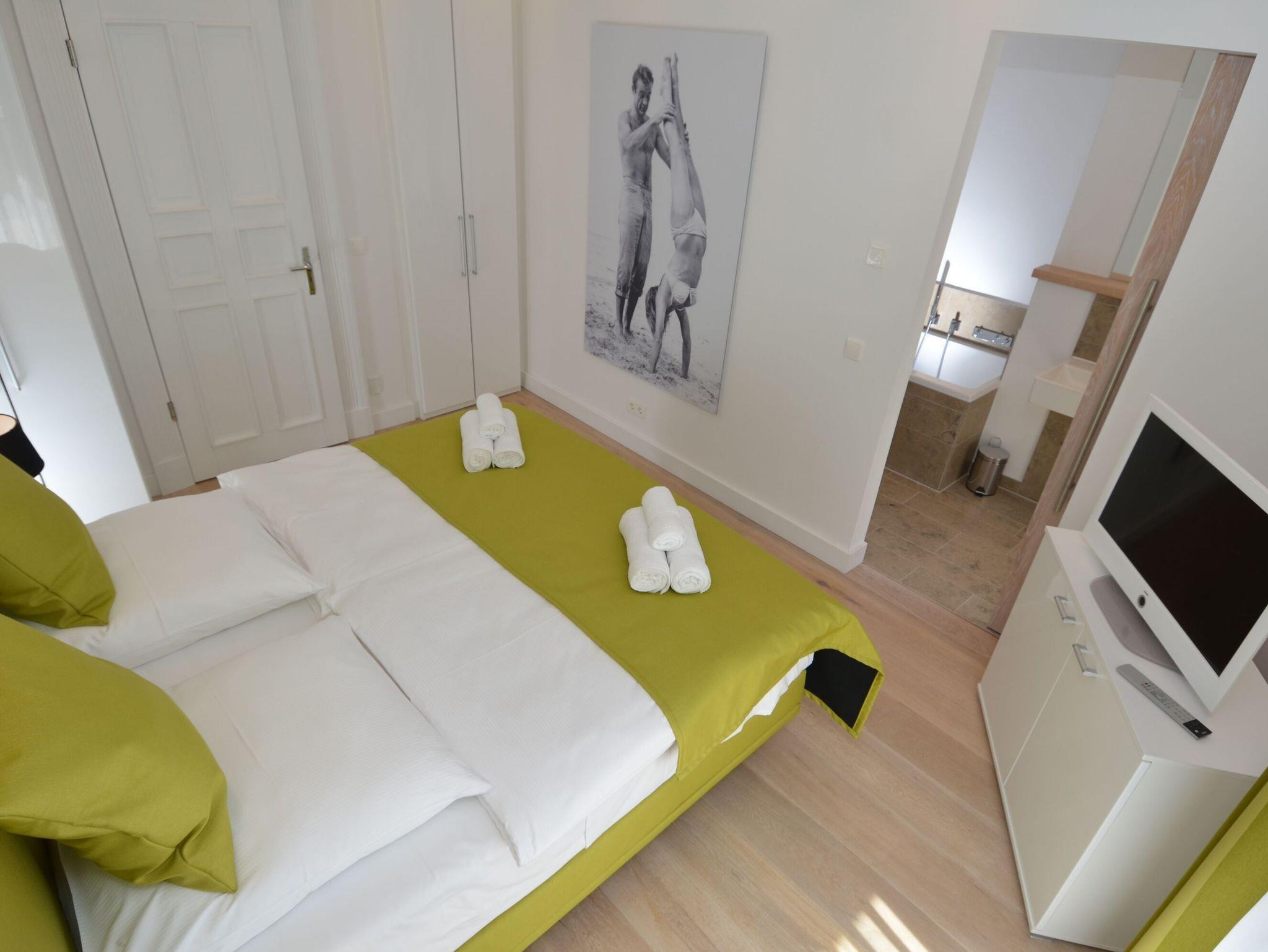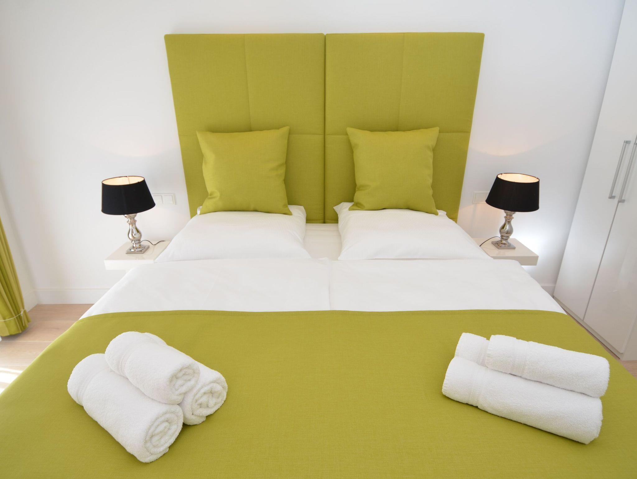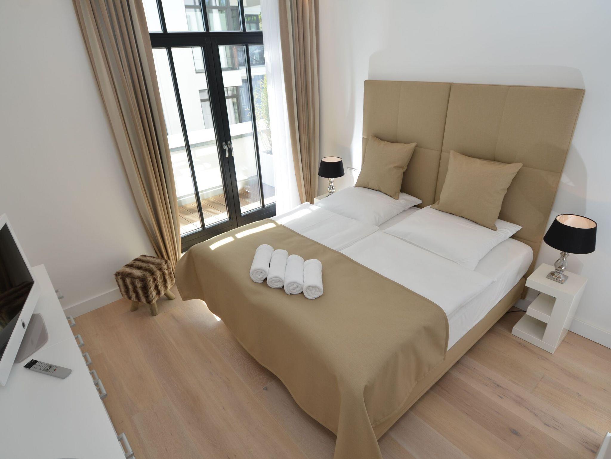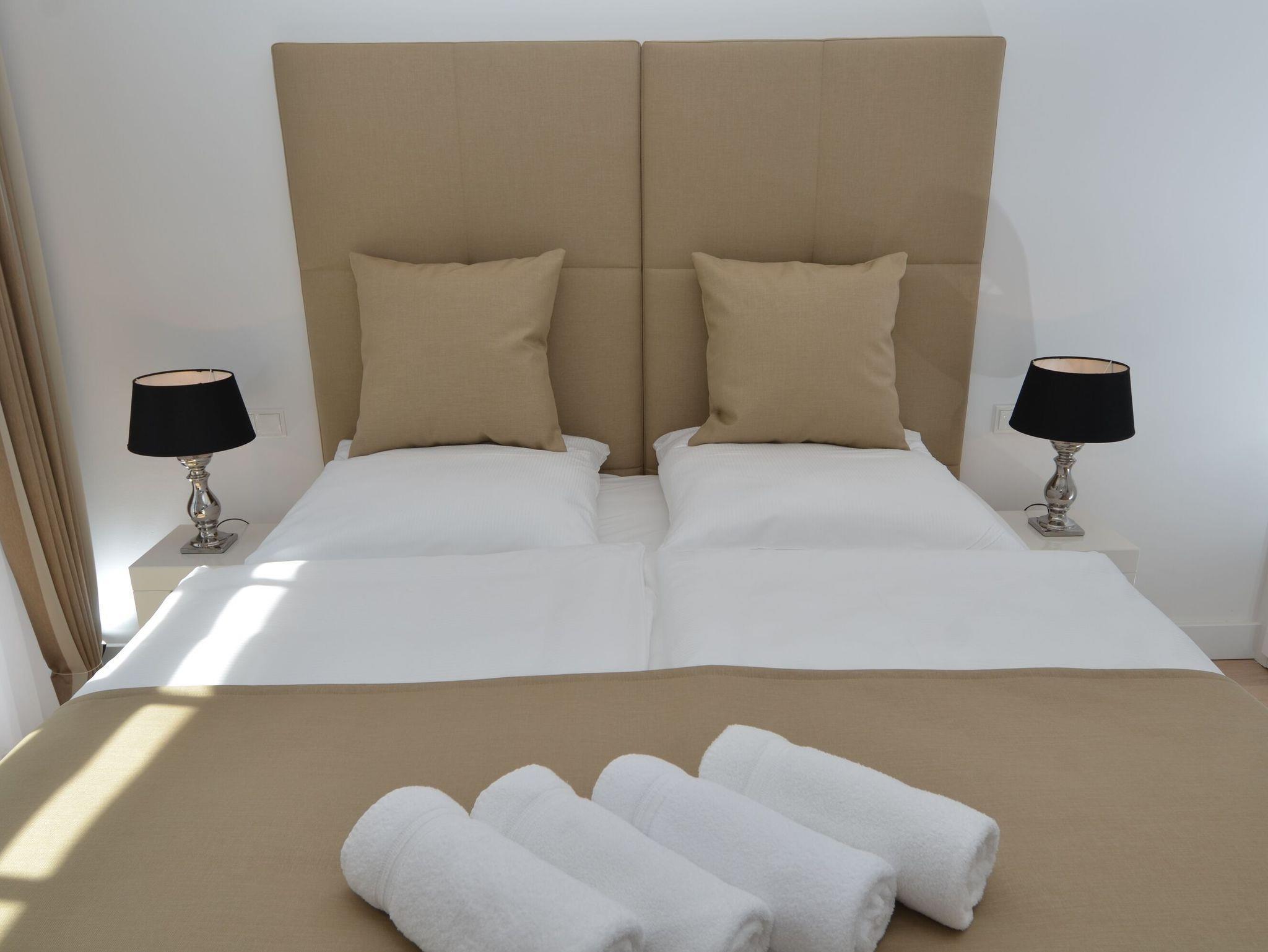 Zwei großzügige Schlafzimmer mit jeweils direktem Zugang zum Sonnenbalkon mit Ostseeblick sind so konzipiert, dass unsere Gäste schon morgens mit einem Lächeln den Tag beginnen. Ein unvergleichliches Schlaferlebnis ist dank unserer Boxspringbetten von Musterring garantiert; nicht nur optisch sind diese Betten mit dem hohen Wandpaneel und Rautensteppung ein echtes Highlight, auch der Komfort ist durch die elektromotorische Verstellung der Betten per Knopfdruck und besonders hochwertige Matratzen vorbildlich.