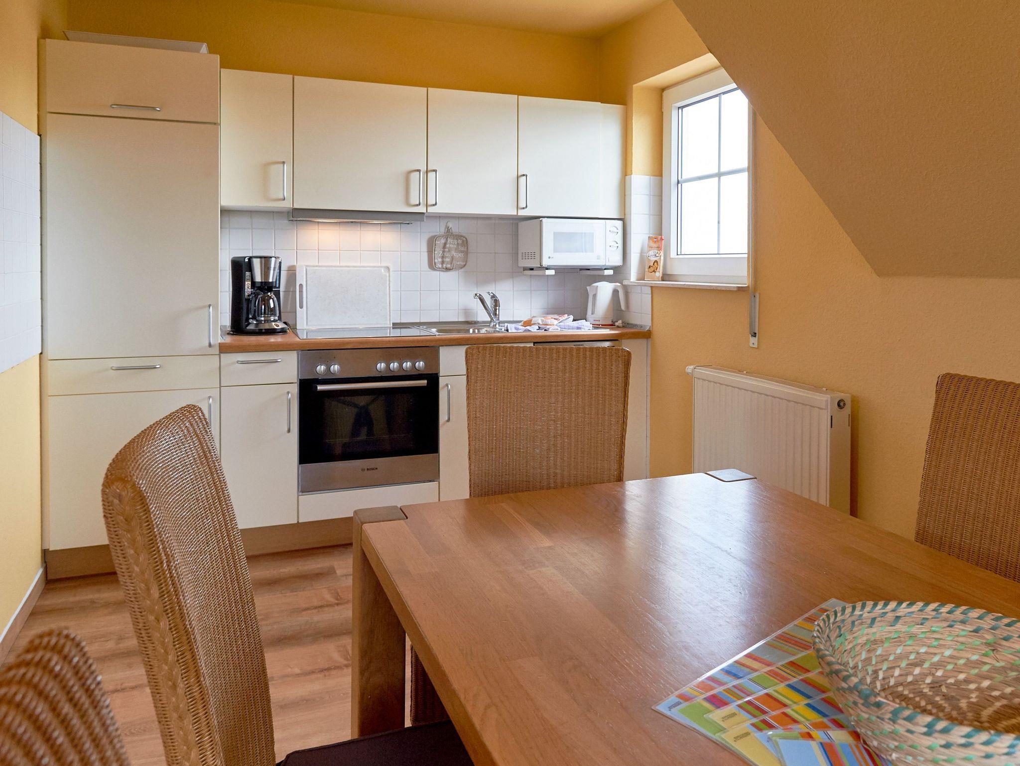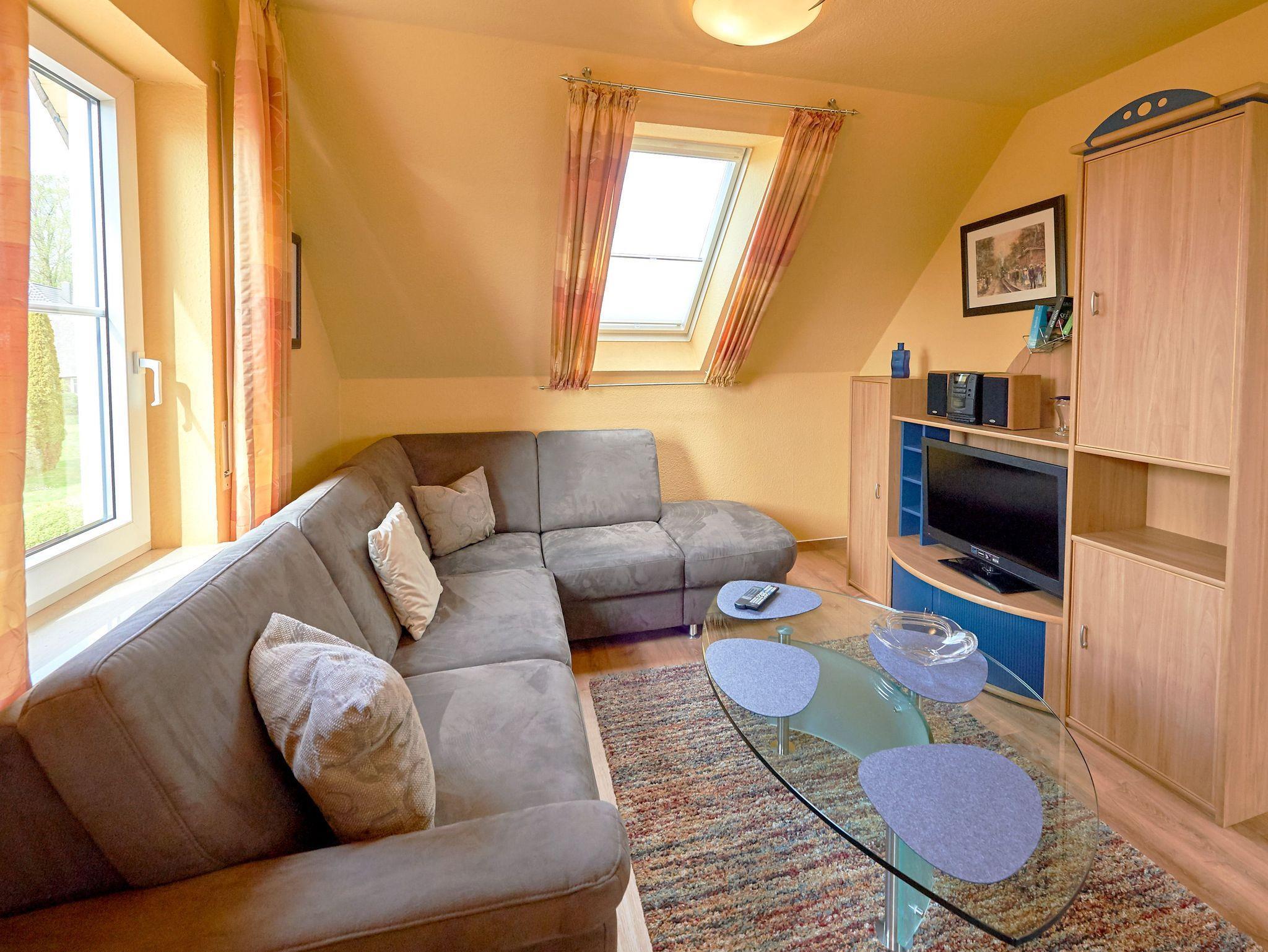 Der elegante Wohnbereich ist mit einer gemütlichen Couch (als Aufbettung für 2 Personen nutzbar), TV, Stereoanlage mit CD-Player und einem Esstisch für 6 Personen eingerichtet. Internet per W-LAN steht Ihnen selbstverständlich zur Verfügung. In der harmonisch im Wohnbereich integrierten Küchenzeile finden Sie einen Kühlschrank mit Gefrierfach, einen Backofen, ein 4-Platten-Cerankochfeld, eine Spülmaschine vor und diverses Kleininventar, das die Küchenausstattung komplettiert.