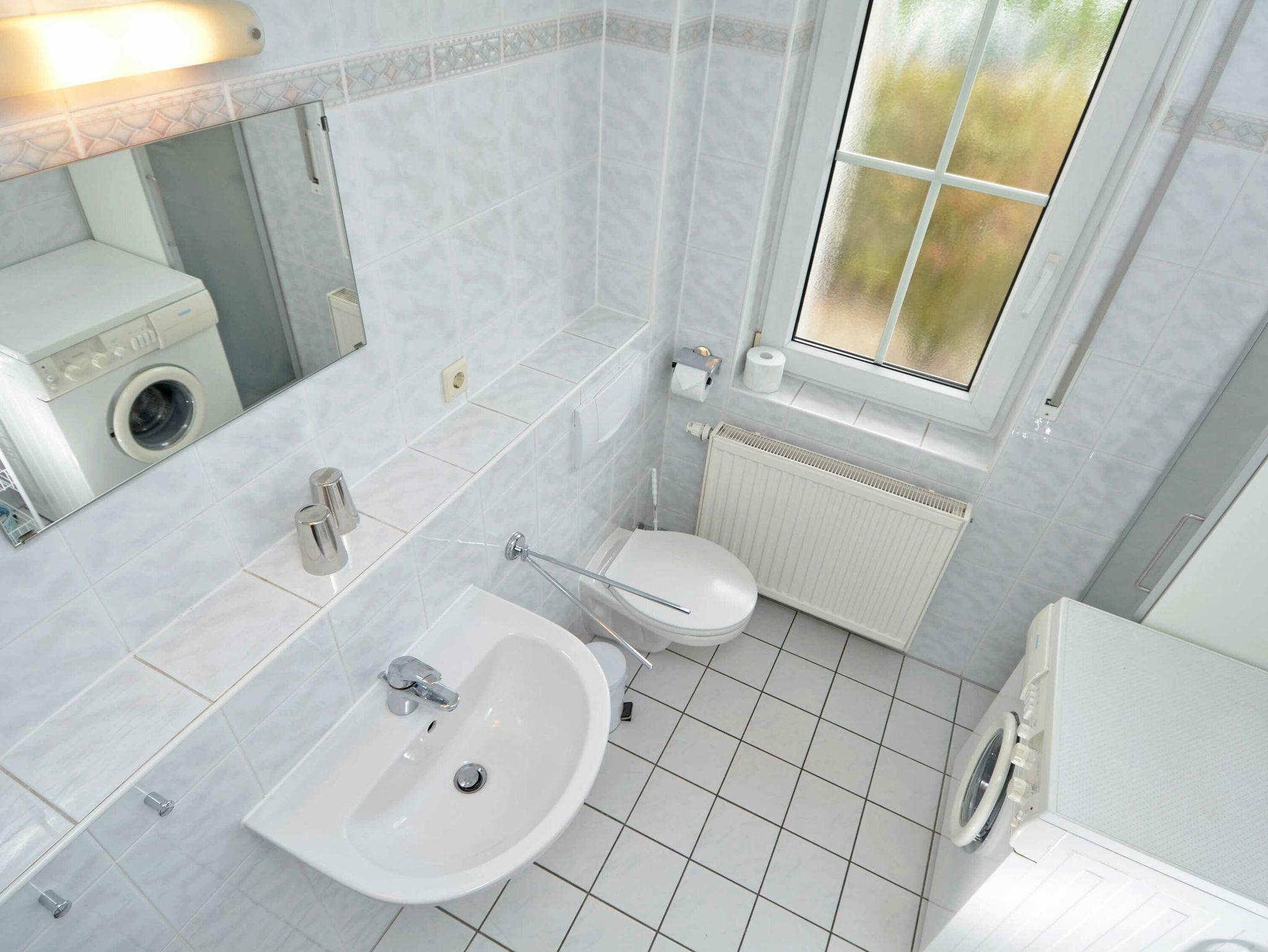 Die beiden Schlafzimmer verfügen je über ein Doppelbett. Im modernen Bad mit Dusche gibt es auch eine Waschmaschine.