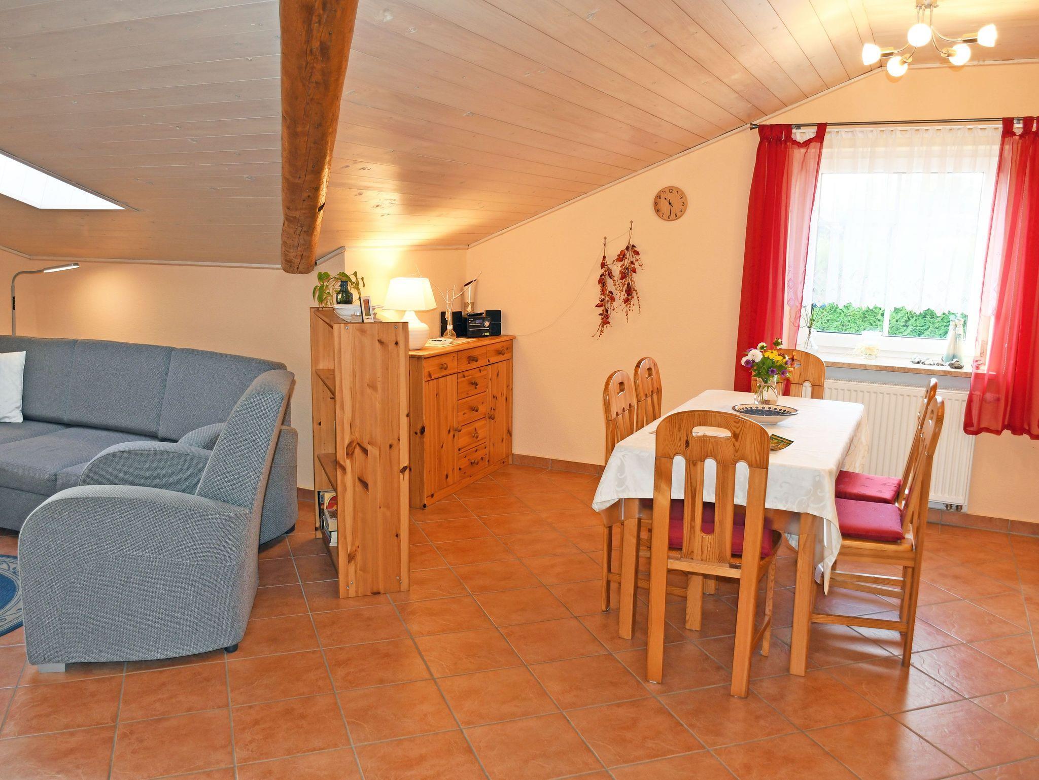 Die schöne, im Obergeschoss liegende Ferienwohnung Bernstein (67 qm) bietet Ihnen viel Komfort für entspannte Urlaubstage. Sie ist für maximal 6 Gäste ausgestattet. 1 großes Wohnzimmer mit Flachbild-TV, 2 Schlafzimmer, 1 Bad, 1 Gäste-WC und 1 Küchenzeile sowie Internet-WLAN stehen Ihnen für Verfügung.